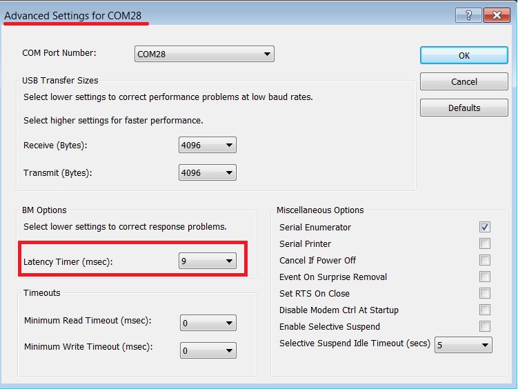 Figure 37 FTDI Latency Timer