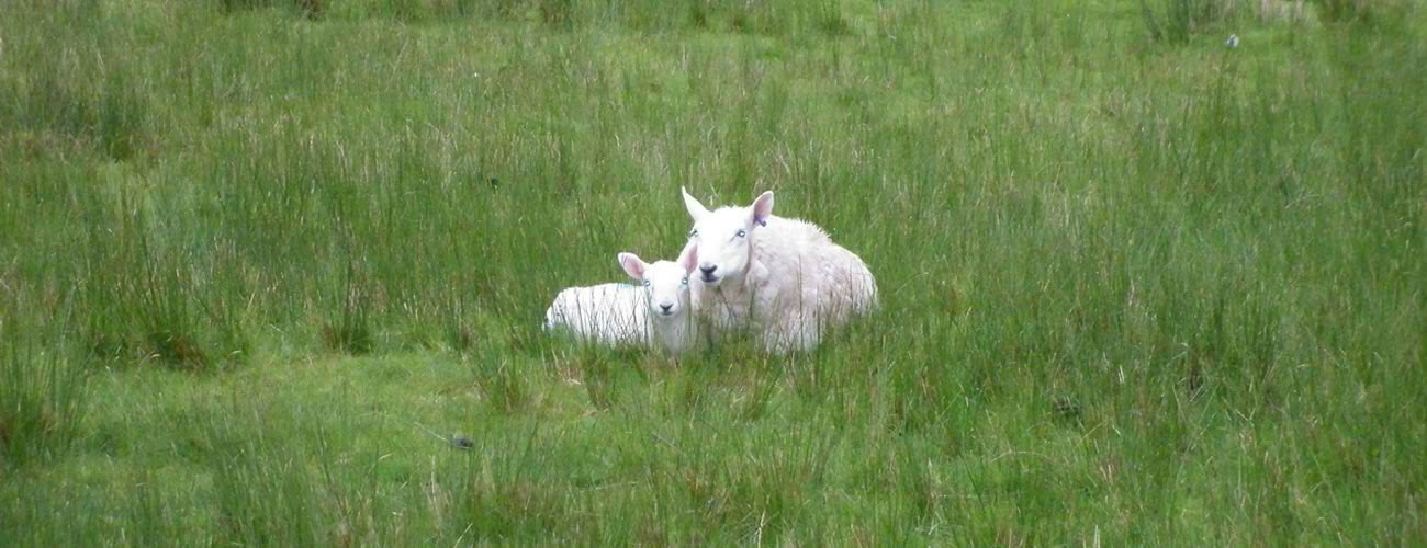 The sheep are pure bred Cheviot, small and hardy, they lamb in May and are fattened in February.
