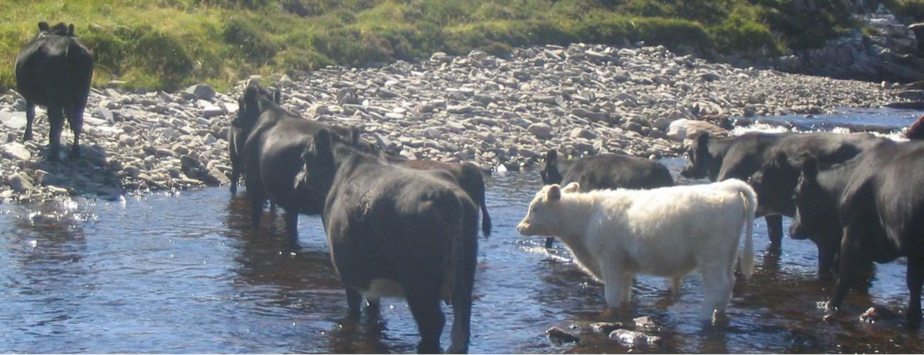 The hill farm has grazing for cattle and sheep and we farm on an organic system to produce beef and lamb. The stock also help improve the land’s fertility and keep down the vegetation to encourage bio-diversity. The hill cattle are home bred shorthorn Galloway or highland X then an Aberdeen Angus bull is used to produce the beef. The cattle winter on the farm at Coulmore on the Black Isle.