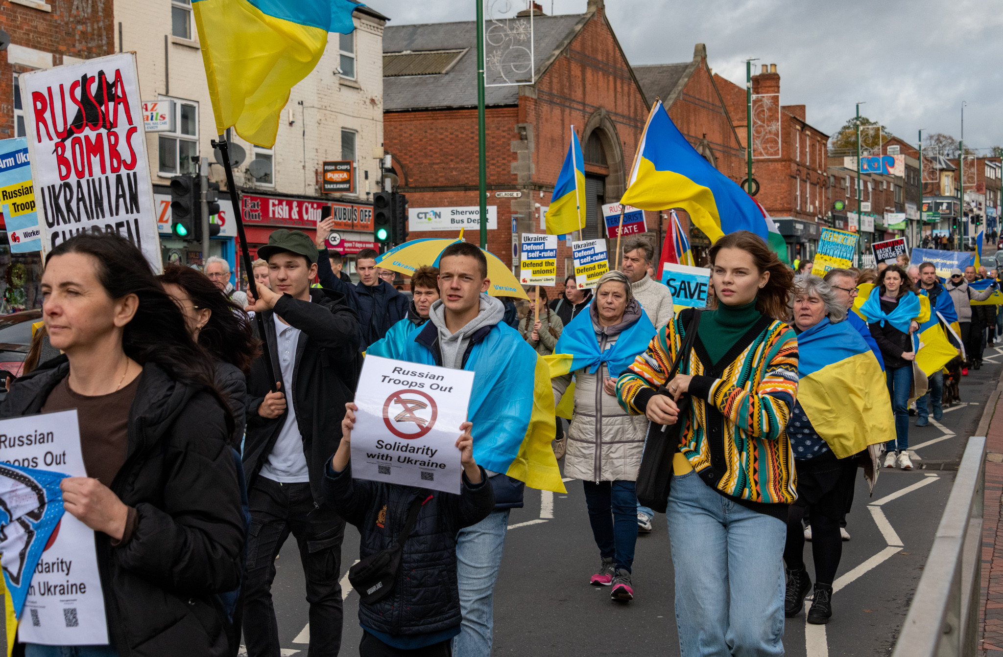 Nottingham Ukraine Solidarity Campaign - March through Sherwood to show support for Ukraine - 22nd October 2022