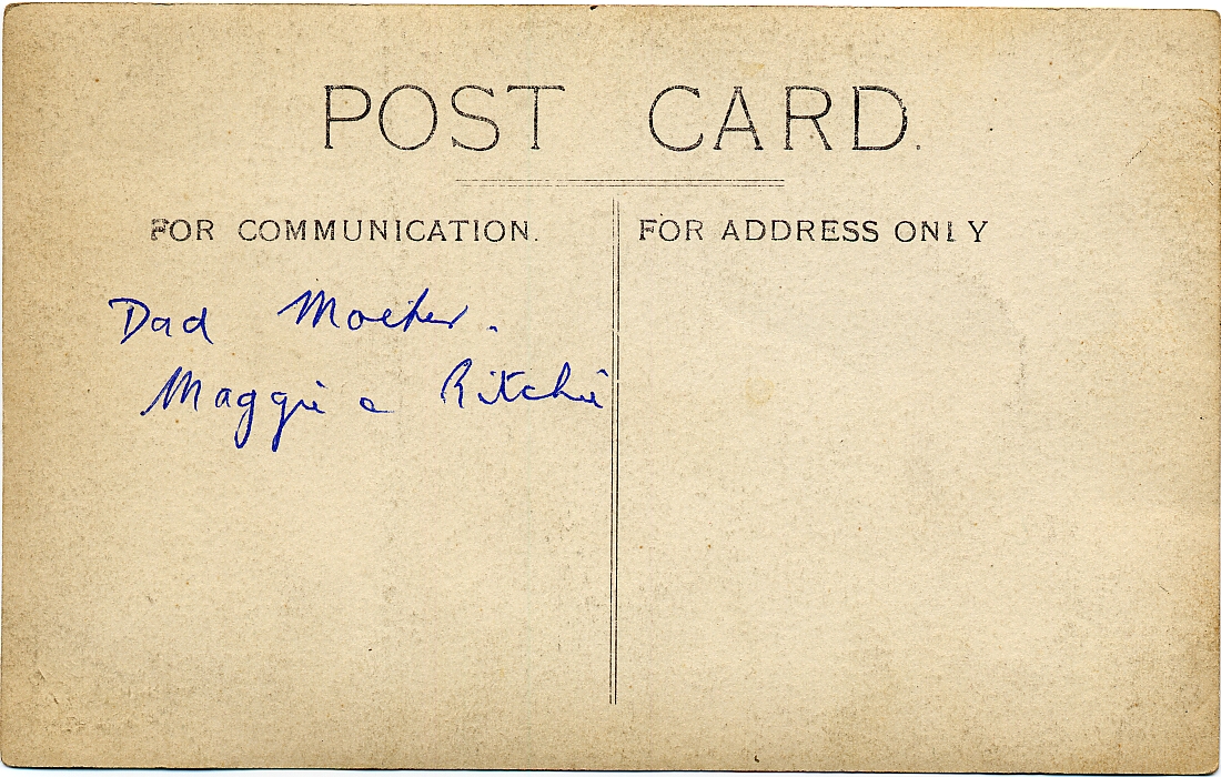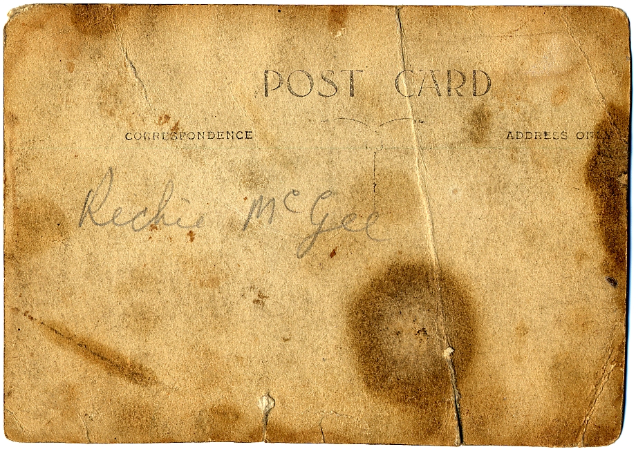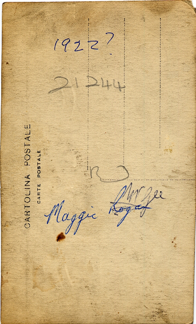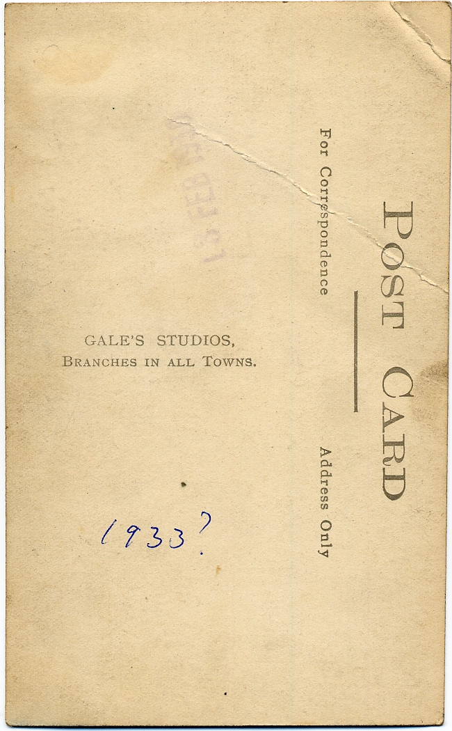 The following shots of Rosa and some of her siblings (not to mention Dad and Uncle Jack) were taken at the Meade Grove residence of the Manchester McGees in 1932 (on the Manchester copies) or possibly 1933 (on the Glasgow copies). (If you want to complicate things, then maybe they were taken over a couple of years and then a selection was copied in one batch (pmk 0 102).)