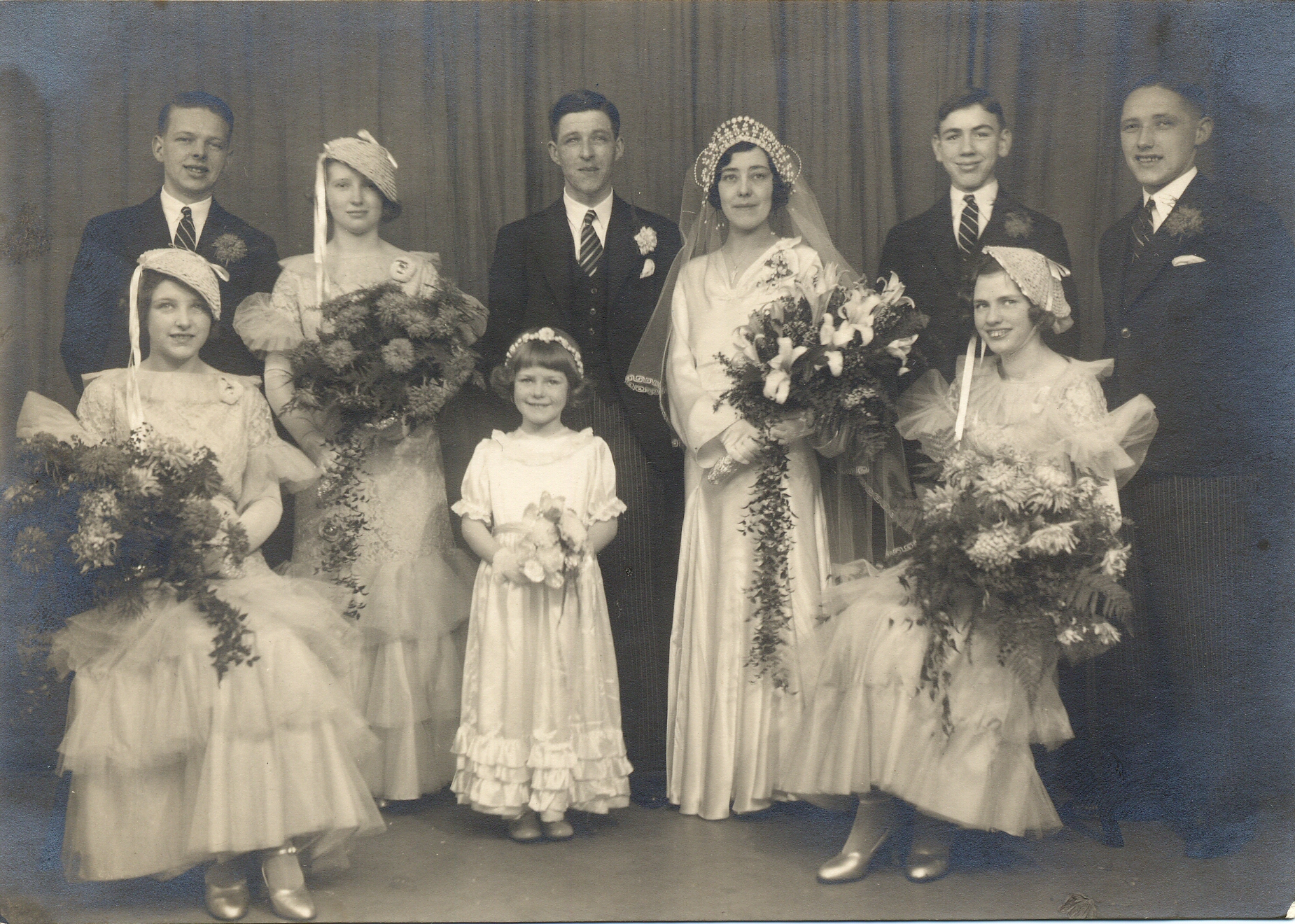Jump" (from the left, Hilda, Jack, Rosa, Ritchie, Eva, Alf, Doris, Bill; but I don't know who the flower girl is.) |