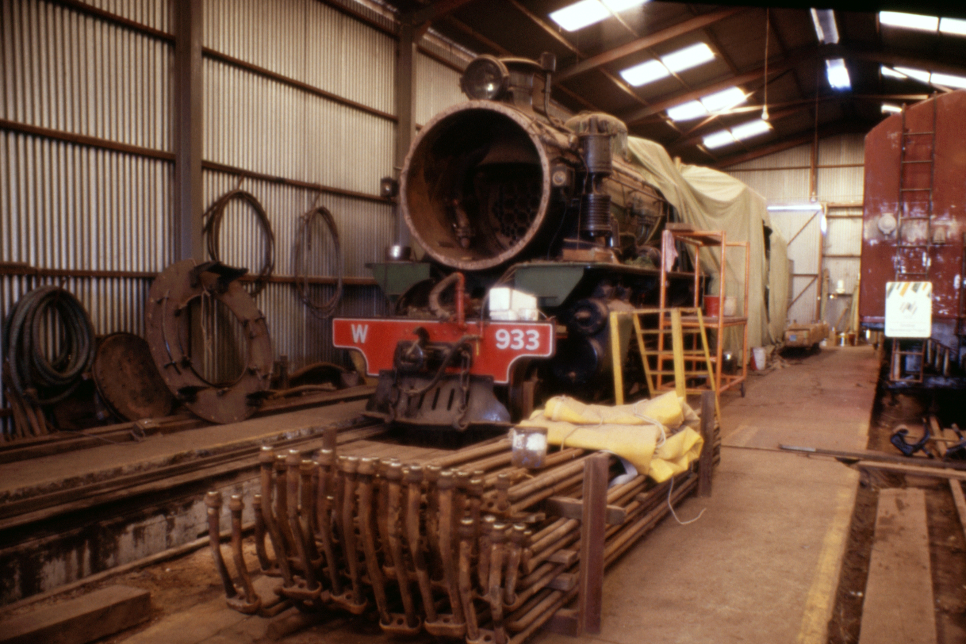 T156 (J Martin 1909 for SAR) | W933 (Beyer Peacock 1951 for WAGR) being re-tubed in the workshop |
