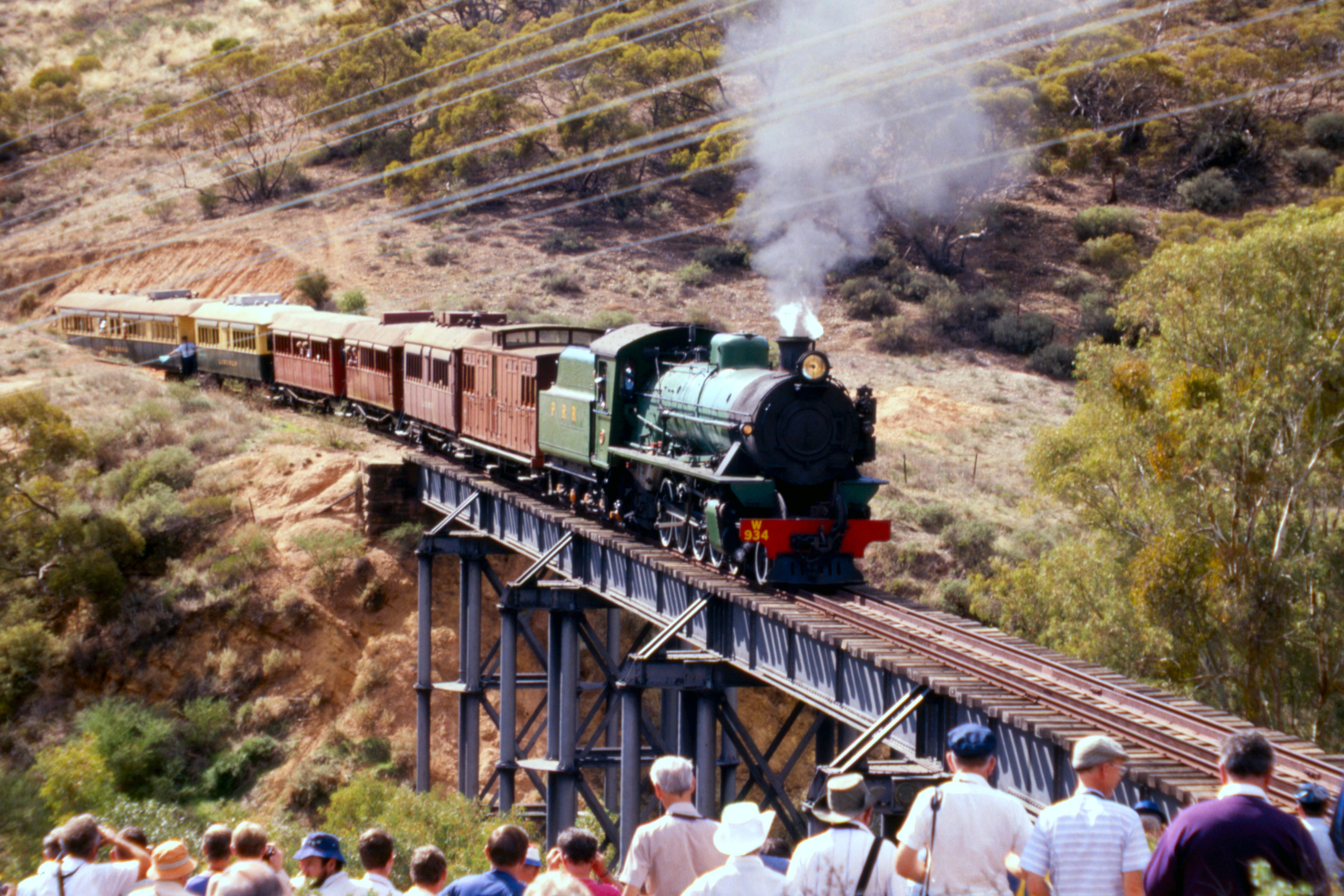 An excursion this morning to the Pichi Richi Railway, another preserved length of narrow gauge line, part of the original Ghan line to Marree. More trouble here fitting the luggage into the coach, not to mention the people. However, we got away and drove to Quorn for a tour of the railway workshops. Therein I espied another Scottish built loco, a small shunter called Peronne built by Andrew Barclay in Kilmarnock. I was told later that I had missed another from the same stable called Paschendale, though not in such good order. Then a trip down their 16.5 kilometres of track, hauled by W934 (built by Beyer Peacock for WAGR in 1951), to Woolshed Flat where we rejoined the coaches for the return to Port Augusta.