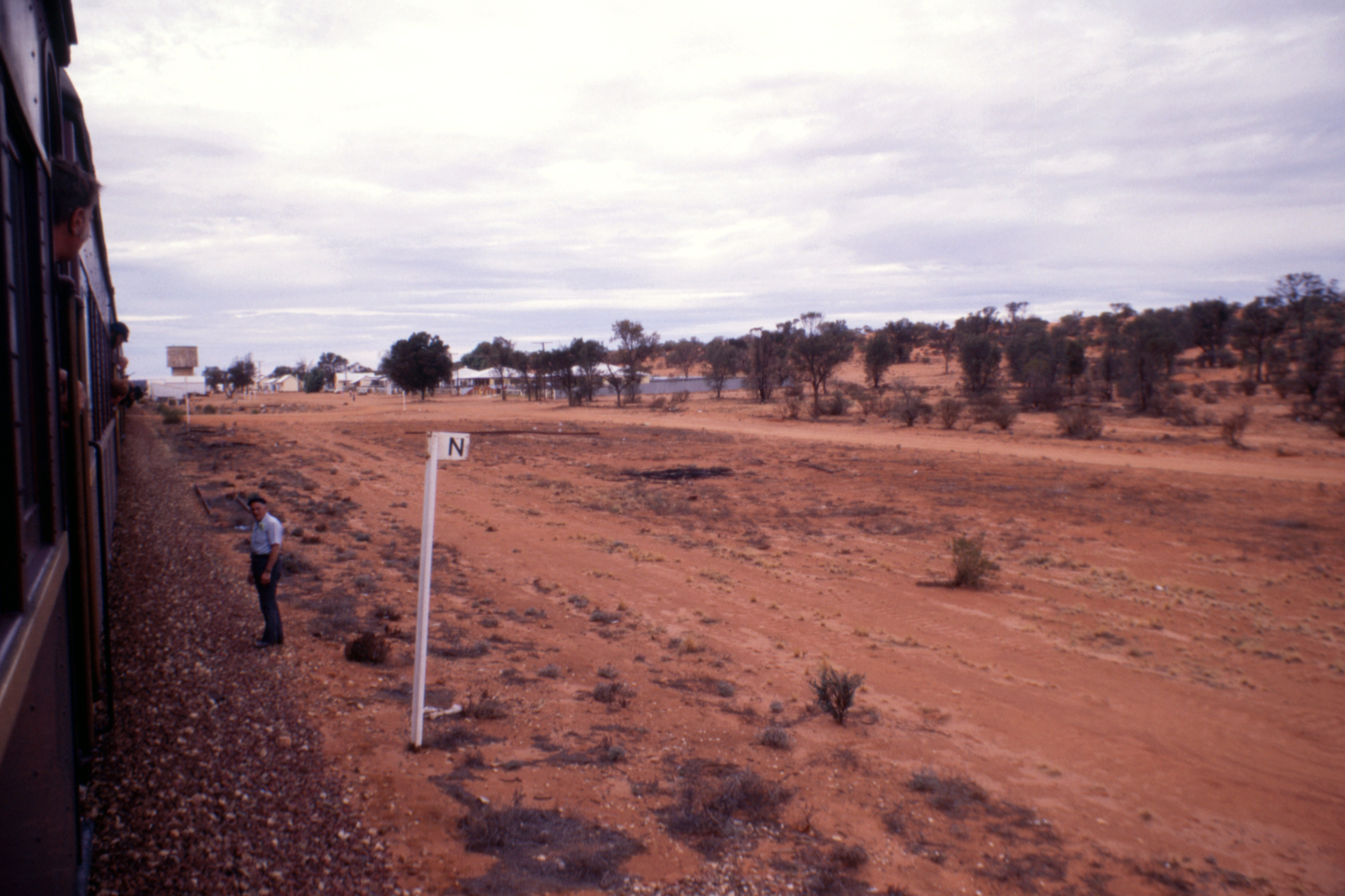 On to the Nullarbor Plain and the longest straight in the world, all 300 miles of it. Stopped at Cook for longer than we should have. The locals had laid on free tea and bickies, with a donation box, proceeds to go to the local school and hospital. The diesels on scheduled services stop here, allowing the passengers twenty minutes to visit the souvenir caravan at the station, proceeds to the school, hospital and the Flying Doctor Service. I saw some tank wagons built in Wishaw.