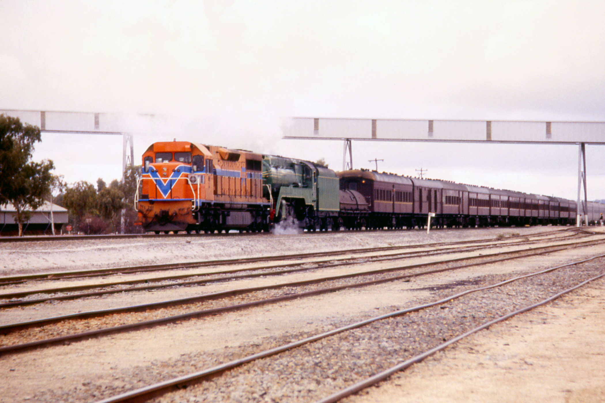 3801 entered service in 1943 and was finally withdrawn in 1967. It has already crossed the continent, in 1970, hauling the “Western Endeavour” to mark the completion of the standard gauge rails to Perth.