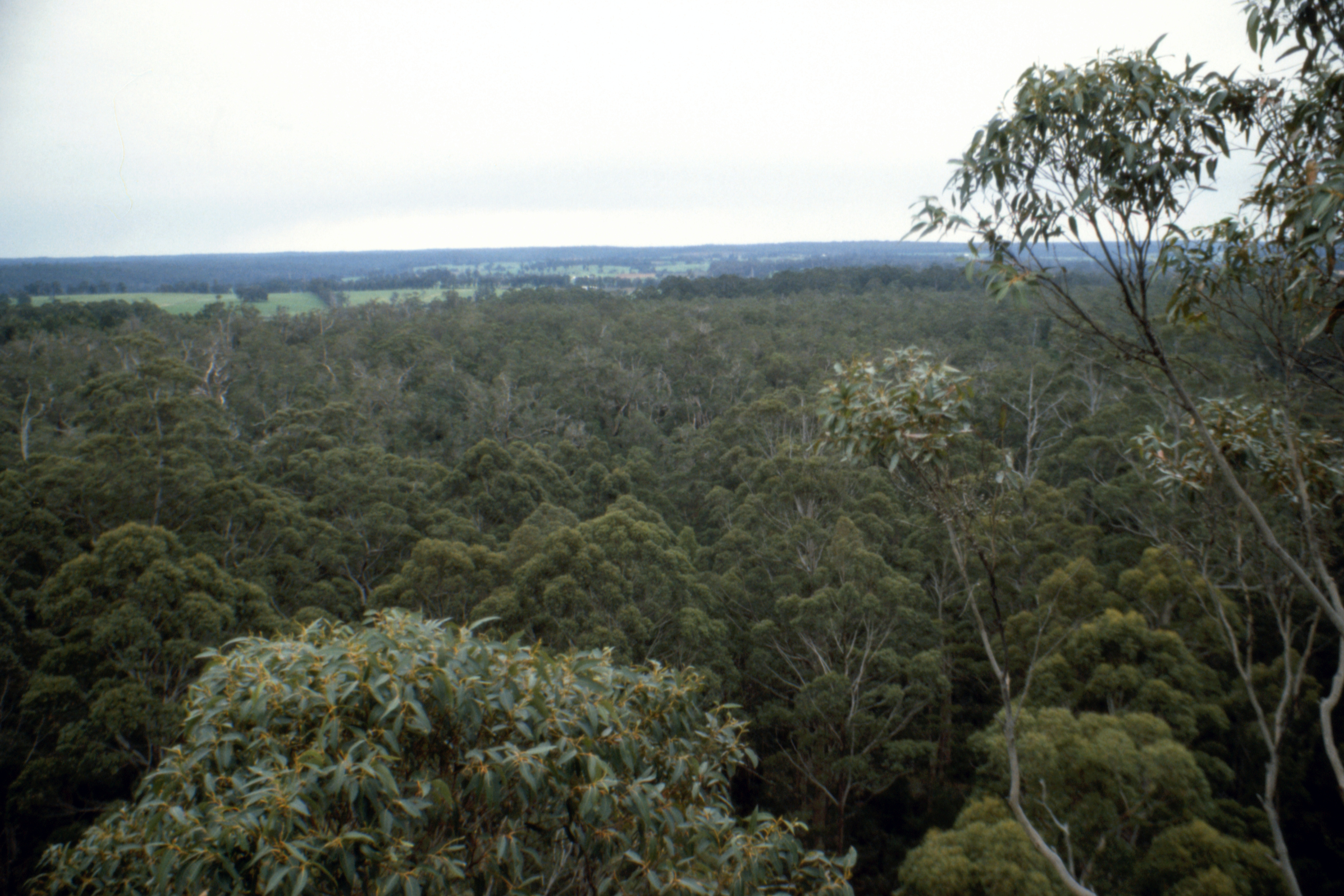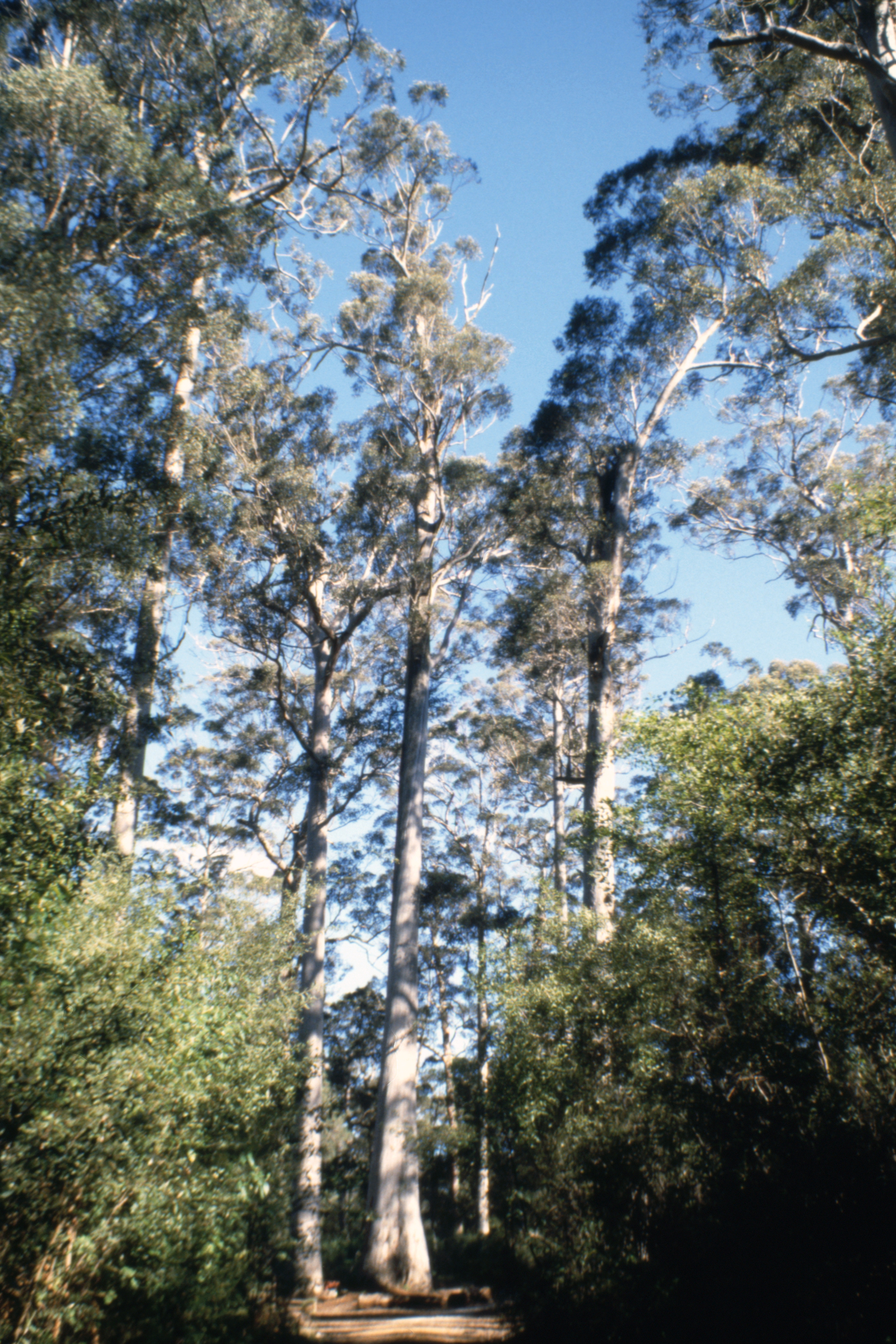 At Northcliffe, I went for a walk in the woods to see some fine karri trees, up to seventy-five metres high. Back just in time for the tram. Stop on the way back at the Warren River bridge to look at some she-oaks