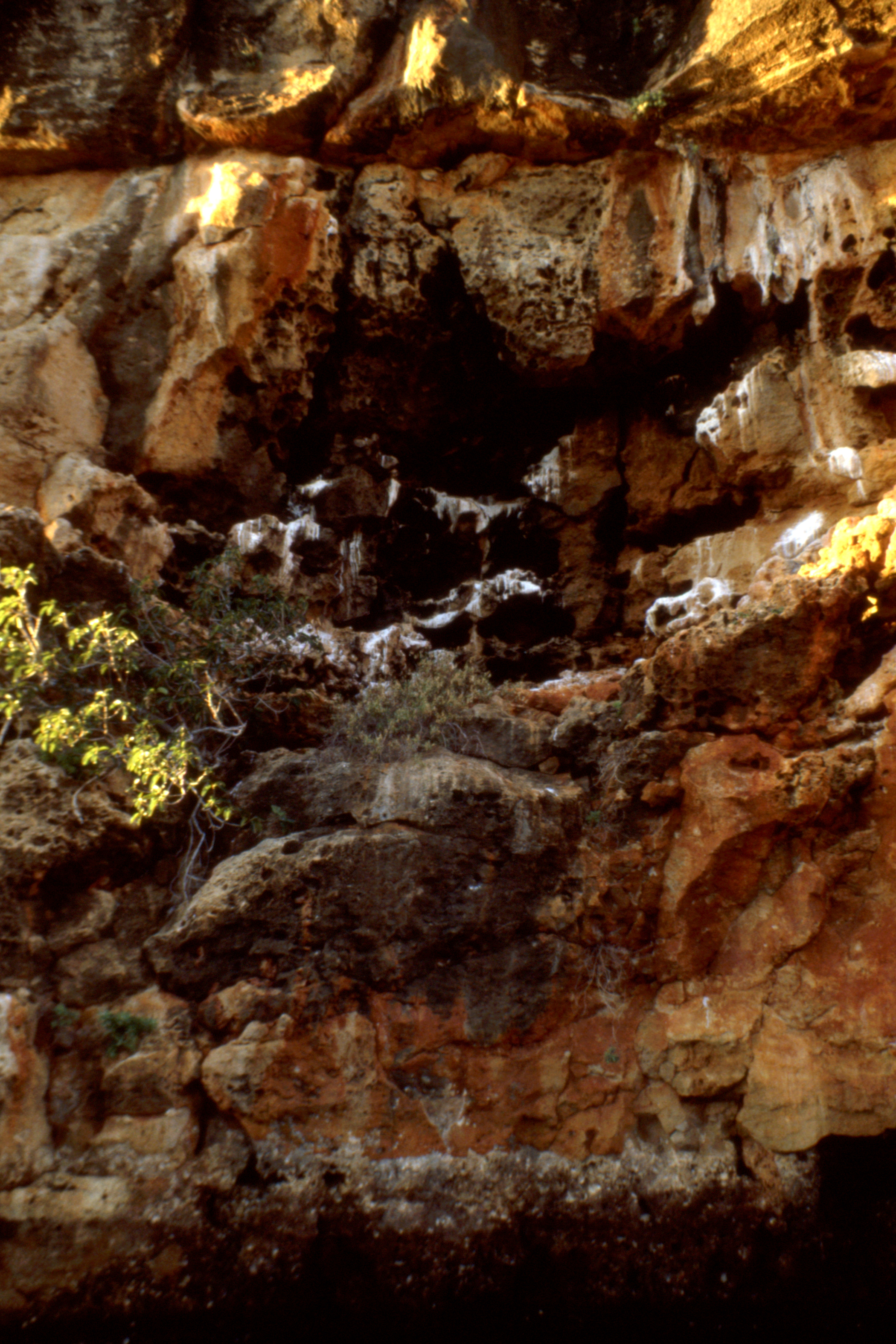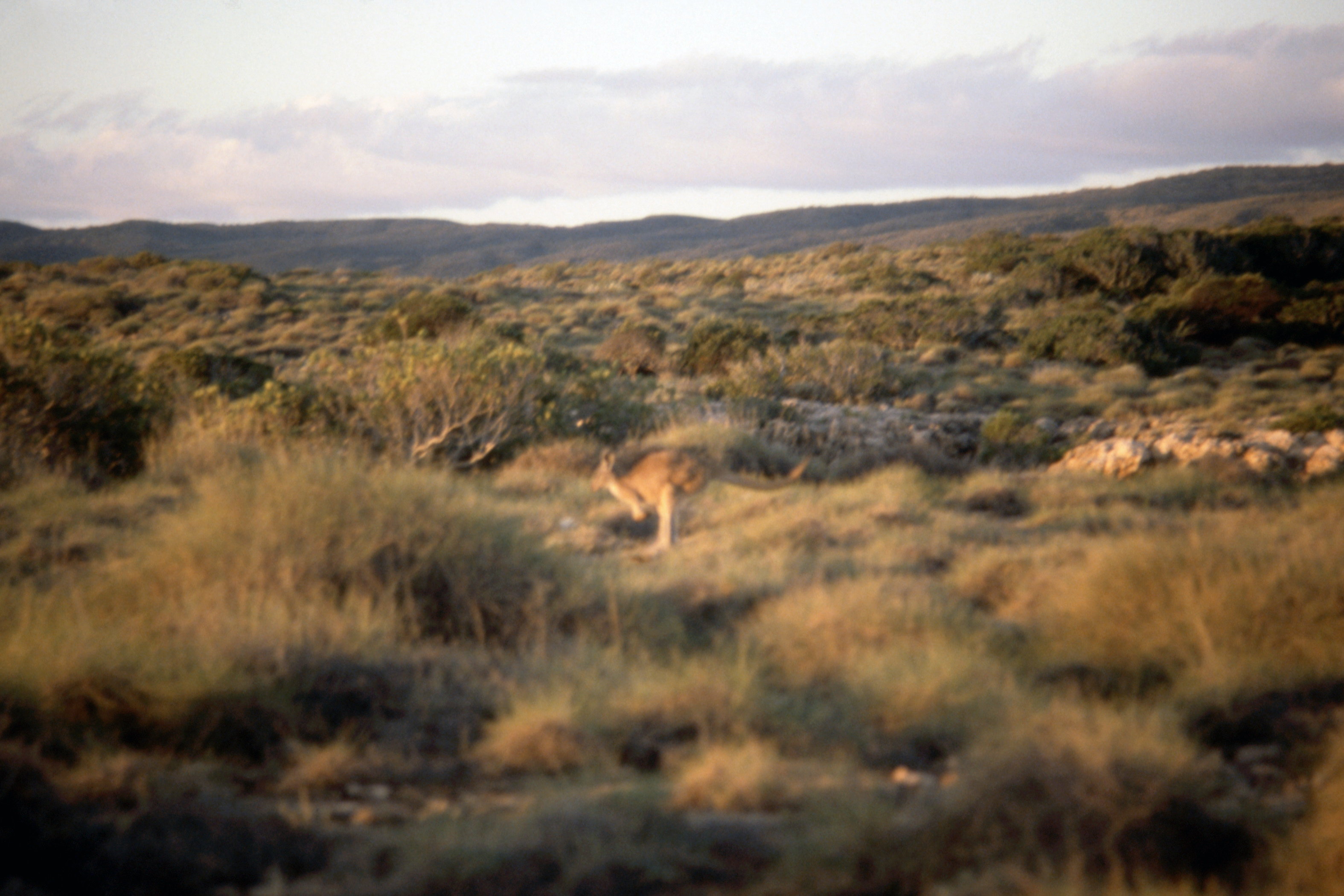 Into the Cape Range National Park to camp at Yardie Creek. Most of the others went swimming but I loitered in the shade, tried to catch up a bit on this, and went for a walk. Then an evening boat trip up the Creek through the gorge as far as the water depth allowed. Got another fairly close kangaroo. The second boat-load had lost the best of the light.