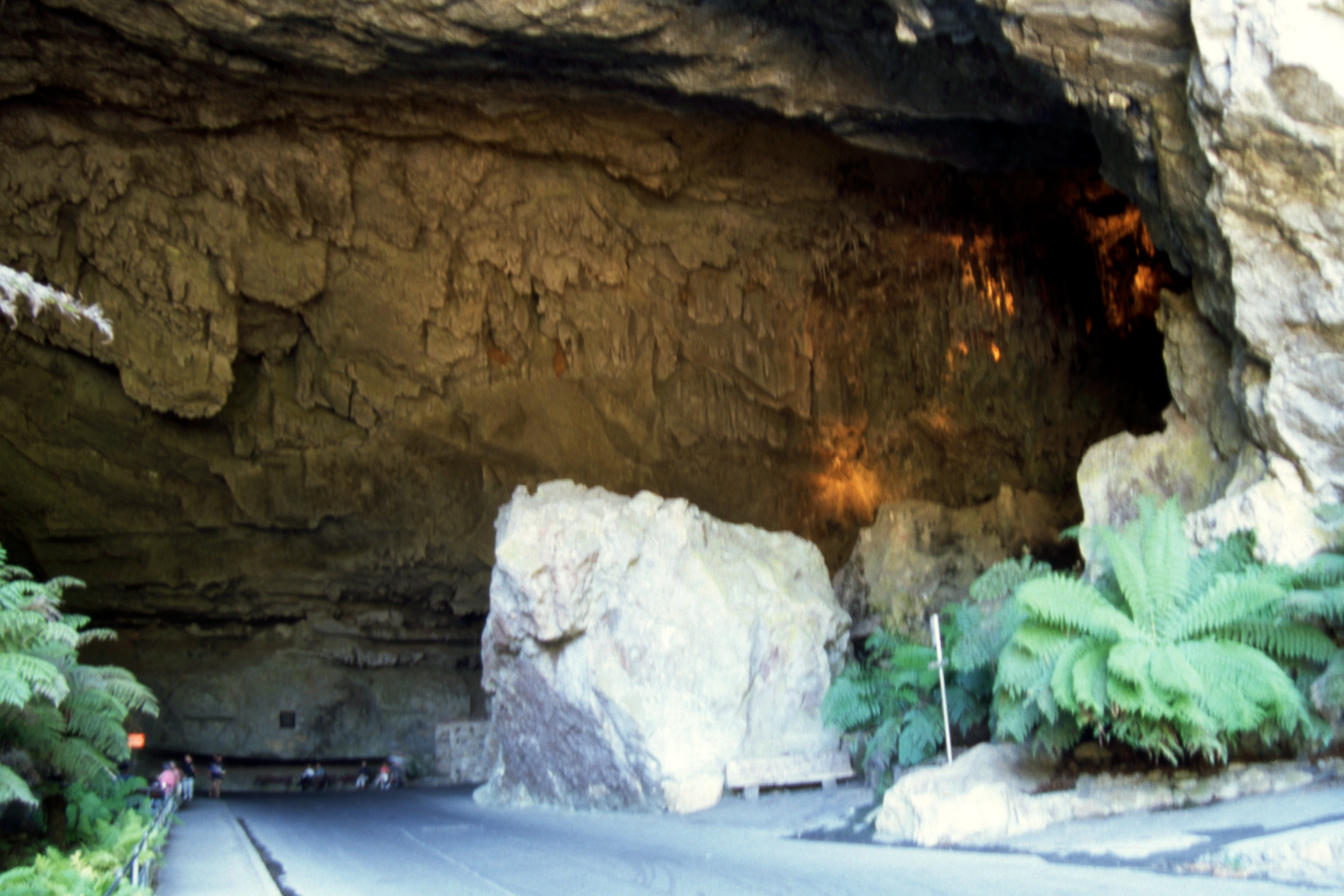 From Blackheath, we travelled west on the main highway for a bit, descending the east slope of the mountains then headed north for the Caves. The last five miles was a sharp descent on a narrow road clinging to the side of a steep slope with no formal system of passing places, just an occasional widening of the road where nature permitted. Most of these would not have accommodated two coaches but all the coaches tend to arrive in the morning and leave in the afternoon. It was the motor-homes which caused problems.