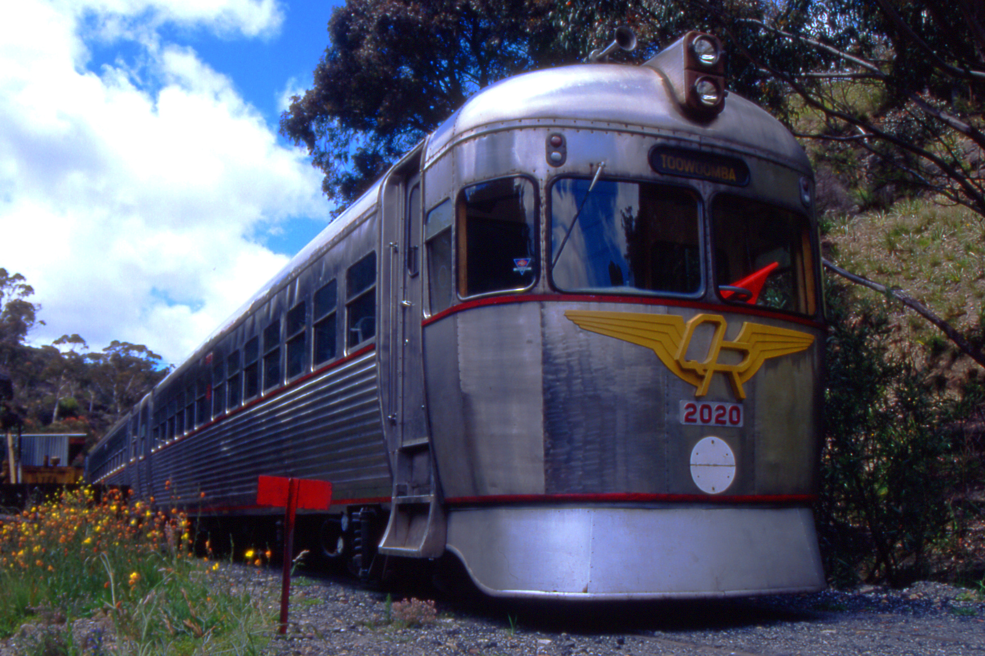 Ex QR railcar 2011 | Ex QR railcar 2020 | Lithgow - Sydney interurban pauses at the ZigZag Railway halt |