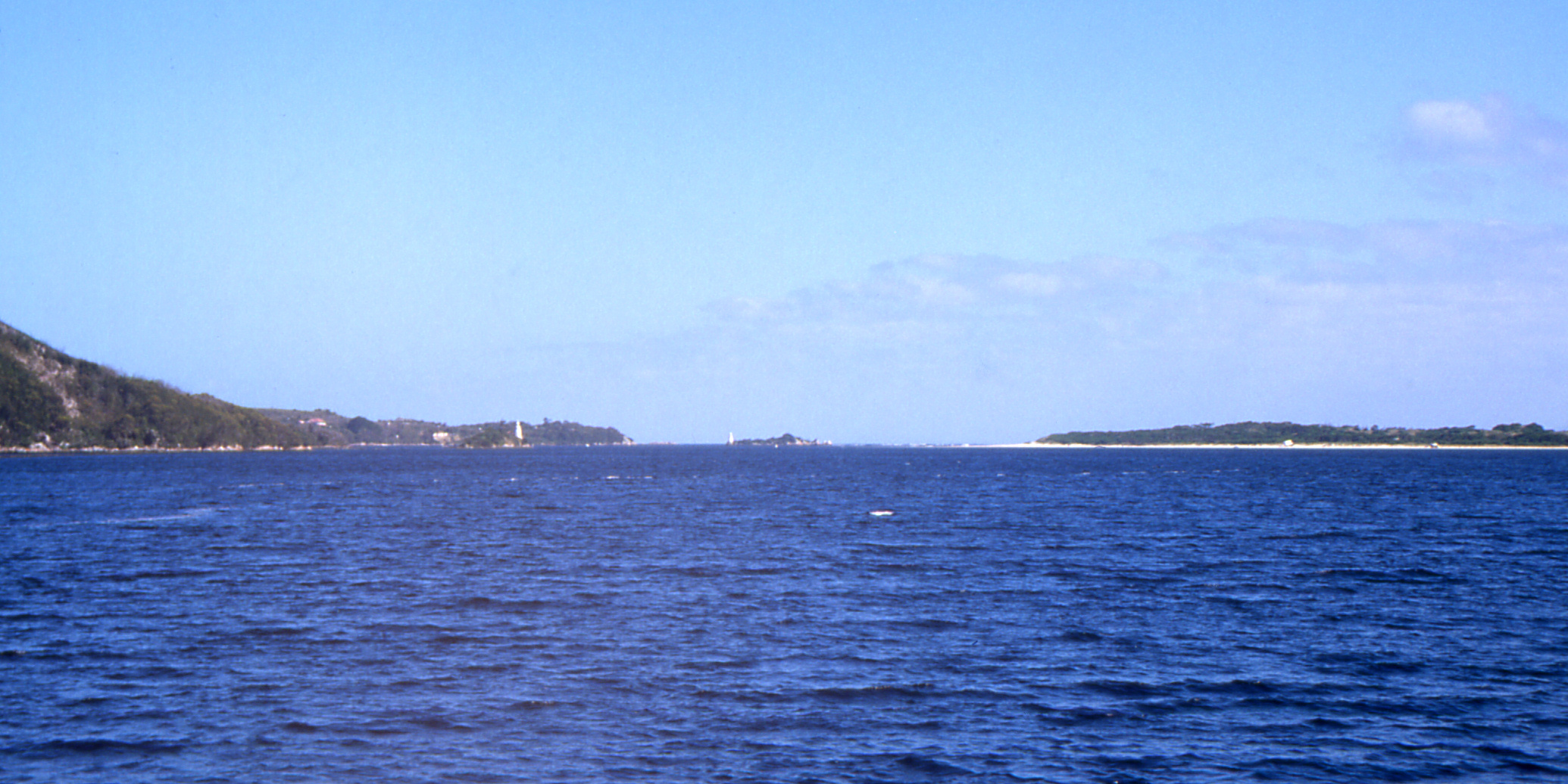 Hells Gate, entrance to Macquarie Harbour | Wake of Wanderer II approaching Hells Gate |