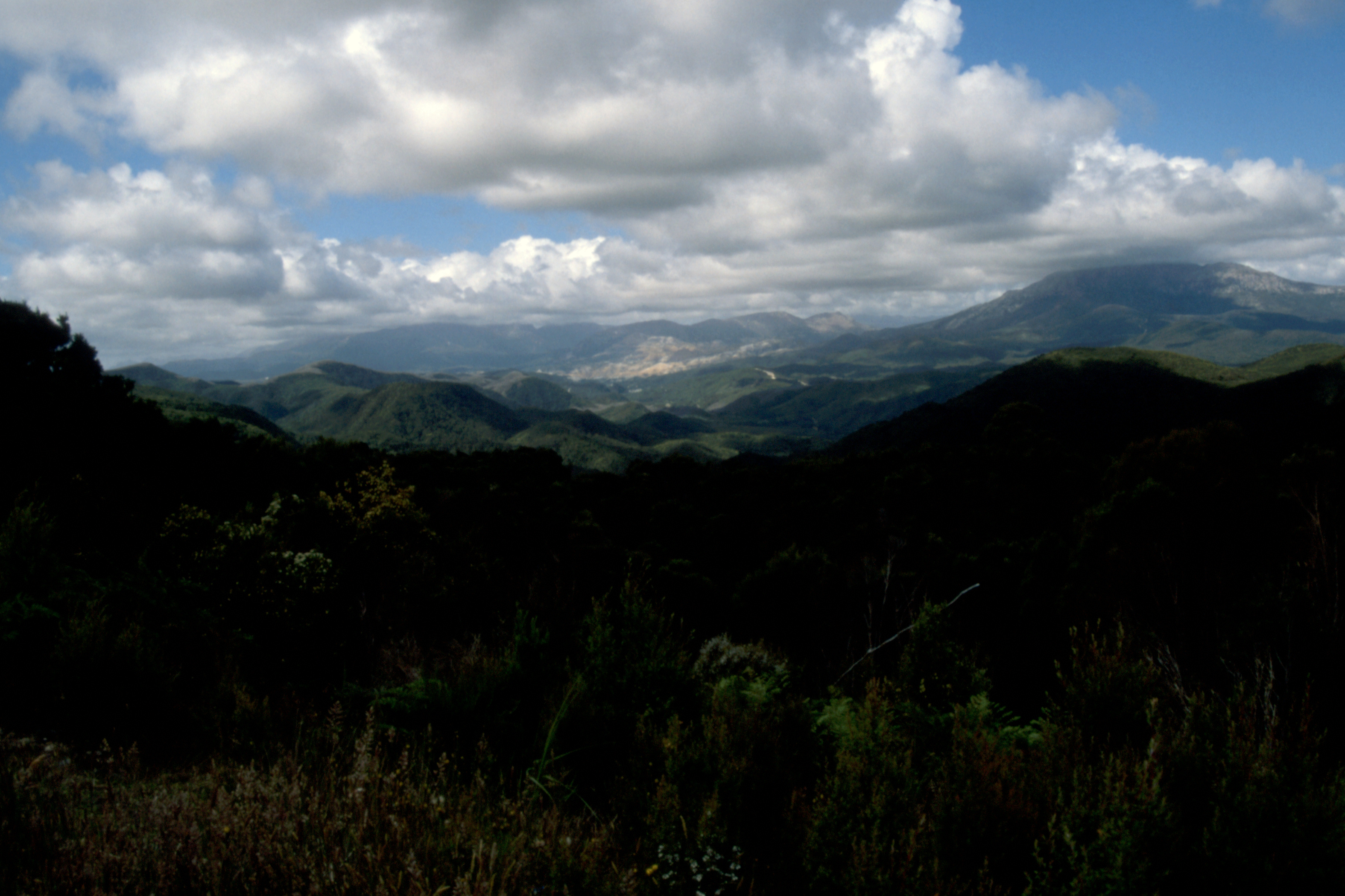 Mt King William I, Milligan's Peak and Mt Pitts from King William's Saddle on the Lyell Highway |