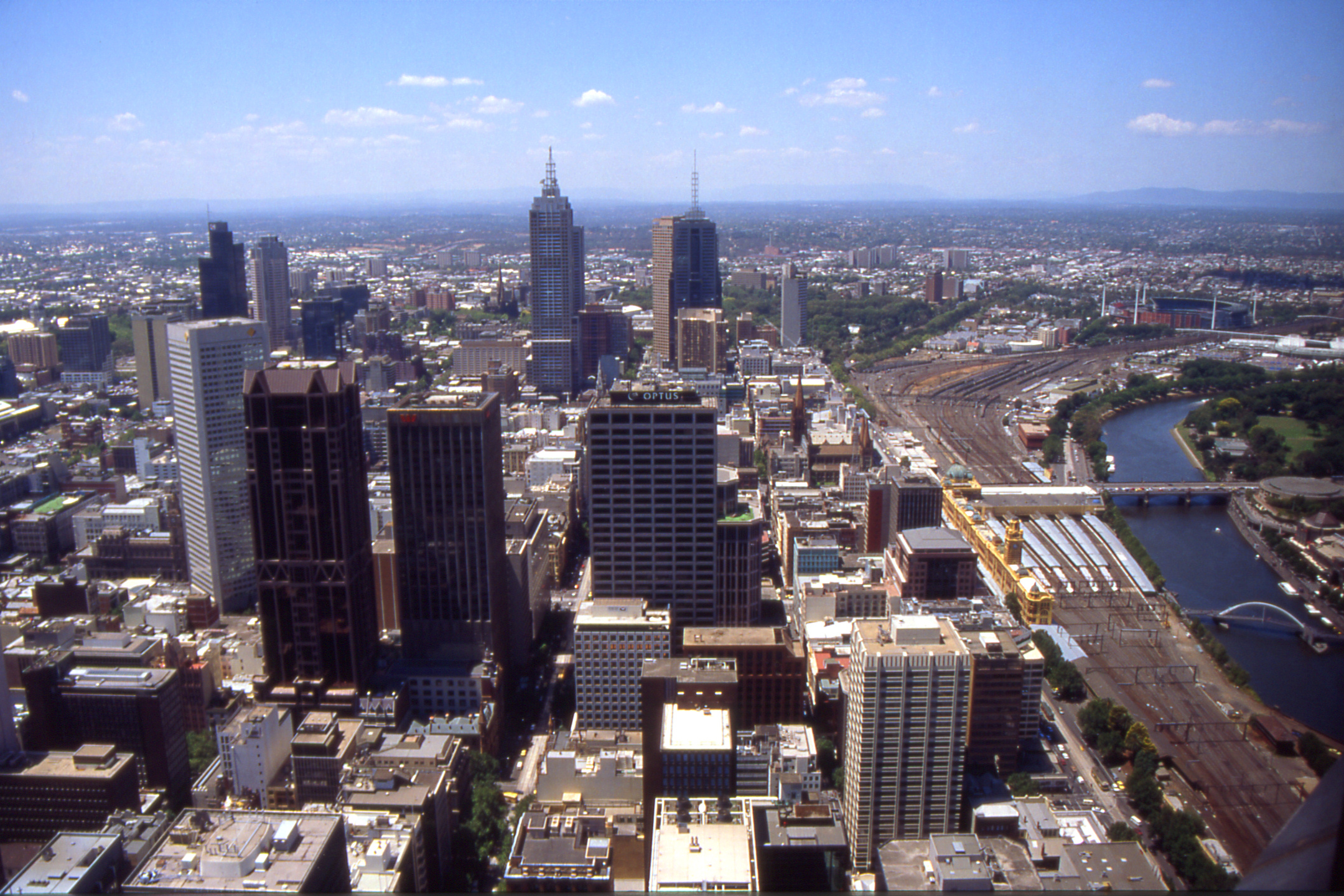 Next, a visit to Rialto Towers, a new skyscraper with observation deck on top, affording good views over the city and for some distance around. Well worth $6. Then back to the hotel for a cup of tea (via the Kilkenny Inn) before going in search of the Redback Brewery on Flemmington Road where I sampled several of their brews, all lager style served in tall vases, some with lemon. Pleasant conversation with David and Corran before heading back to the hotel with a pause to watch possums in Flagstaff Gardens.