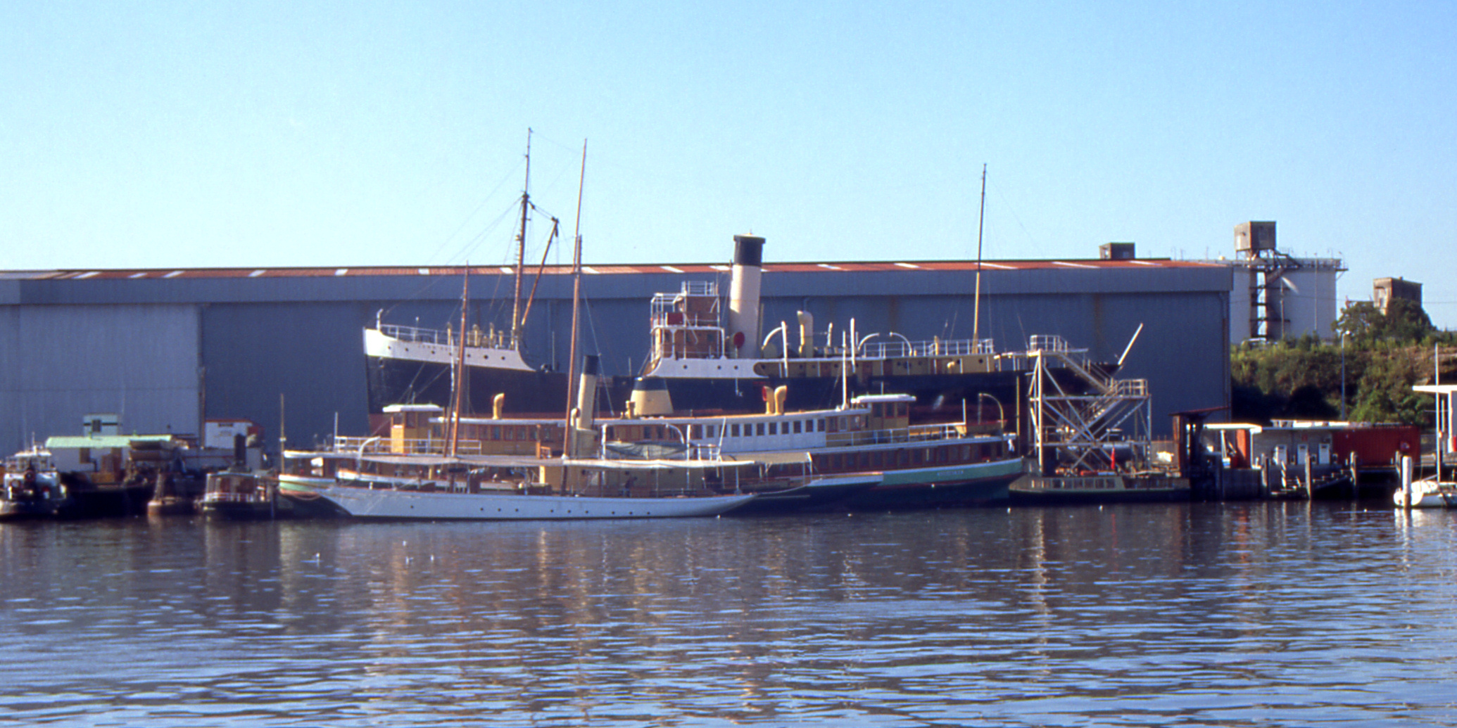 I extended my booking at St Andrew’s for another night (Saturday) before heading back into town, buying expensive tobacco and cheap matches on the way. Breakfast was tea, fruit salad and ice cream, then I went into the YHA office in Kent Street and arranged four nights at Christchurch Central hostel for my arrival in New Zealand. Down at Darling Harbour, I dined on an expensive tea and salad aboard the South Steyne, ex-harbour ferry built by Henry Robb of Leith with engines by Harland & Wolff of Belfast.