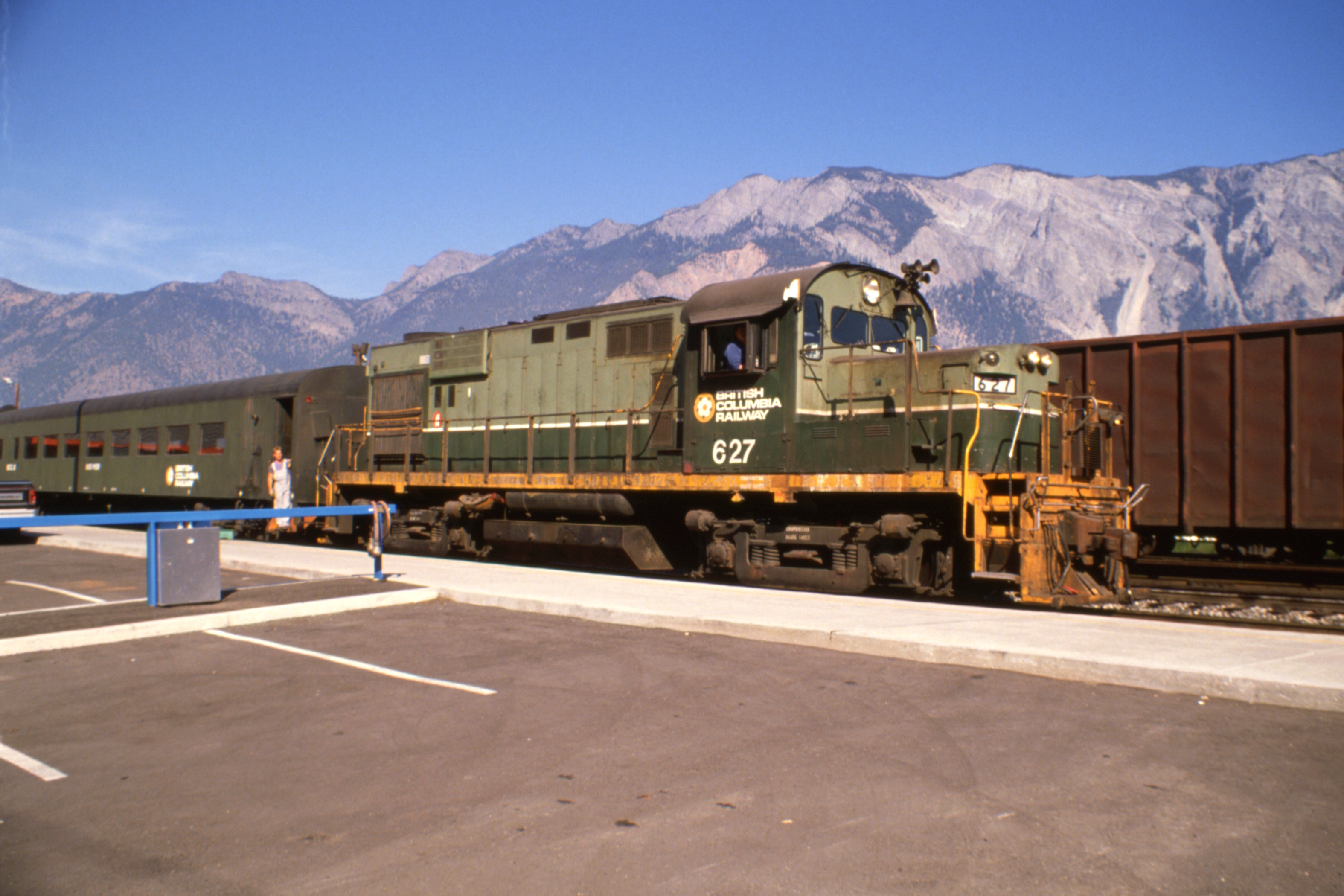 BC Rail railcar at Lillooet | BC Rail 627 and coach forming a school special |