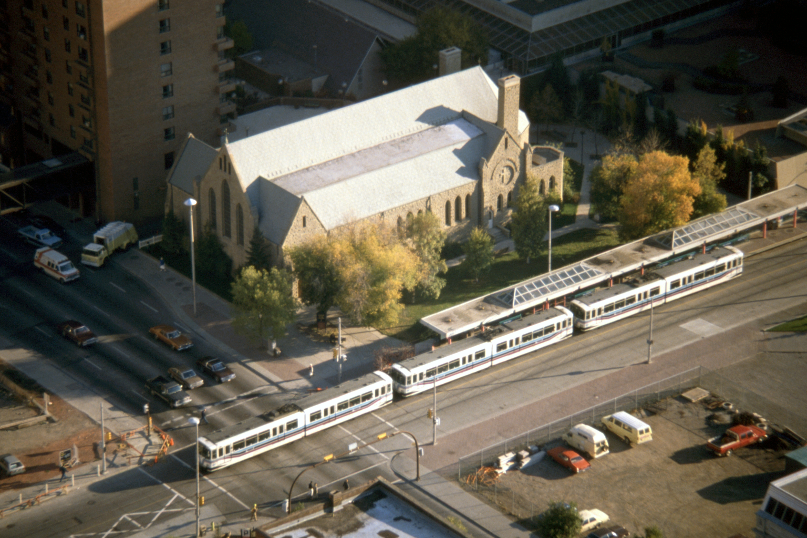 South | Calgary C-Train from the tower | Modern architecture and the ski jump |