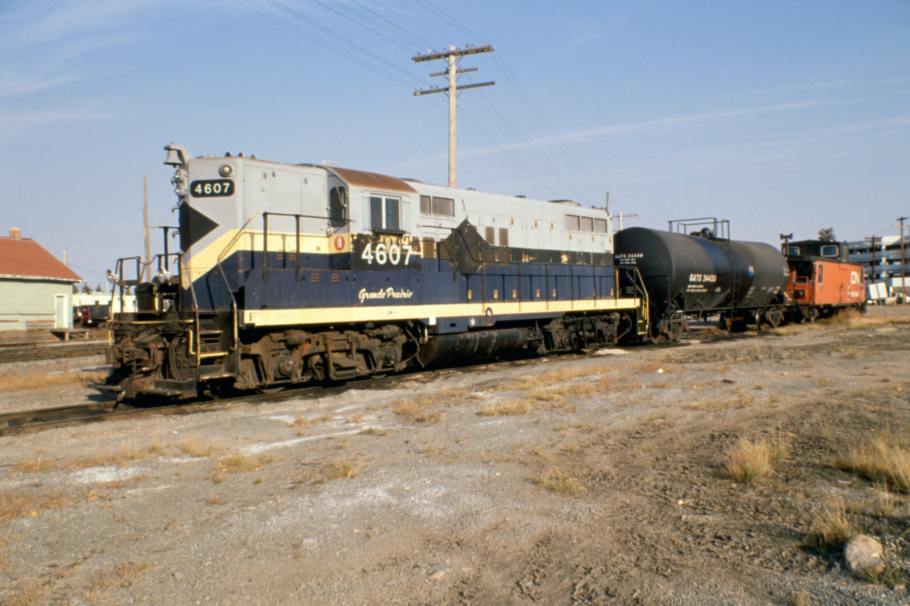Grain elevator at Lloydminster, on the Alberta/Saskatchewan border | Locomotive 4607 in the yards at Lloydminster |