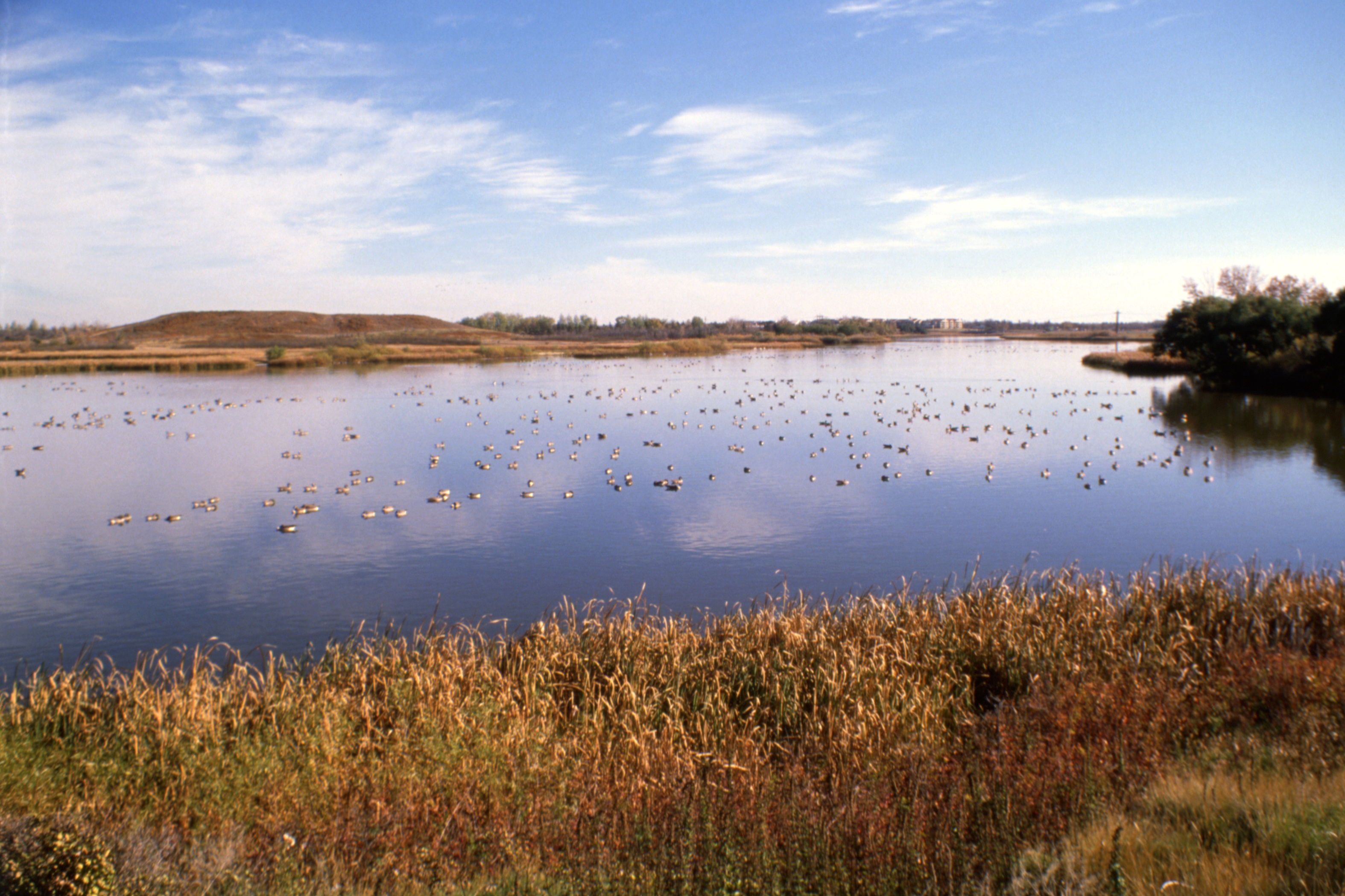 Still sunny and cold. Booked another night at the hostel and then went for a wander in the park, the Wascana Centre, largely man-made, where a deliberate policy to encourage the Canada geese to use it as a stop-over on their migration has been a great success. I was disappointed that they didn’t all take off while I was there, so no darkened skies. Walked as far as the Trans Canada Highway before returning down the other side over a man-made hill.
