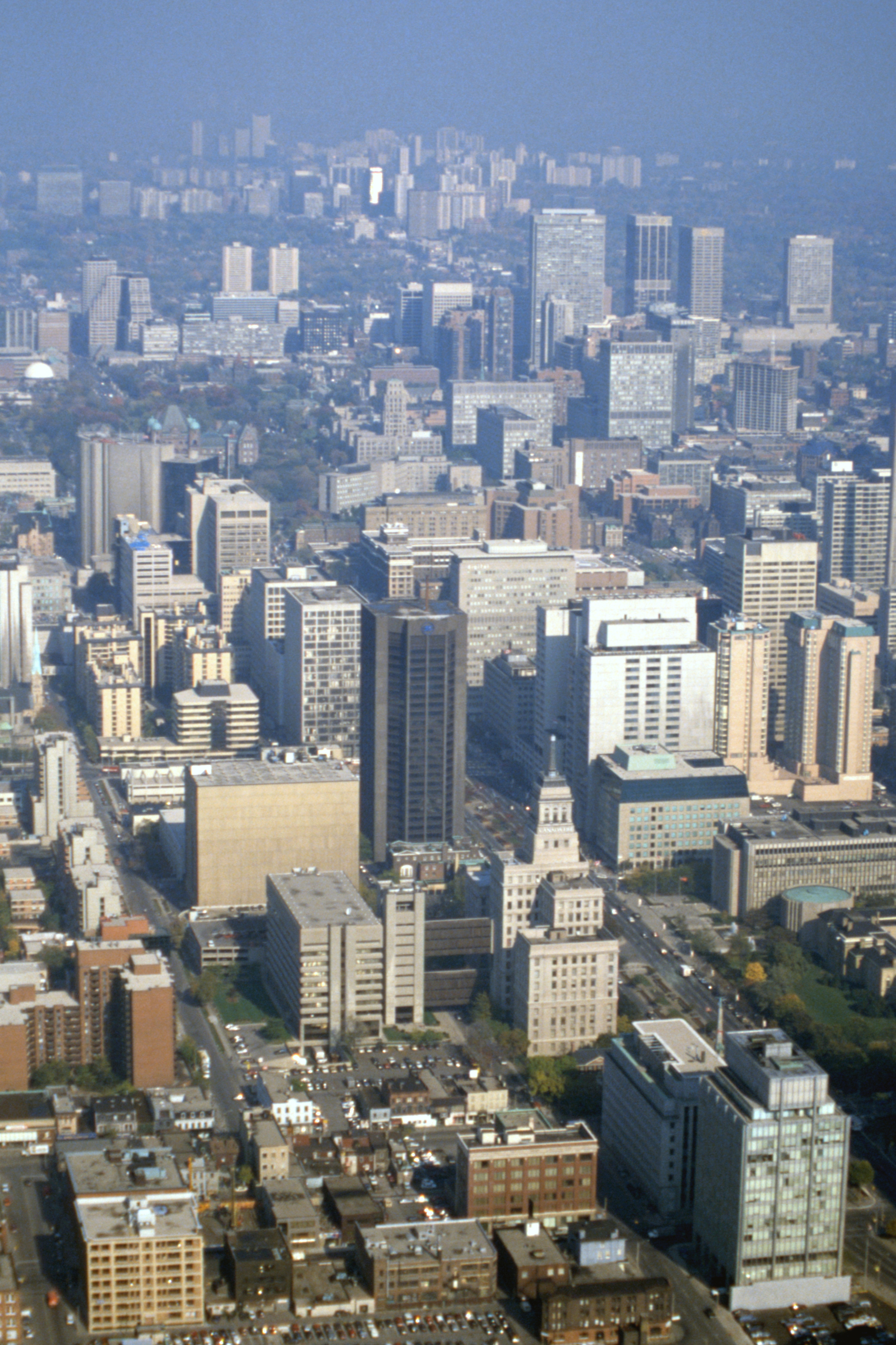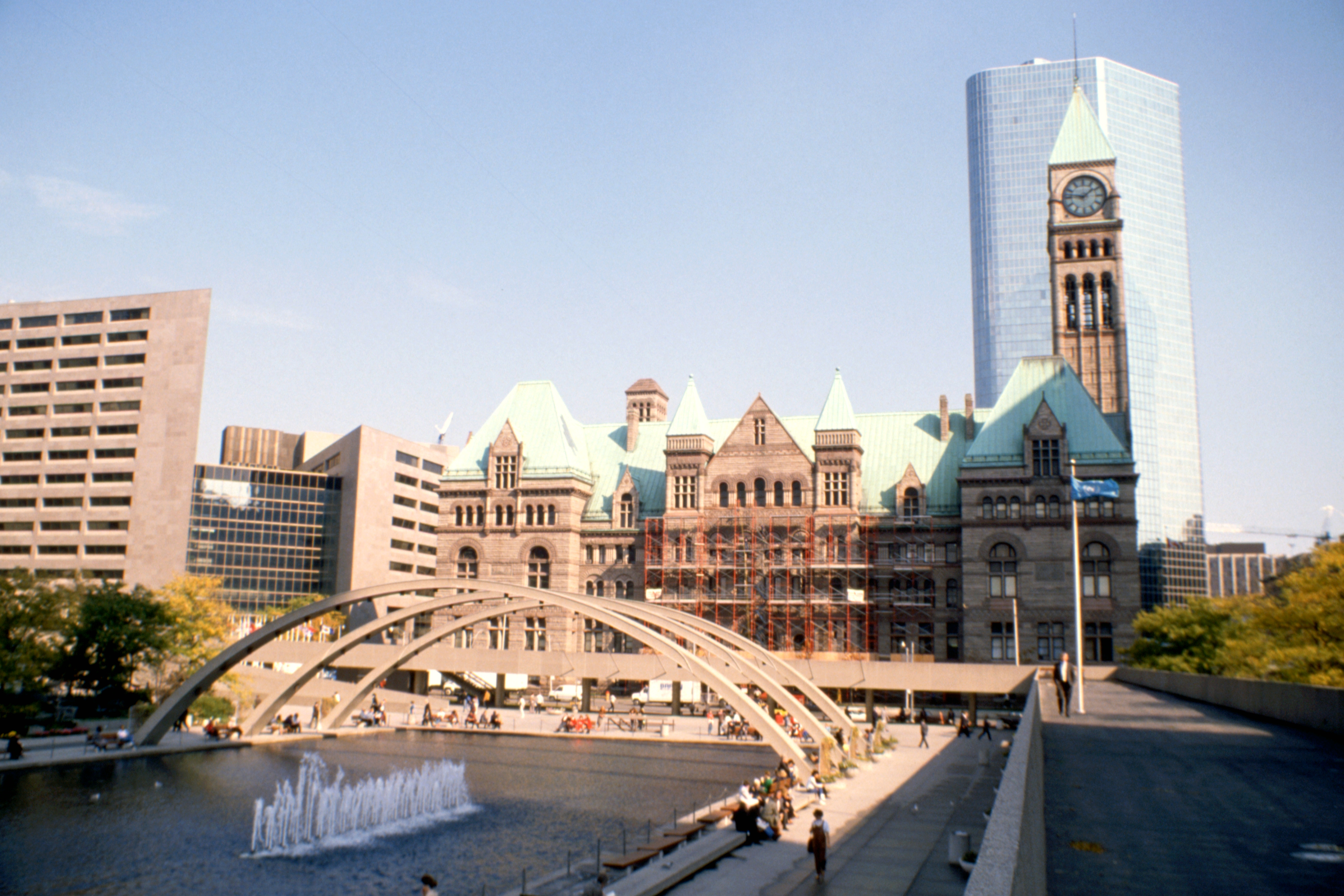 Went into a Chinese for an “all you can eat” buffet lunch, not for the quantity but for the variety. Condor was a bit expensive here, around $7.75, the same as in Winnipeg, but I decided that if I bought one packet and eked it out, it might see me home. I wonder what the price is now in Montreal. Took some photos down around the Skydome, finishing the film just in time as dark clouds gathered. That was the last of the Black’s film so I reloaded with Fuji and dropped eight films in for processing on the way back to the hostel.