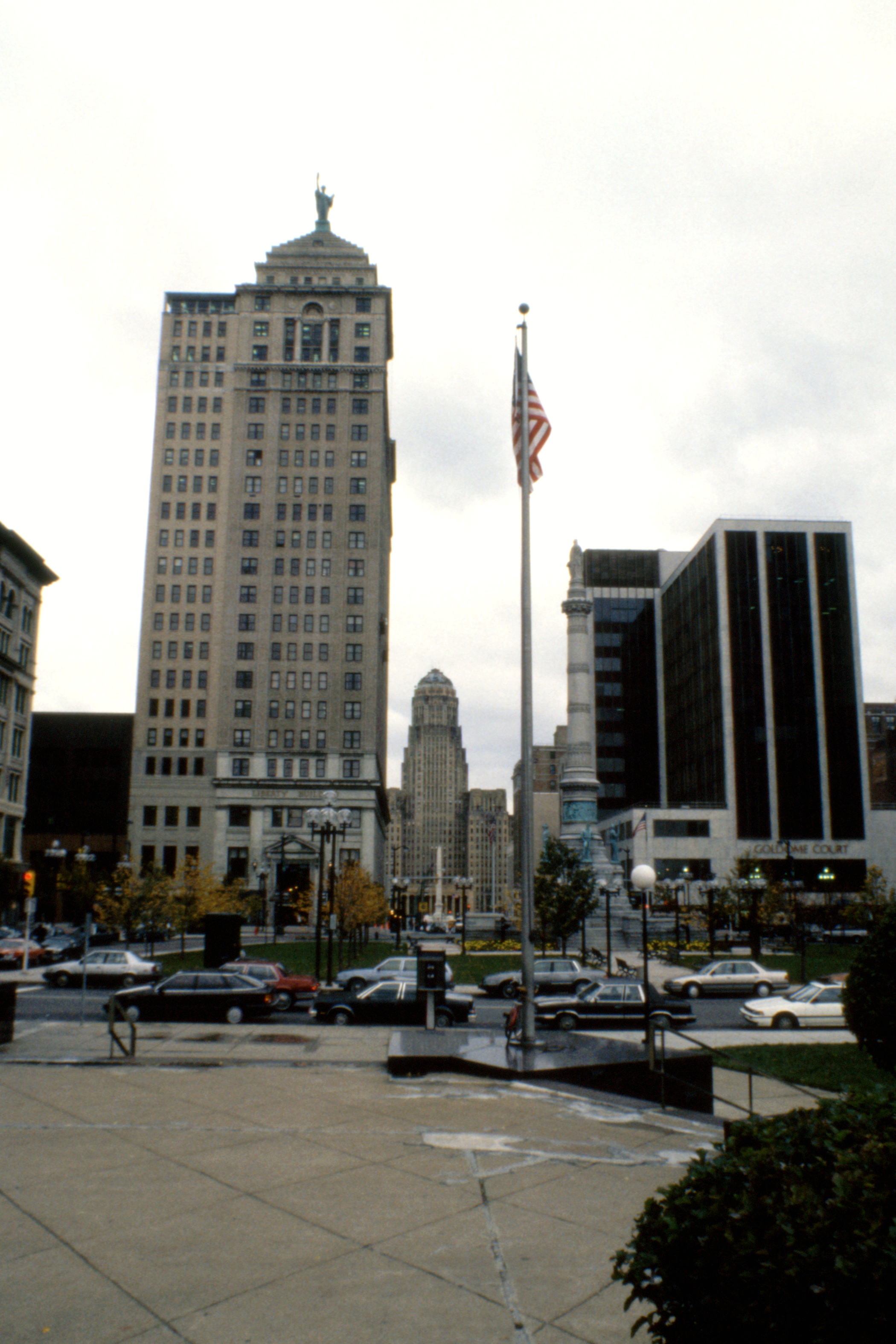 Liberty House and Buffalo City Hall in the distance beyond the War Memorial |