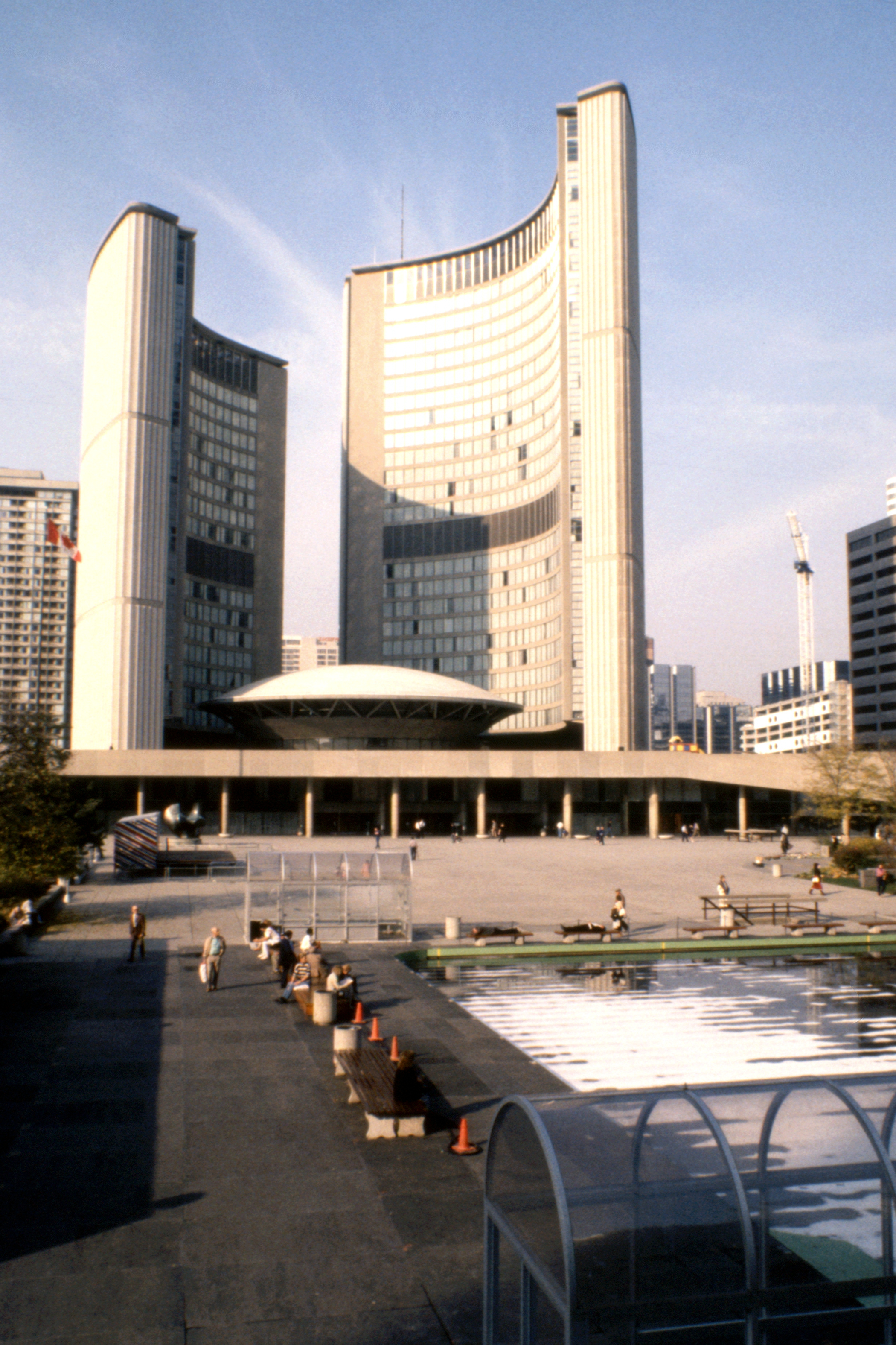 Interior of a church, St Andrew's Presbyterian? | Toronto Courthouse behind the fountain which becomes a skating rink in winter |