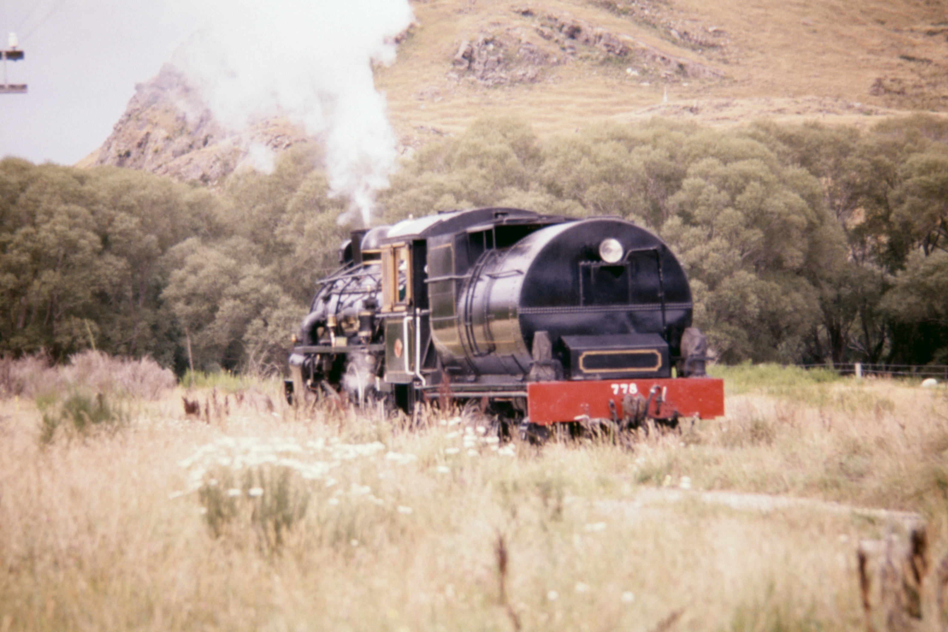 Lake Whakatipu at Queenstown The station provides the only pub in the town so I had a pint there, and on asking, I was told that they would be swapping the engines round in two or three weeks time. Just too late for my schedule. Schedule? What schedule? But I think I’ll be up at the top of the South Island by then. I returned to Queenstown to get some money and films, but I couldn’t get the type I wanted.