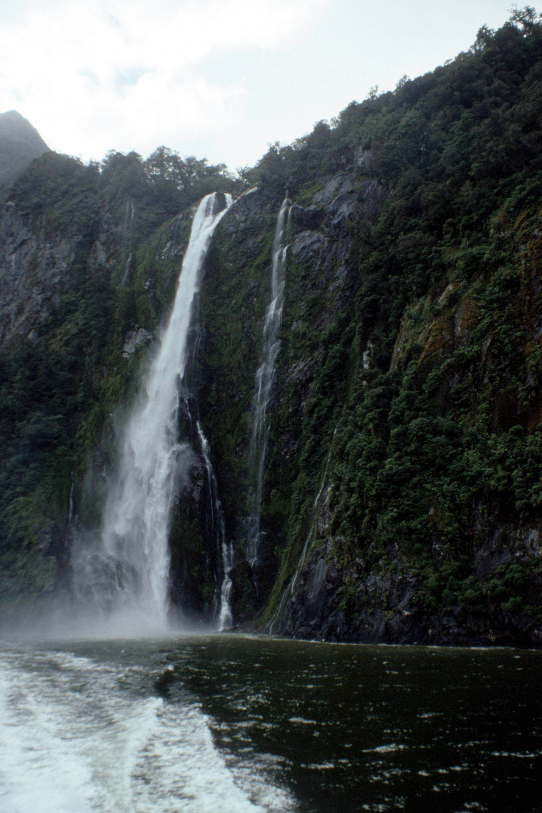 Down at the Sound, I took the cruise on a catamaran which went right out to the open sea at a rate of knots and in a fair amount of spray which sent most of us on the upper deck diving for cover. The scenery here is spectacular too, sheer cliffs cut by the ice, several thousand feet high with waterfalls dropping straight from hanging valleys and in the stiff breeze, some of them didn’t reach the bottom. There were some seals on the rocks.