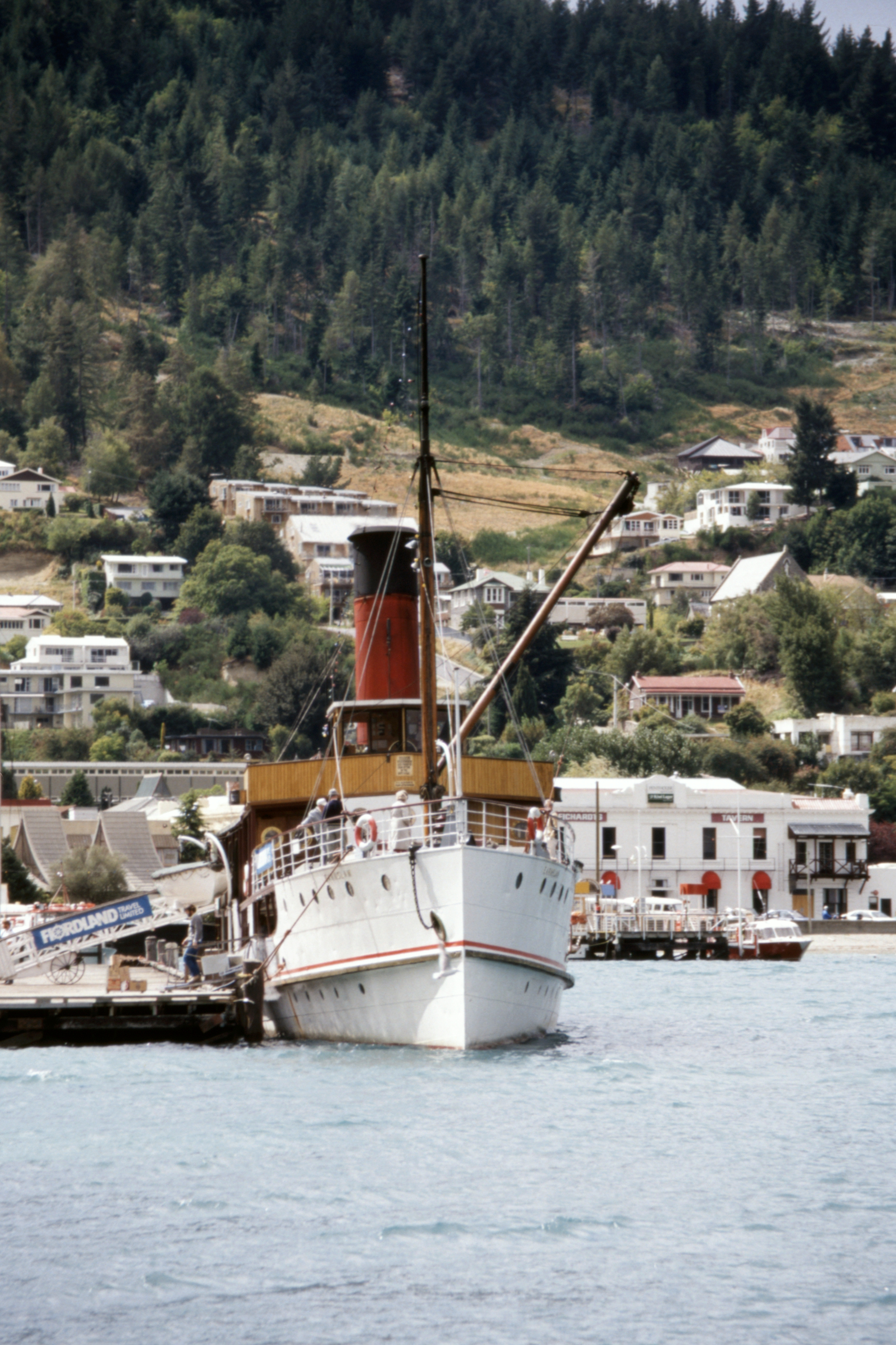 The morning cruise was quite short, only an hour, up the Frankton Arm of the lake and I spent most of the time watching the stokers shovelling coal for the two boilers and admiring the clouds of smoke coming out of the funnel. Then I hung around to watch the afternoon departure for a cruise across the lake and a visit ashore at the Mt Nicholas sheep station.