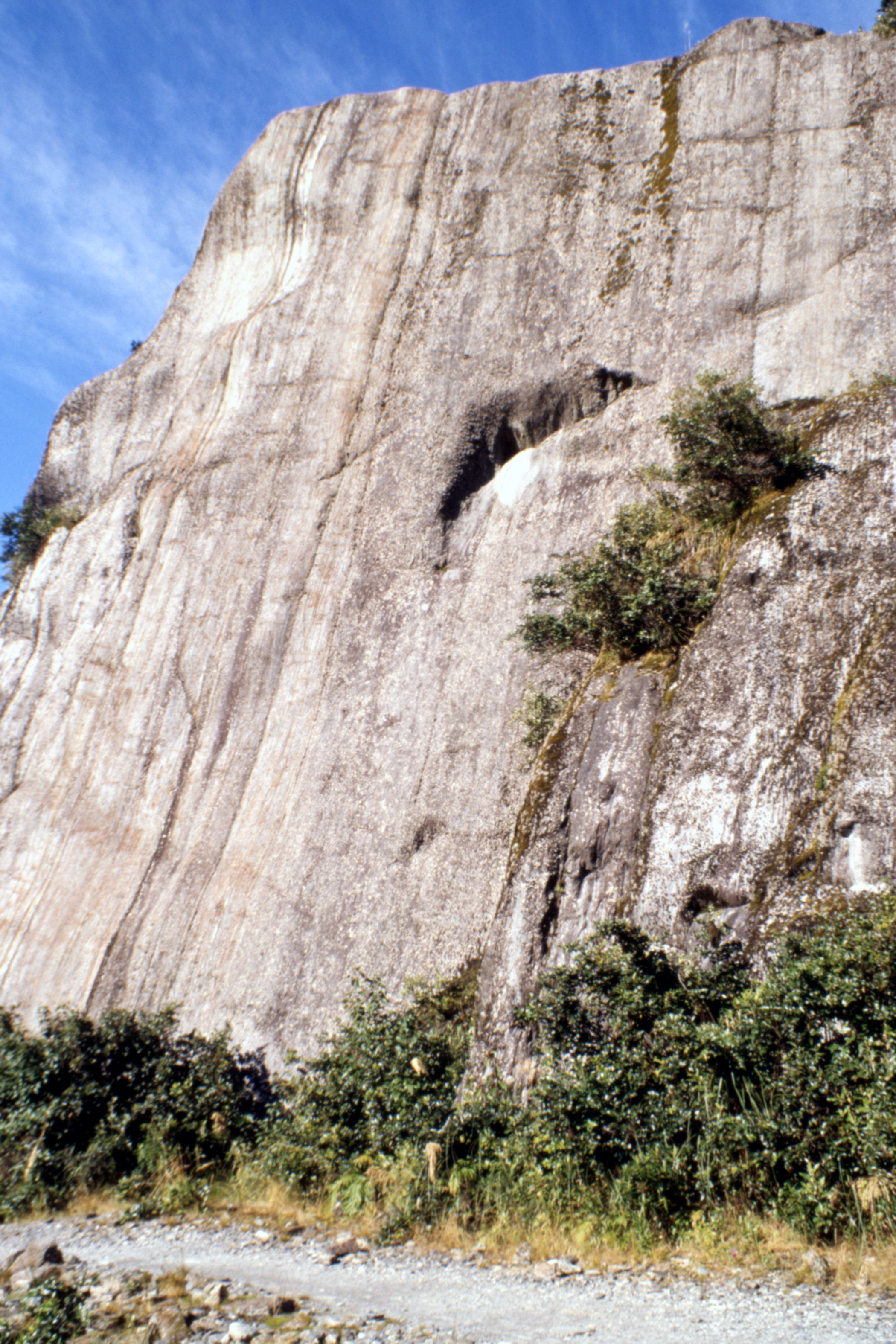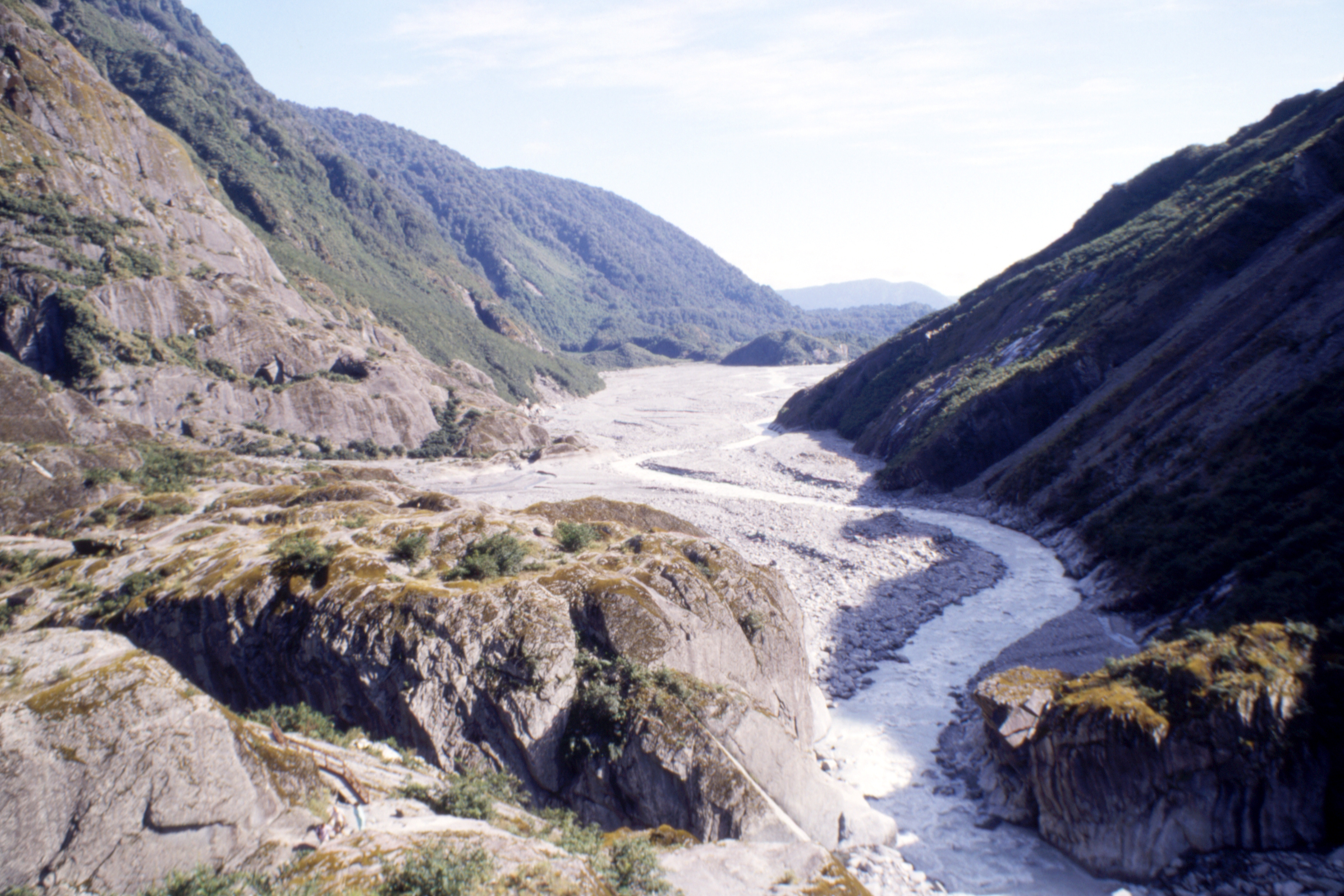 Still missed the best of the reflections in spite of being there at half past seven. I took the road to Franz Joseph to see the glacier there. It would have involved a lot more climbing to get a view over the glacier here so I just walked up and looked at the end of it. Unguided persons are not allowed on the ice because of the unstable nature of the structure. Bits keep falling off it.