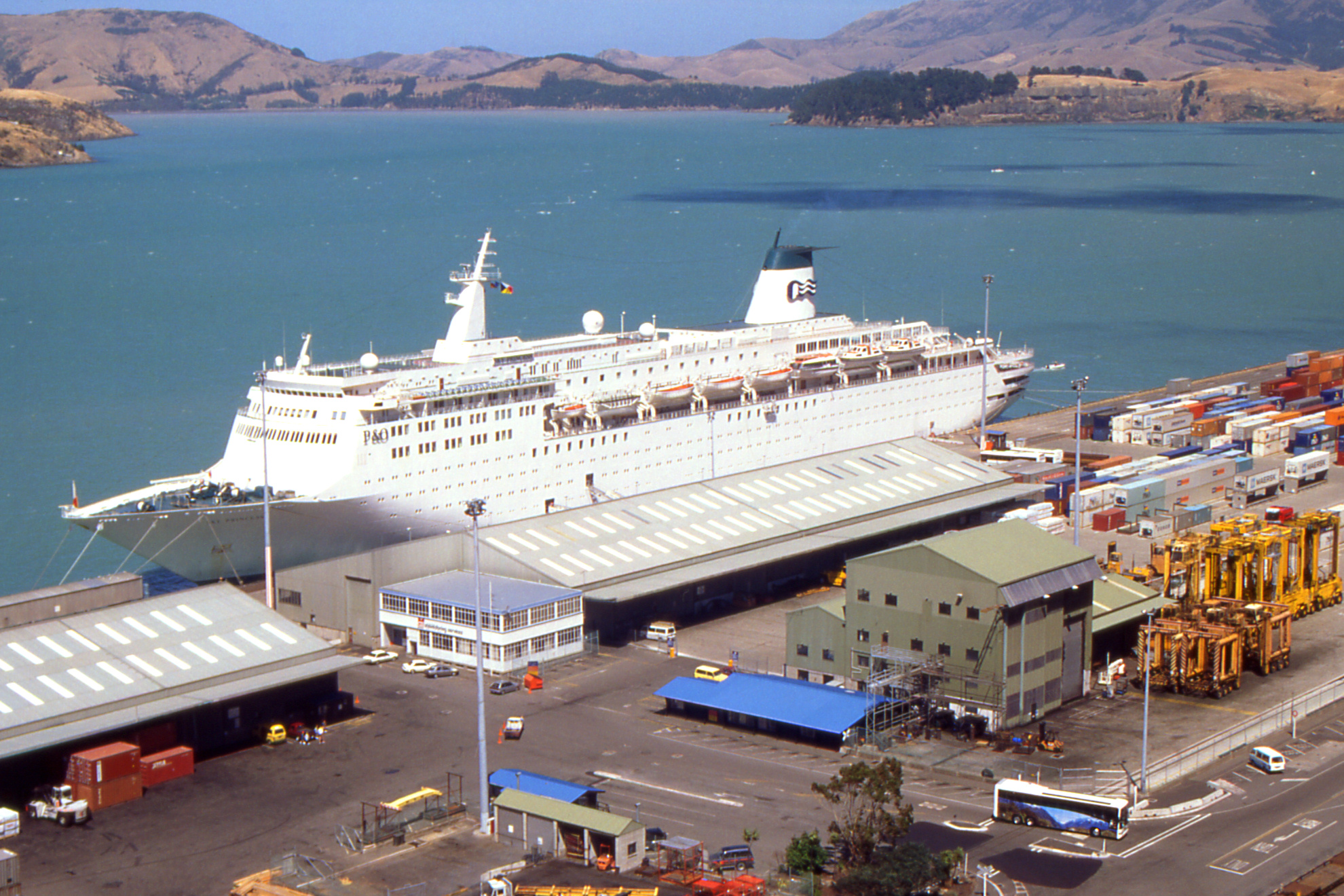 And so woke up a bit later than usual, but still in good time to catch the 1120 bus for the 25 minute journey through to Lyttelton, where I had plenty of time to wander around admiring the activity in the port. The P&O cruise liner, Sky Princess, was in port, attended by a fleet of buses to ferry passengers around the local attractions. A coal train was unloading, edging forward as each wagon emptied its load over a bank with earth movers removing the coal to a large pile, and there were several irrigation sprays operating to keep down the dust.