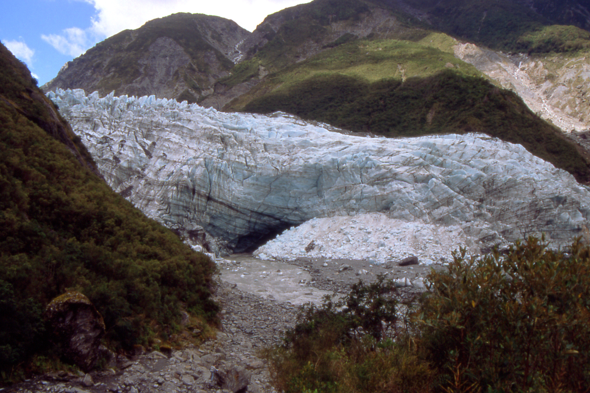 On the way back down the valley, I crossed the “historic” (1923) bridge and returned up the north side past the washed out car park to the face of the glacier. The “Danger - do not pass this point” notice was well back from the face but I took a couple of photos anyway and finished the film on the way back down the valley.