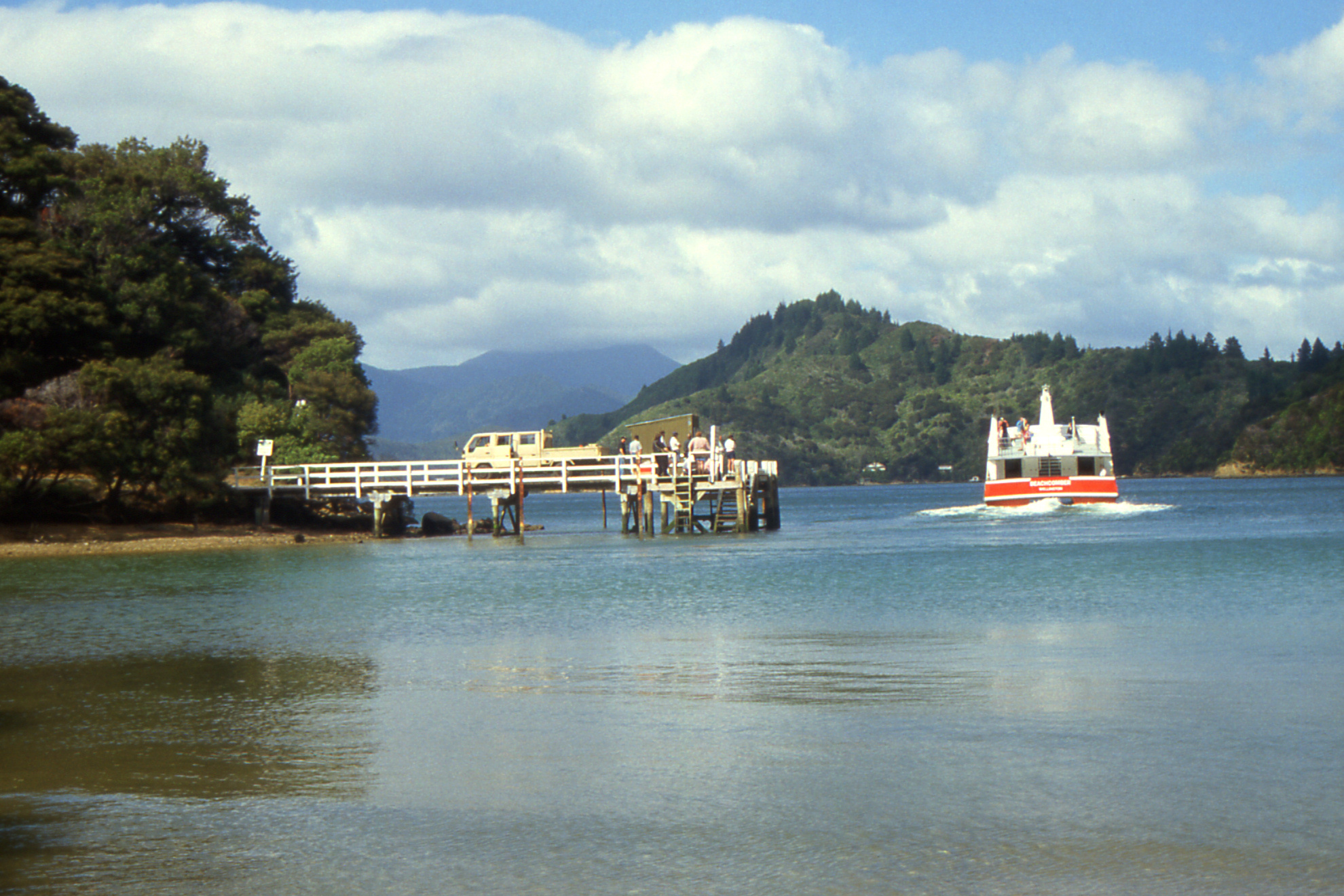 There were plenty of seats available on this morning’s bus to Picton so I decided to move on and rushed along the road to buy some film. I decided to get just the one just as well as they were $13.50 each as against $10.87 in Dunedin. The bus had to wait for a connection from the driver said Marahua but the timetable shows the bus from Kaiteriteri doesn’t go via Marahua and were thirteen minutes late leaving, then there were a couple of pick-ups and it was twenty past ten before we hit the road.