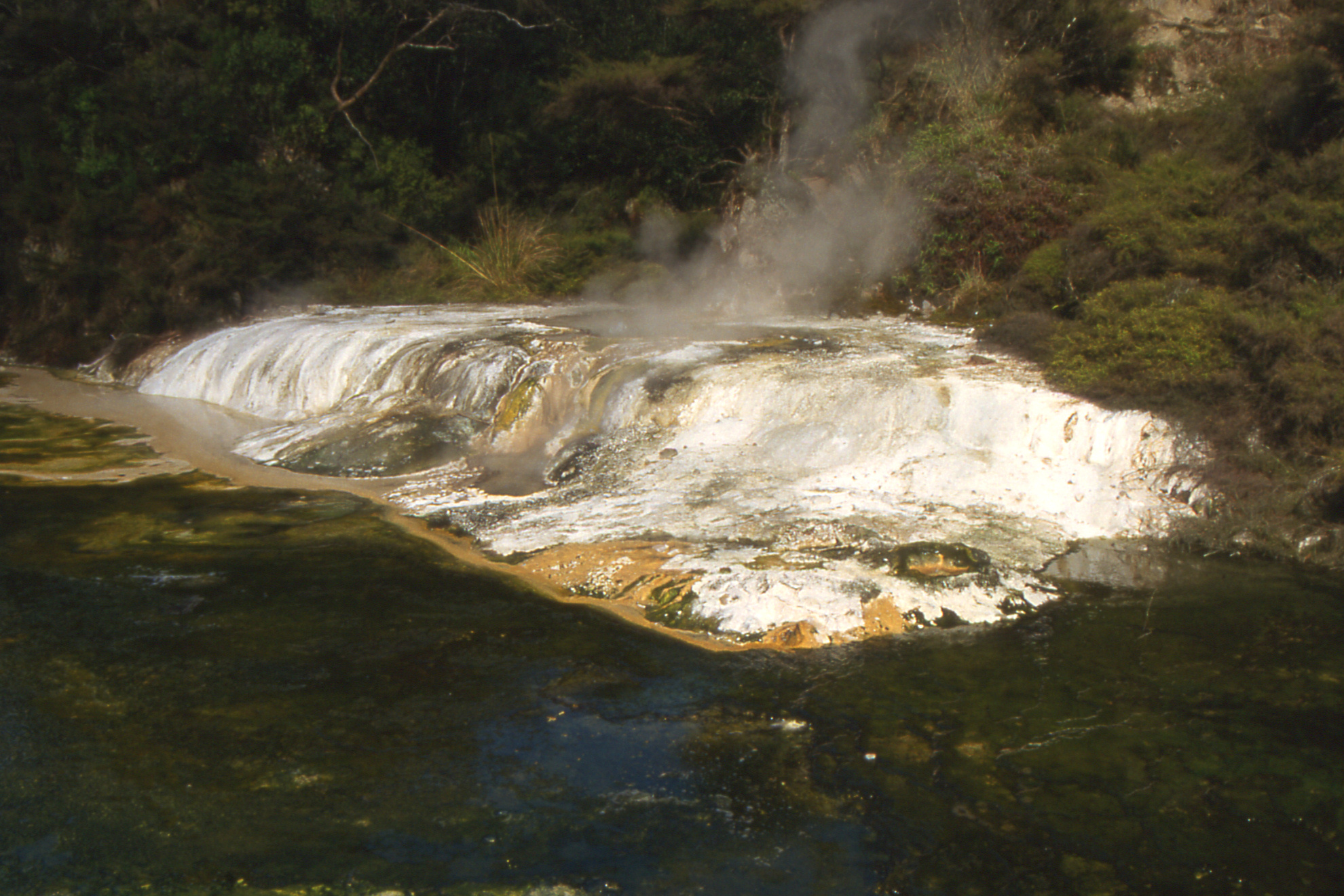 Since I intended a short walk, I changed into a sweaty-backed Waverley t-shirt and the girl at the cash desk recognised it! She also was aware of Waverley Station in Edinburgh. I’d a pleasant walk down the gorge, stopping here and there to think no, I don’t remember this not even the names of most of the features. However, I took some photos which I will compare with the old ones. Down by Lake Rotomahana, I walked out to the old jetty and back (all of 300 yards). I scorned the bus back up and walked, to find the cafe closed and the car park almost deserted, only the souvenir shop was still open at quarter past four.