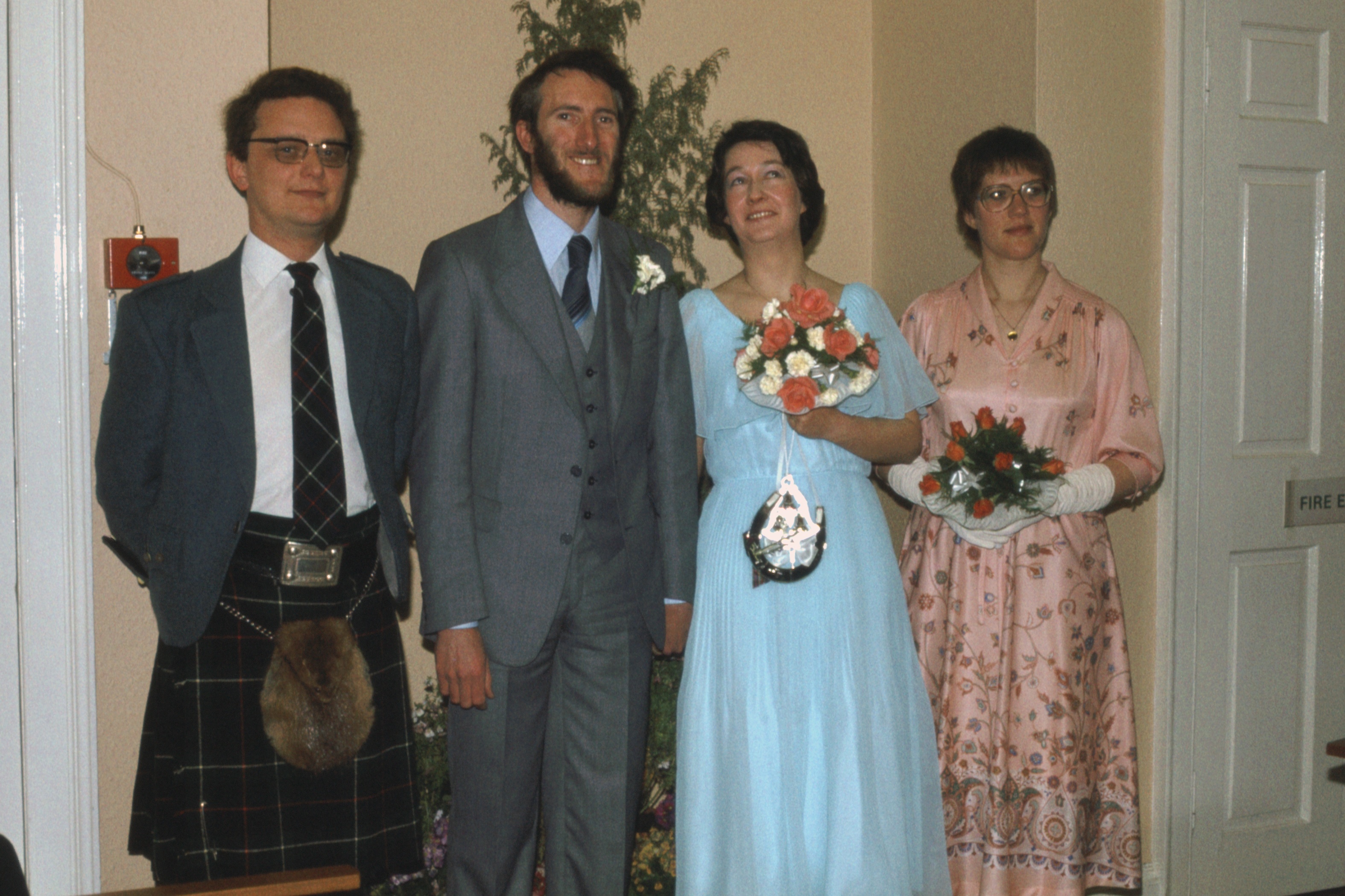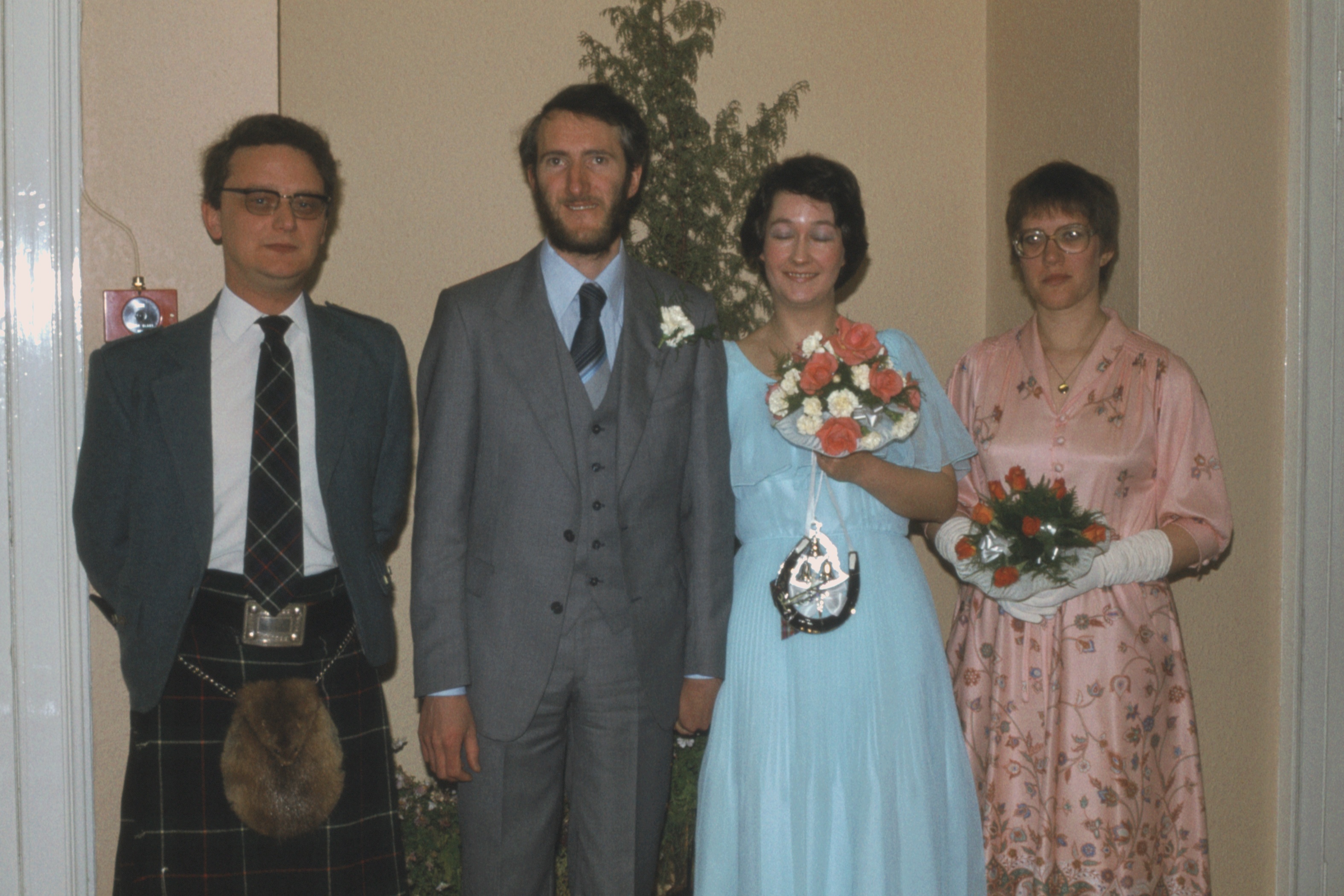 Tony Harris, a colleague at Dalkeith, married Lucille at the Edinburgh Registrar's office in Queen Street. The best man was Mike Worling (another colleague) and the bridesmaid was Tony's sister. The photographer objected to wedding guests piggy-backing on his compositions so there are no photographs outside at the hotel.