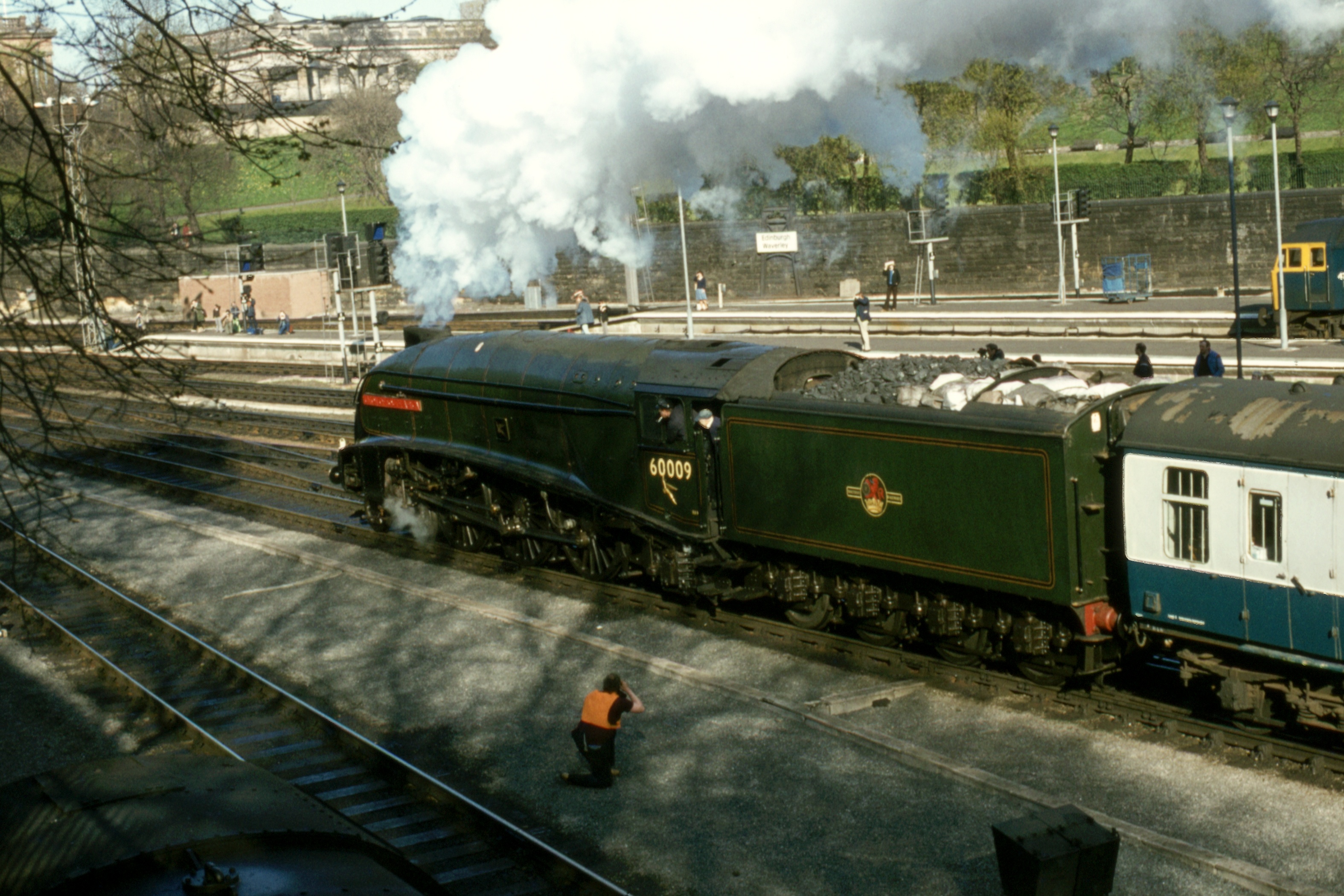 The first train from Aberdeen arrived at Waverley just before the departure of a steam excursion hauled by 60009 “Union of South Africa”.