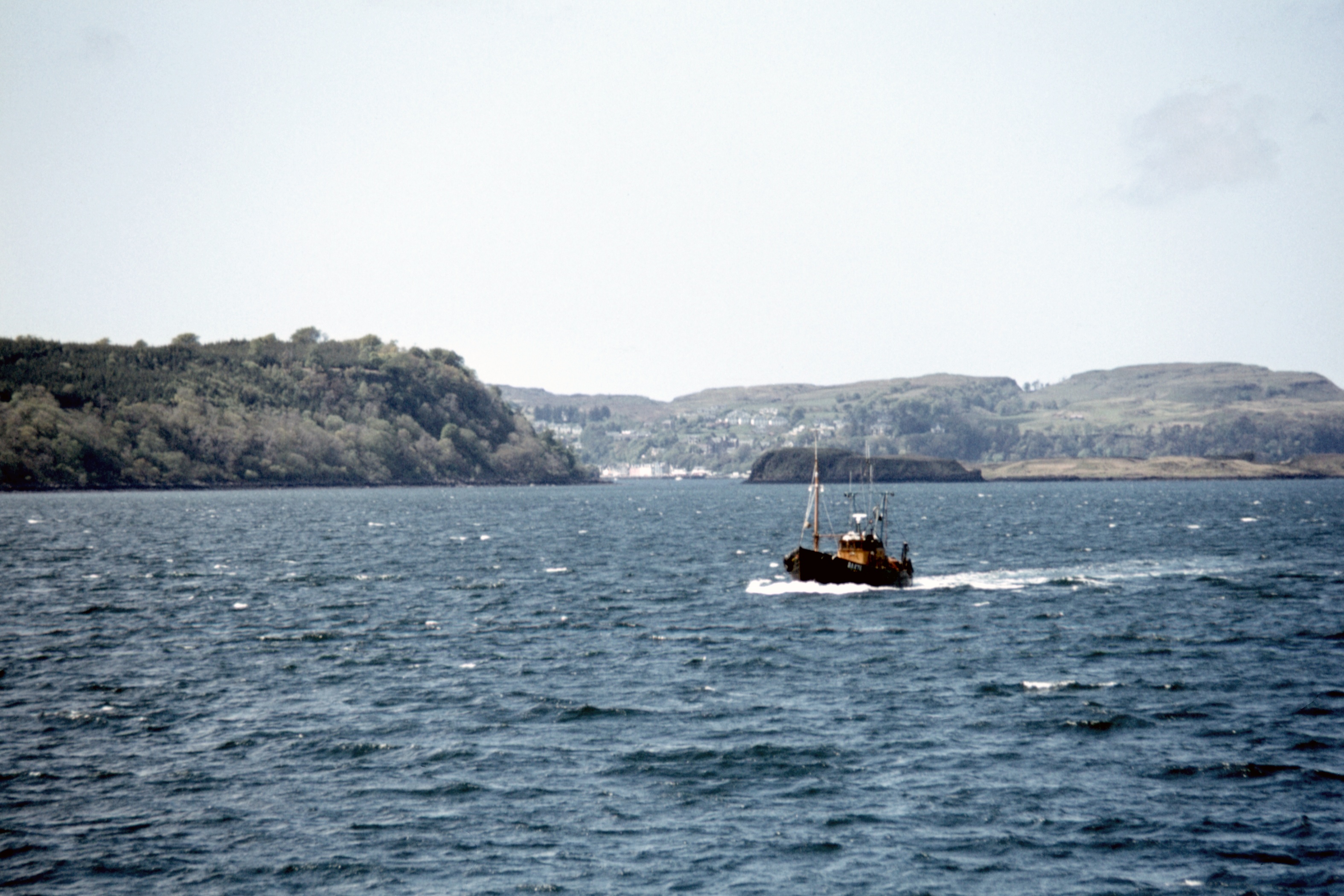 I started with the 08:04 train to Oban arriving at 11:15, then the 12:00 sailing on mv Caledonia to Craignure for the 12:50 bus to Tobermory (had to pay £1.35 each way) arriving at 13:35. After a stroll out to Rubha nan Gall, it was the 15:30 bus back to Craignure for the 17:00 sailing to Oban where I stayed in the Youth Hostel (£2.30).
