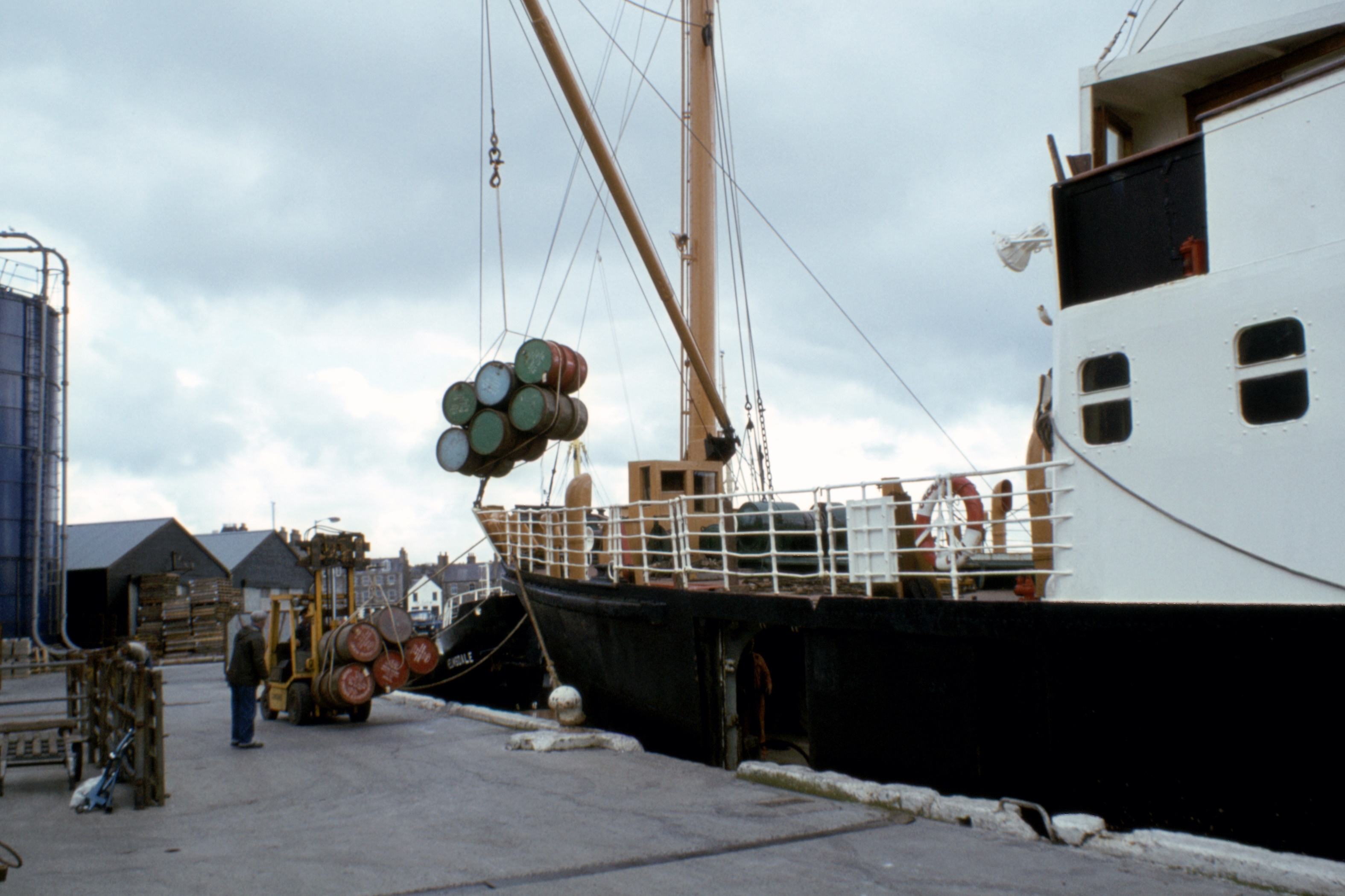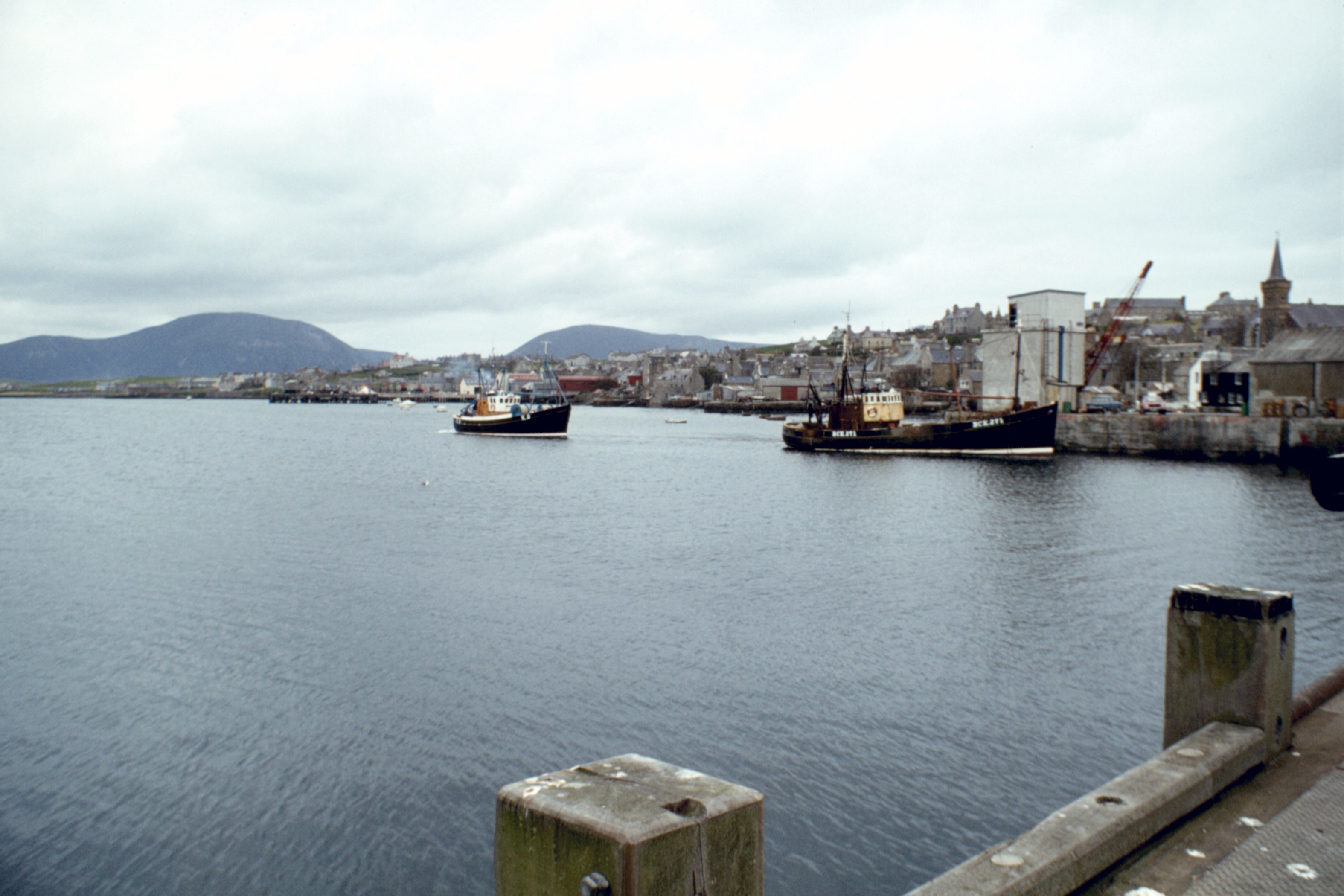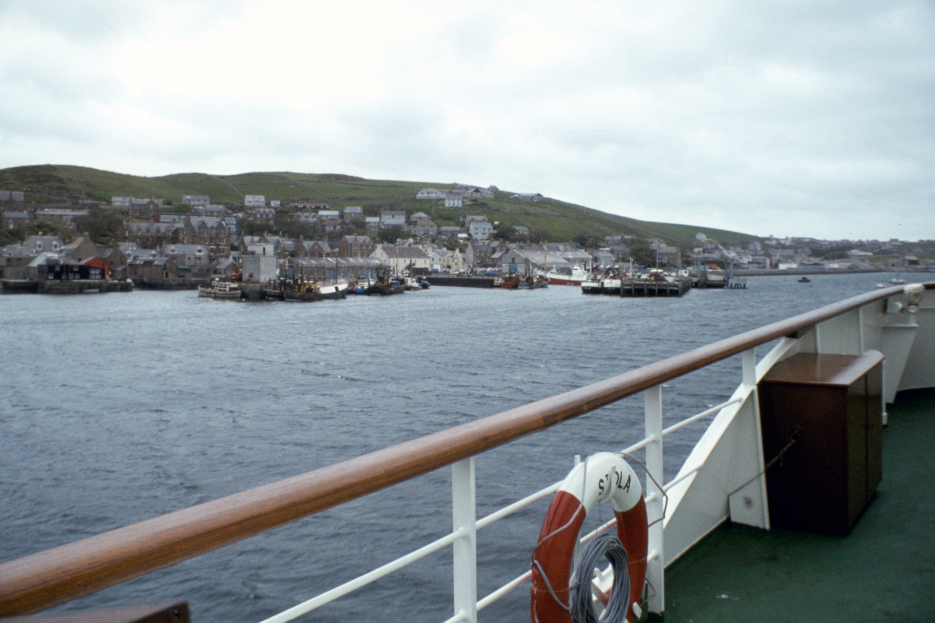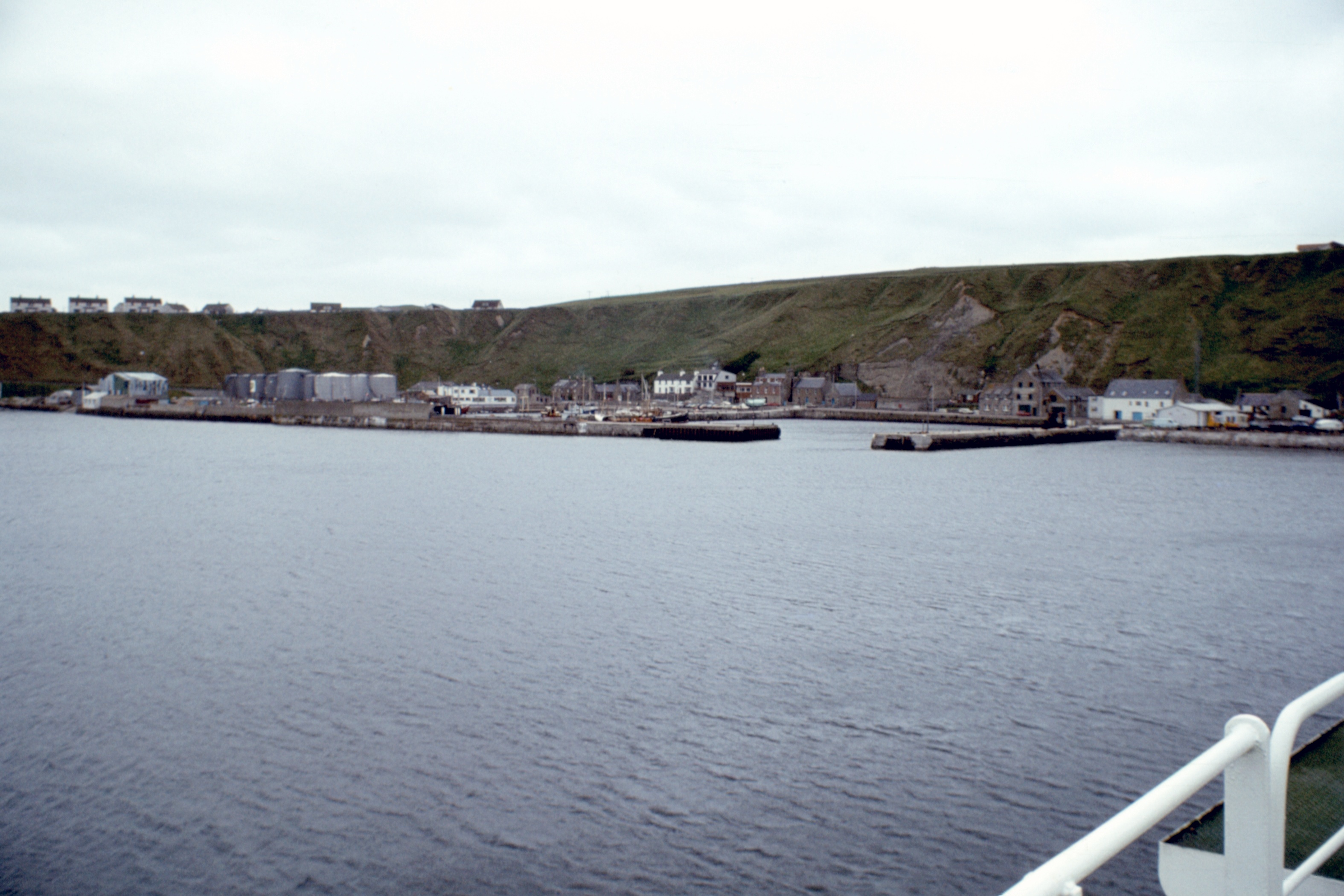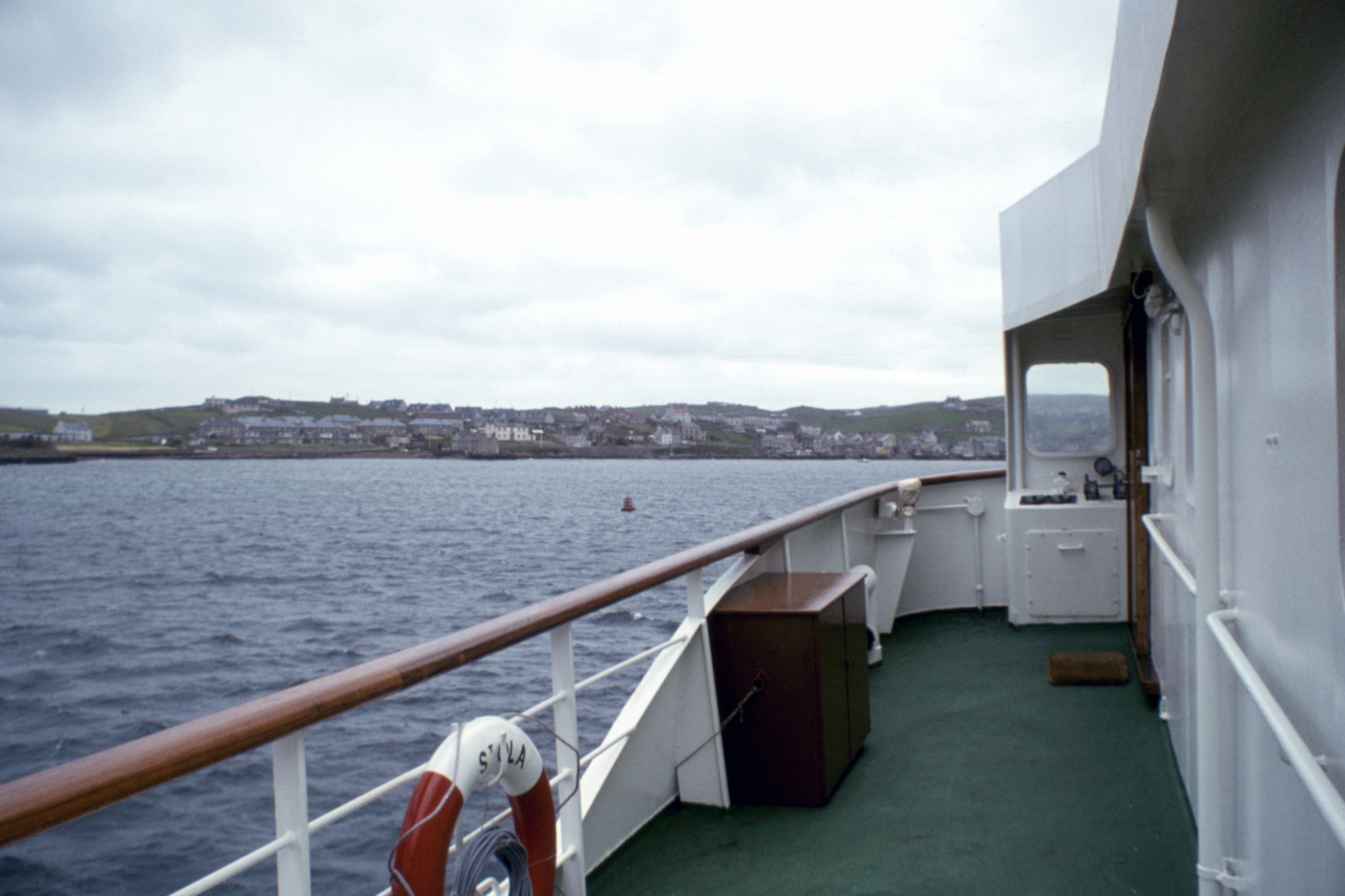 The train to Thurso was 23 minutes late at 09:32. I was in the wrong half of the train at Georgemass Junction (where it splits for Wick) and had to sprint along the platform. Luckily, the guard saw me and waited. Arrived at Thurso at 11:00 where the connecting bus to Scrabster left at 11:15 and reached the ferry at 11:30. The St Ola sailed at 12:00 and arrived at Stromness at 14:00. The Youth Hostel was over-full (I didn't know it was the weekend of the Orkney Folk Festival) but I found a bed at Brown's Hostel (�2.00).