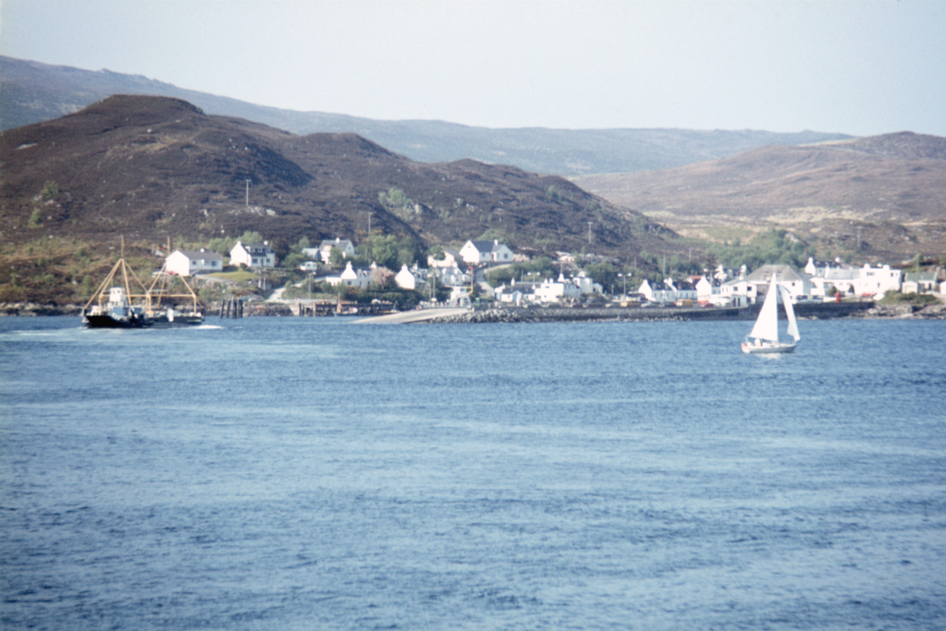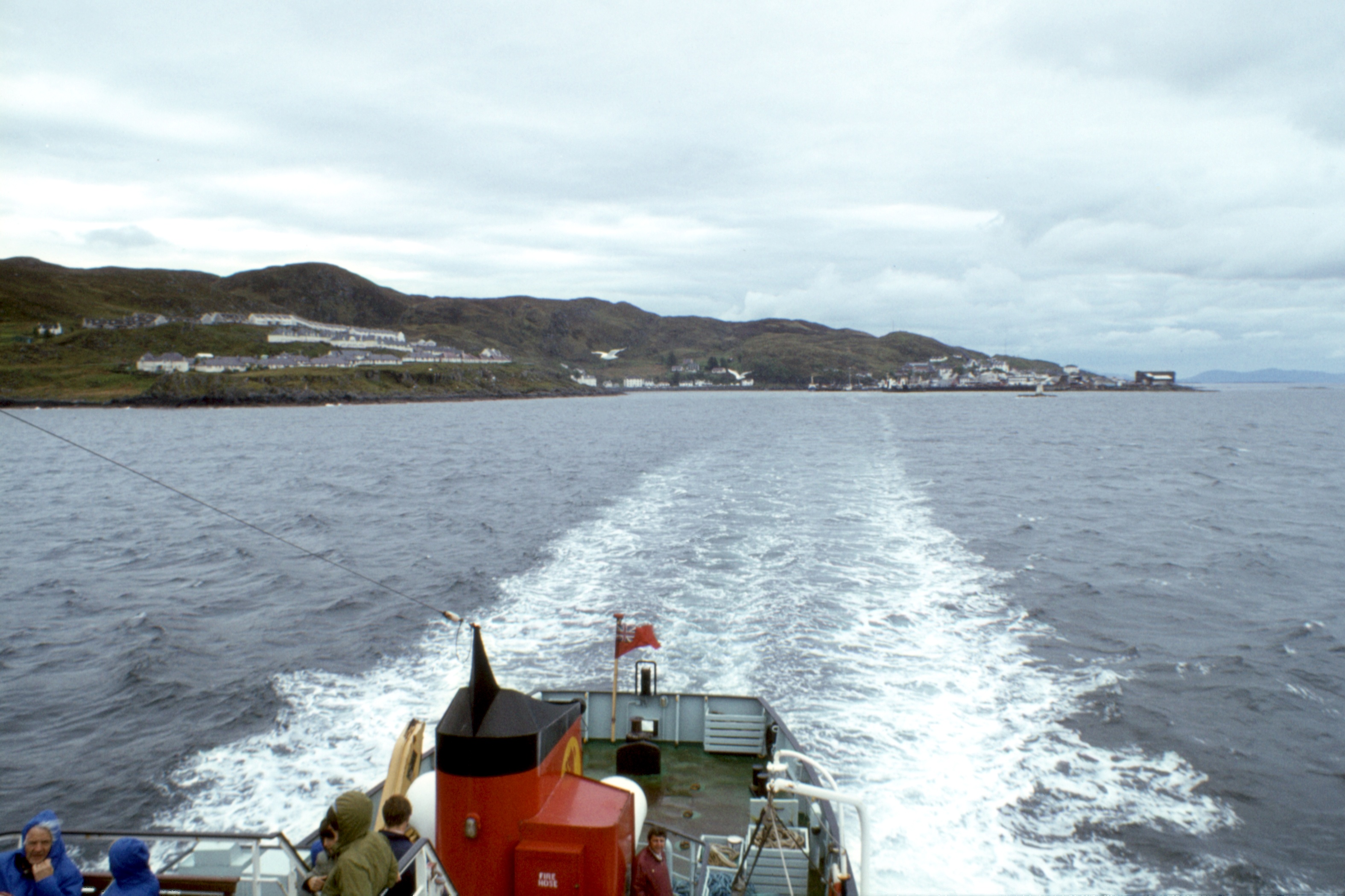 After a good breakfast, I caught the 09:45 bus from Lochboisdale to Balinvalich (Benbecula airport) (paying £2.84), then the PostBus to Lochmaddy. I had intended to spent the night there but the pub closed at 14:30 so, after ambling about for a while, I boarded a convenient ferry (mv Hebrides?) at 17:30 to Uig and headed for the Youth Hostel.