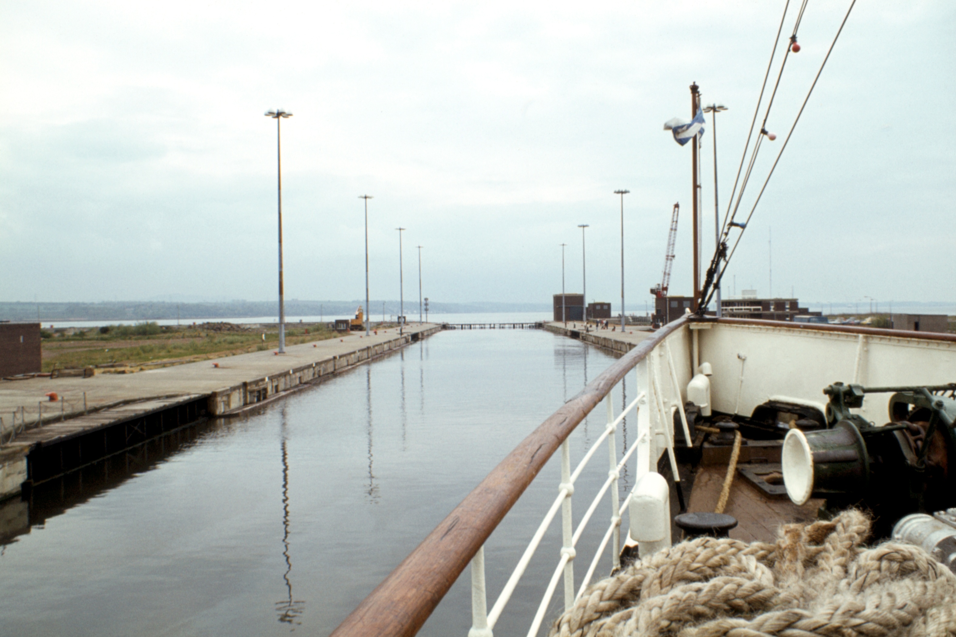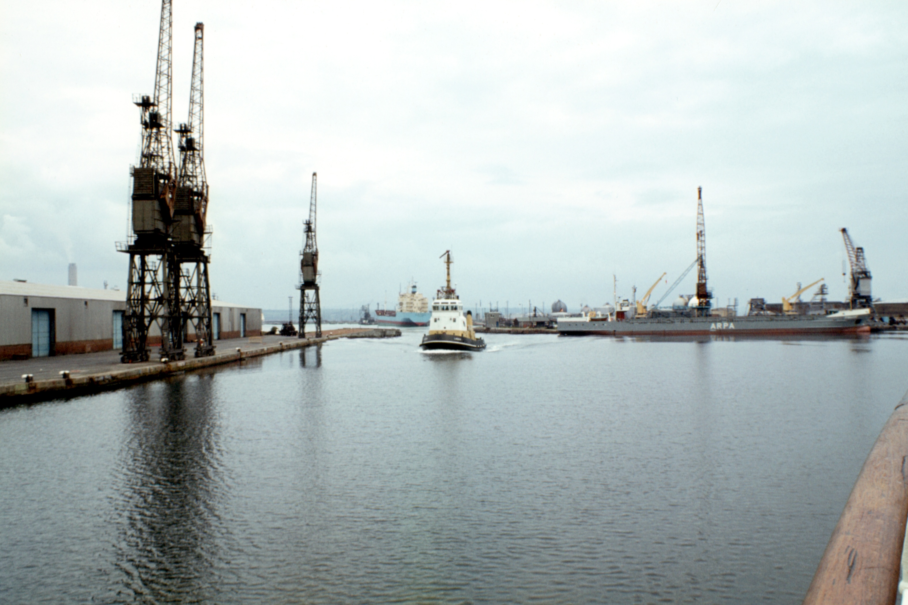 A tug in Grangemouth Docks | The Grangemouth sea lock |