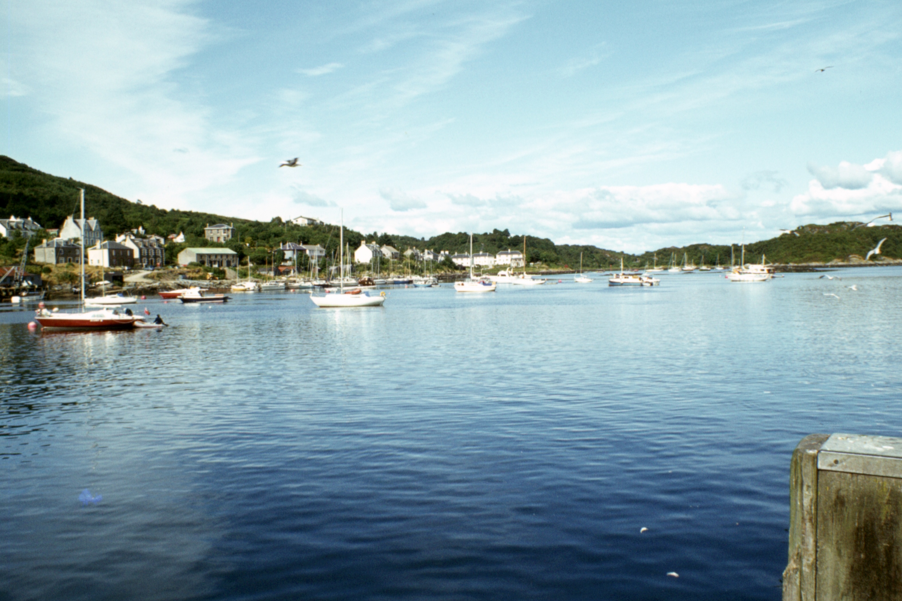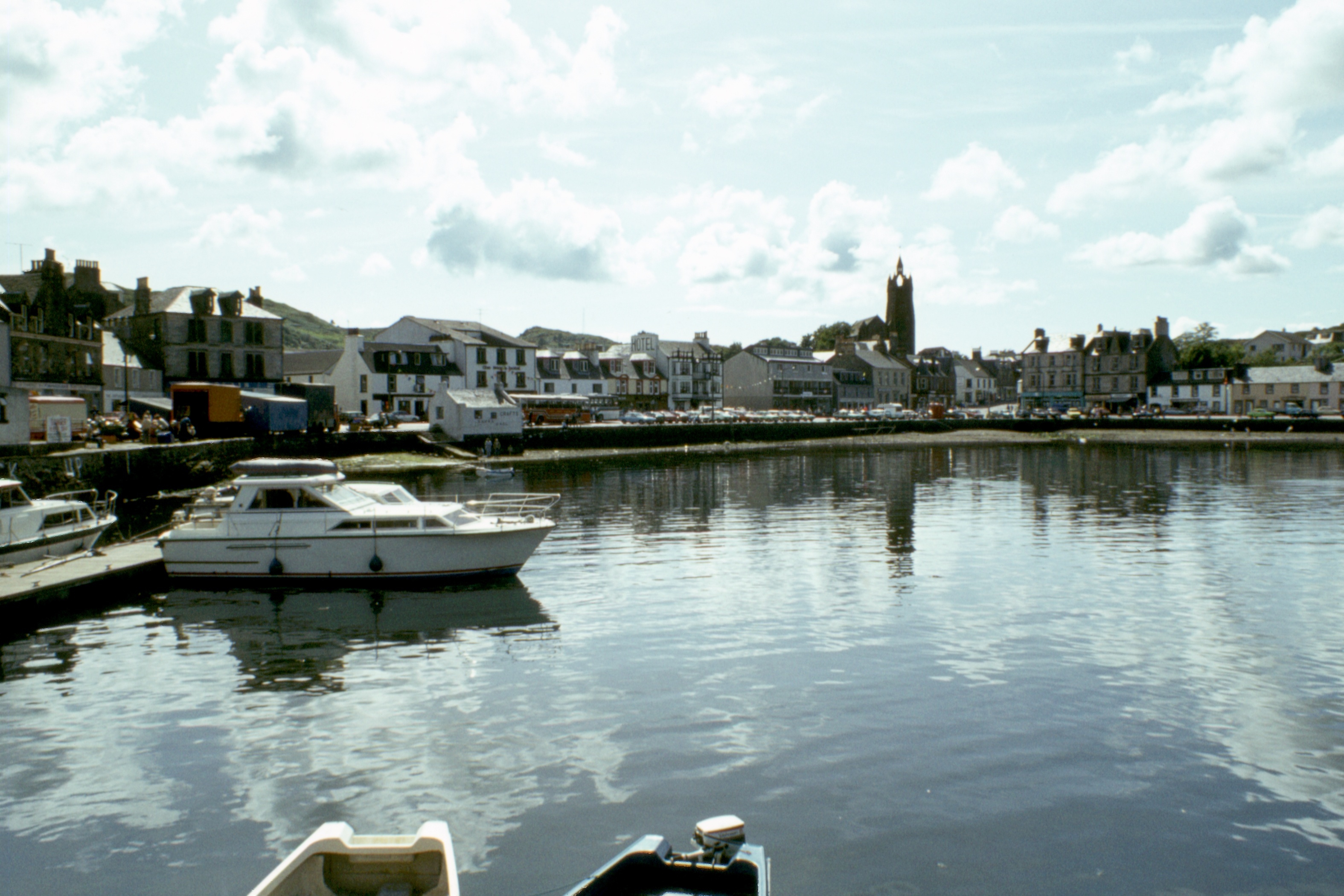 Tarbert at the head of East Loch Tarbert | A fishing boat, a cruiser and Dave |