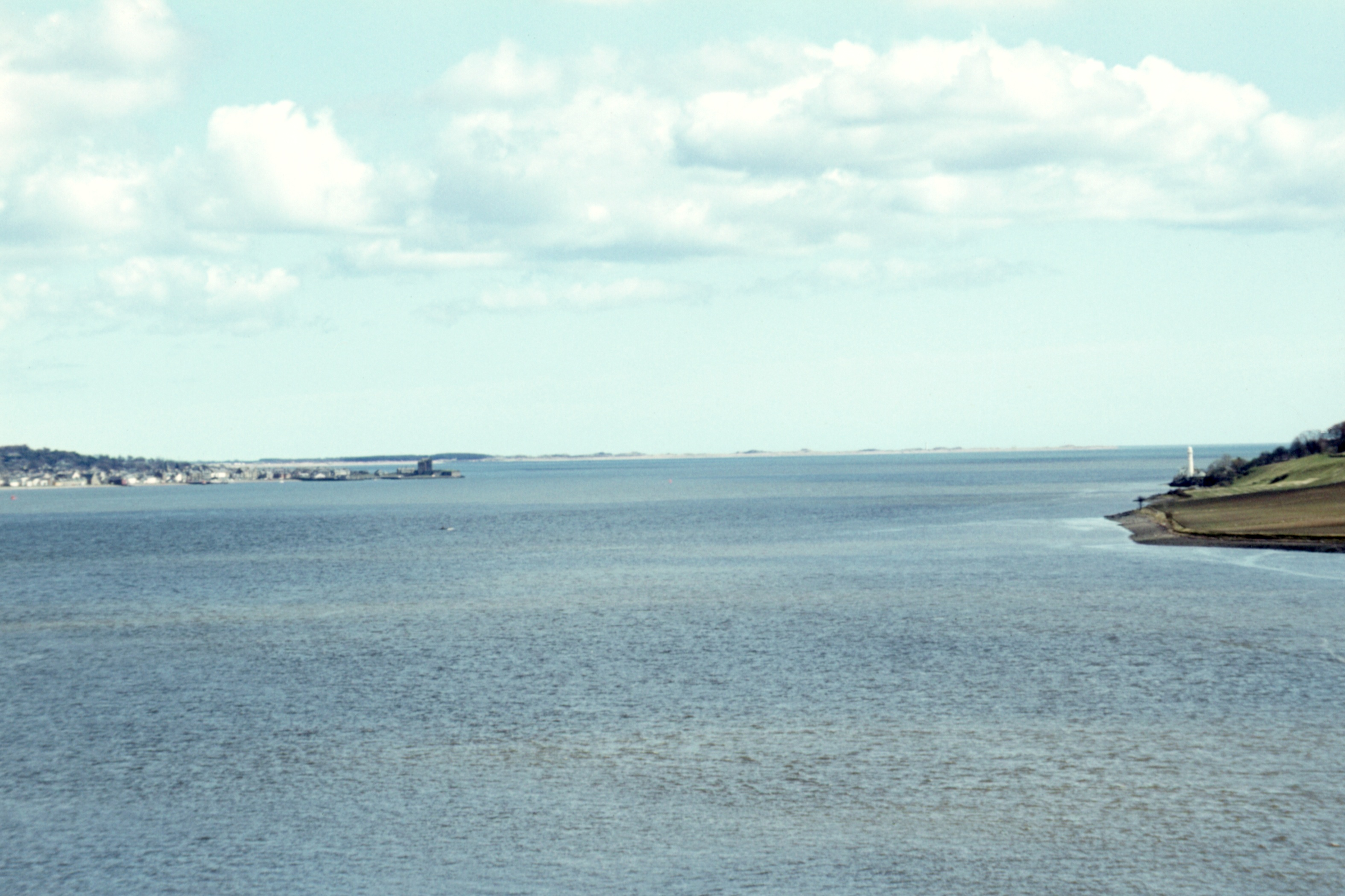 Broughty Ferry and Buddon Ness Road Bridge from the shore at Newport-on-Tay