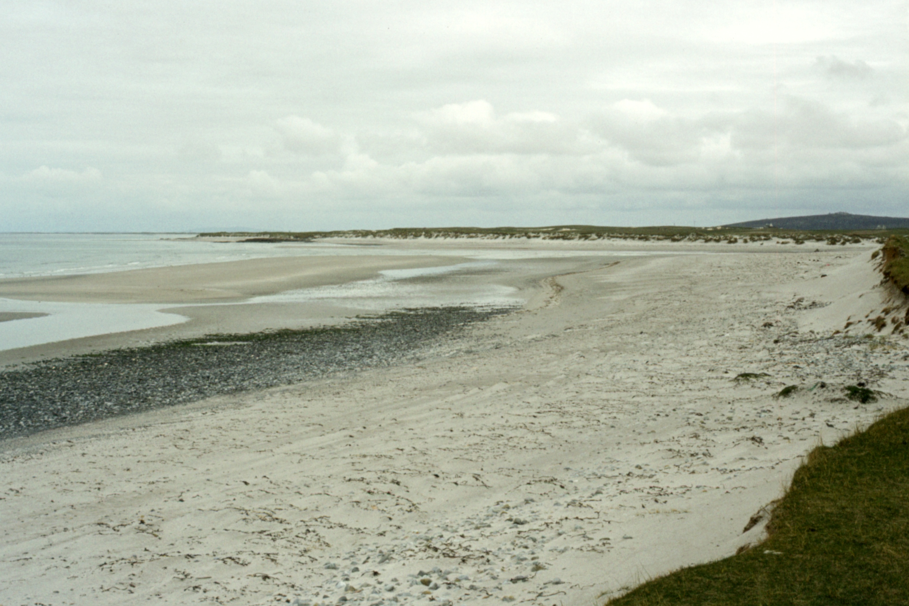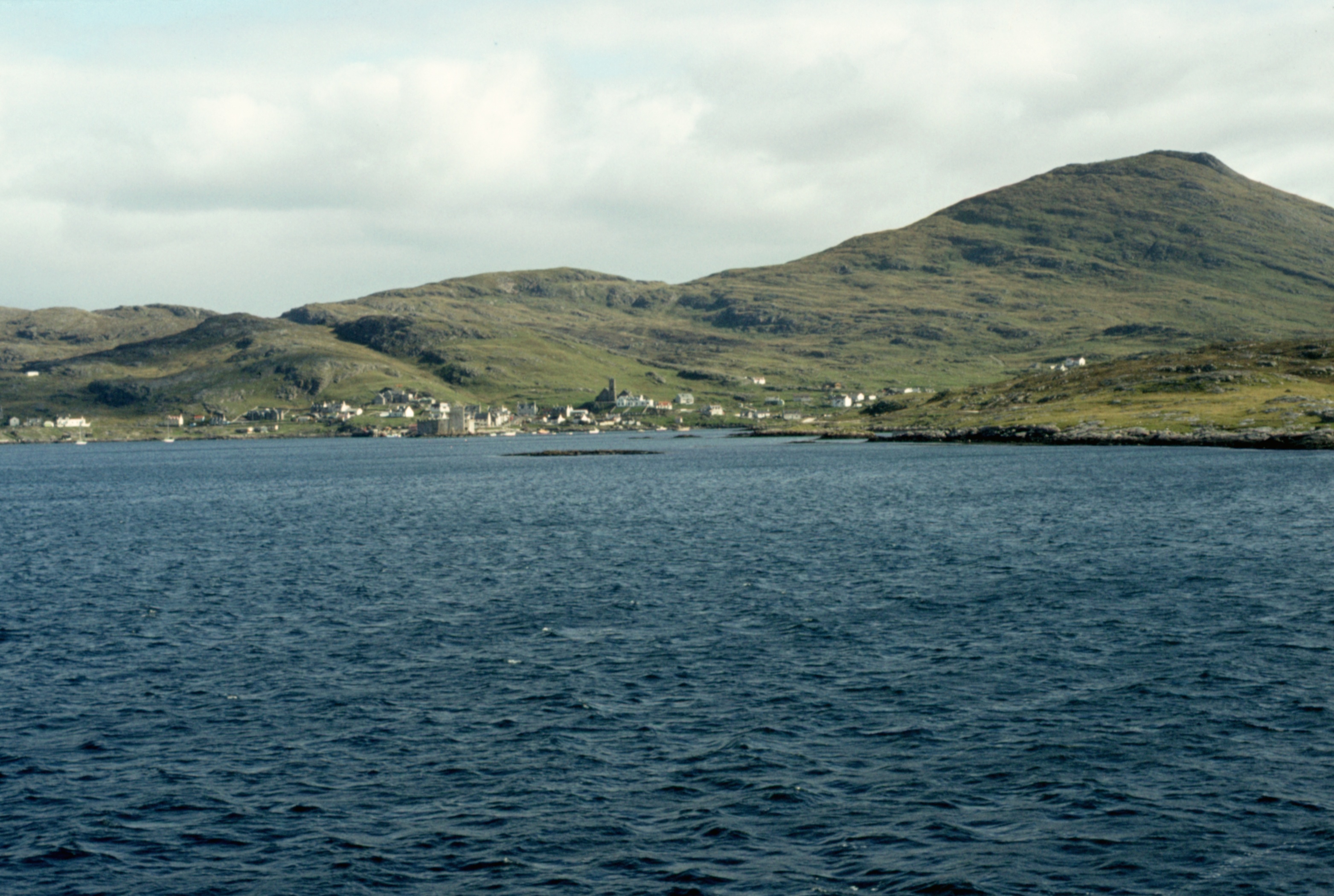 Having spent the weekend sailing out of Oban on Waverley, I sailed overnight on Claymore to Barra and went for a wee walk. I had planned to spend the night at Eoligarry at the north end of Barra but on arriving there I found there was an extra ferry run to bring folk back from a Feis in Daliburgh. So I crossed to South Uist and spent the evening in the Pollachar Inn and the night camped on the machair across the road. It was almost half past ten when I woke so I quickly broke camp and moved on before I was tempted to return to the pub. Another night on the machair somewhere up the west coast of South Uist and a late lunch at Iochdar Community Hall before crossing the causeway to Creagorry where I had to wait half an hour for the pub to open. I phoned home and decided to go home so set off across Benbecula. I had crossed the first part of the causeway to North Uist when it started to rain and a passing policeman gave me a lift into Lochmaddy where I had a good sleep on the ferry. We had sailed before I was awake and the purser was none too pleased to have to sell me a ticket. It seems I should have bought my ticket before boarding but the ticket office had not been open at one in the morning, whereas the boat was.