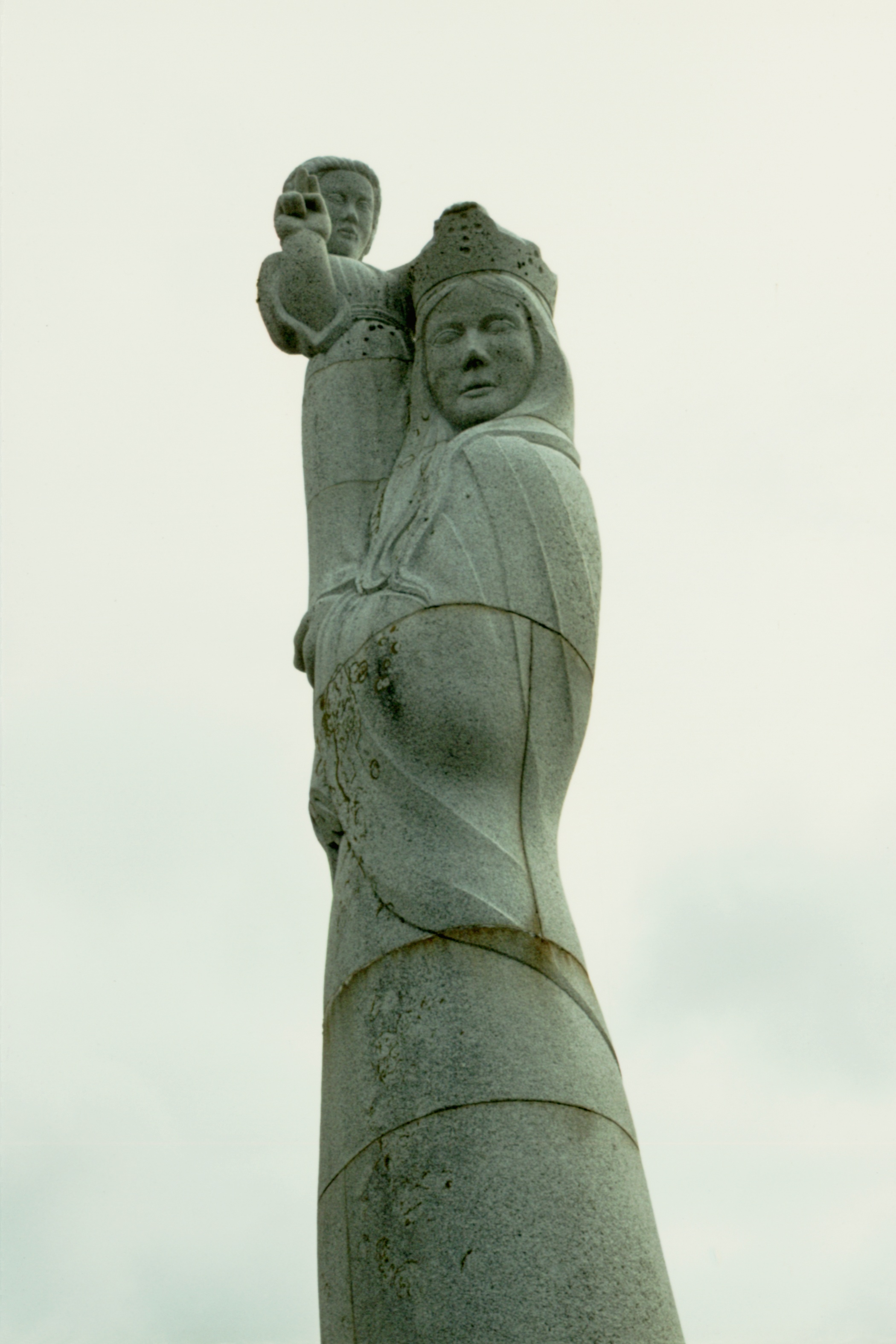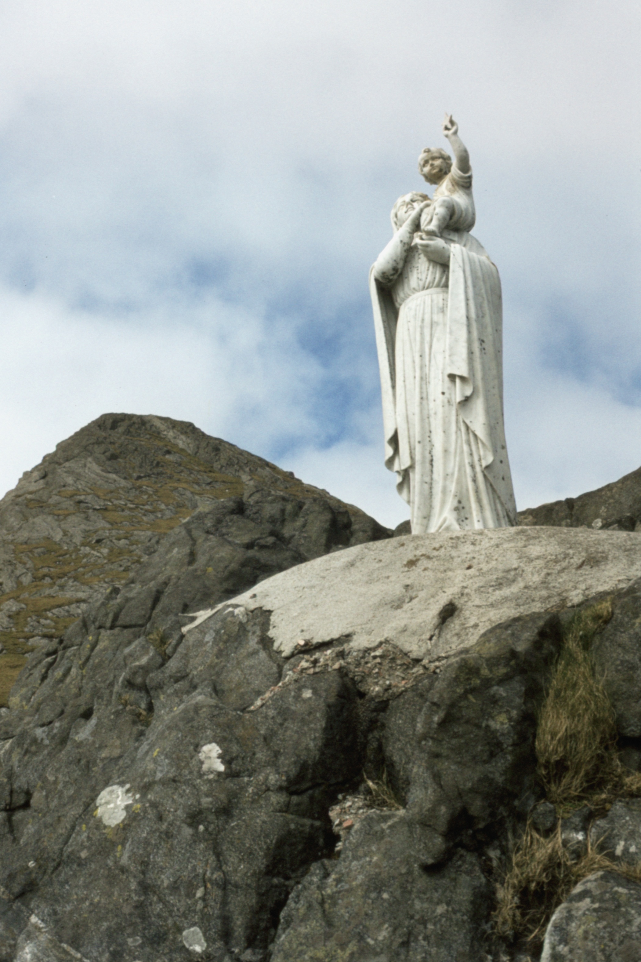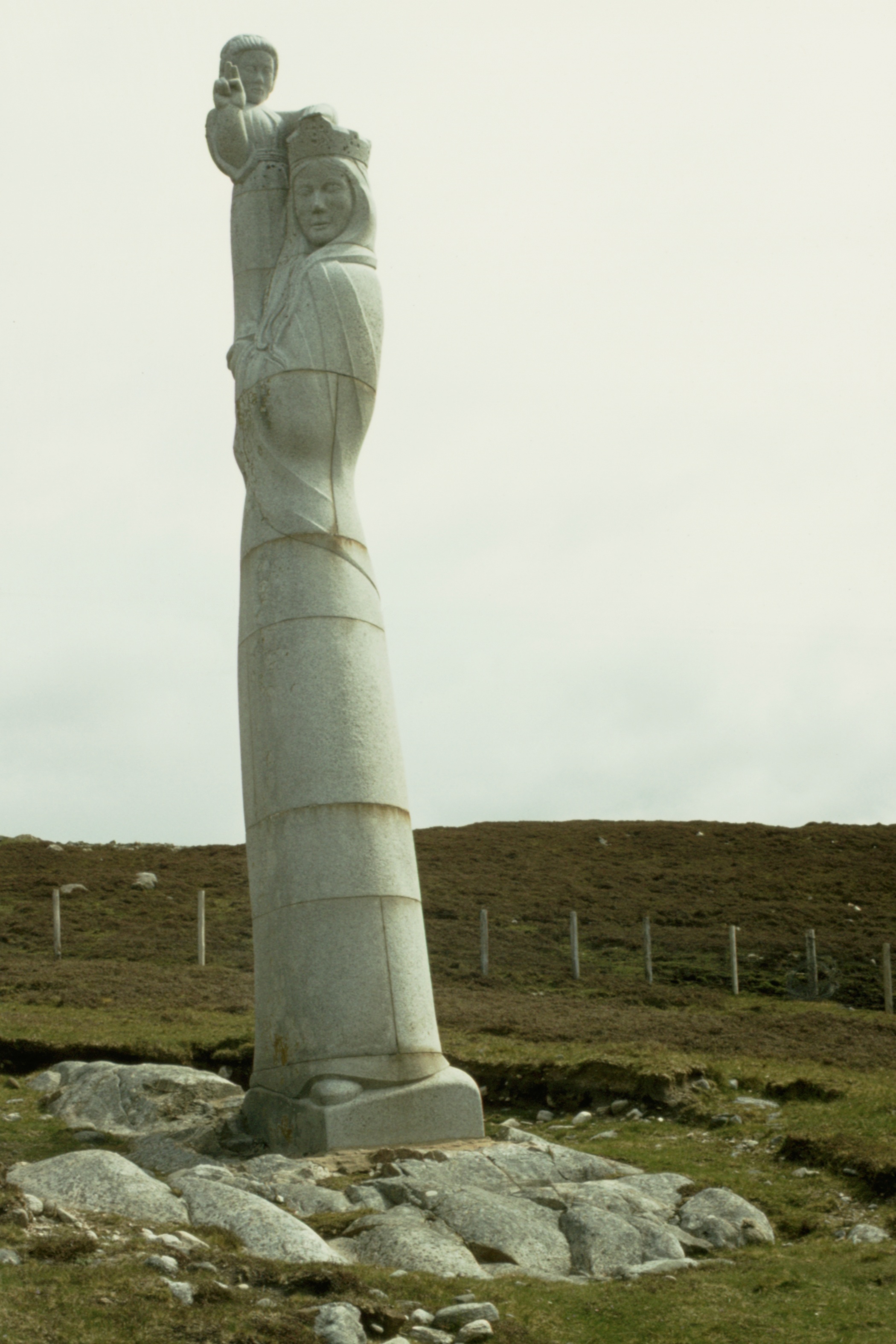 The statue of Our Lady of the Isles (Hew Lorimer, 1958) on the side of Rueval on the west coast of South Uist is 9 metres high. Carved on site from Creetown granite, the statue was commissioned by Fr John Morrison and paid for by the islanders.