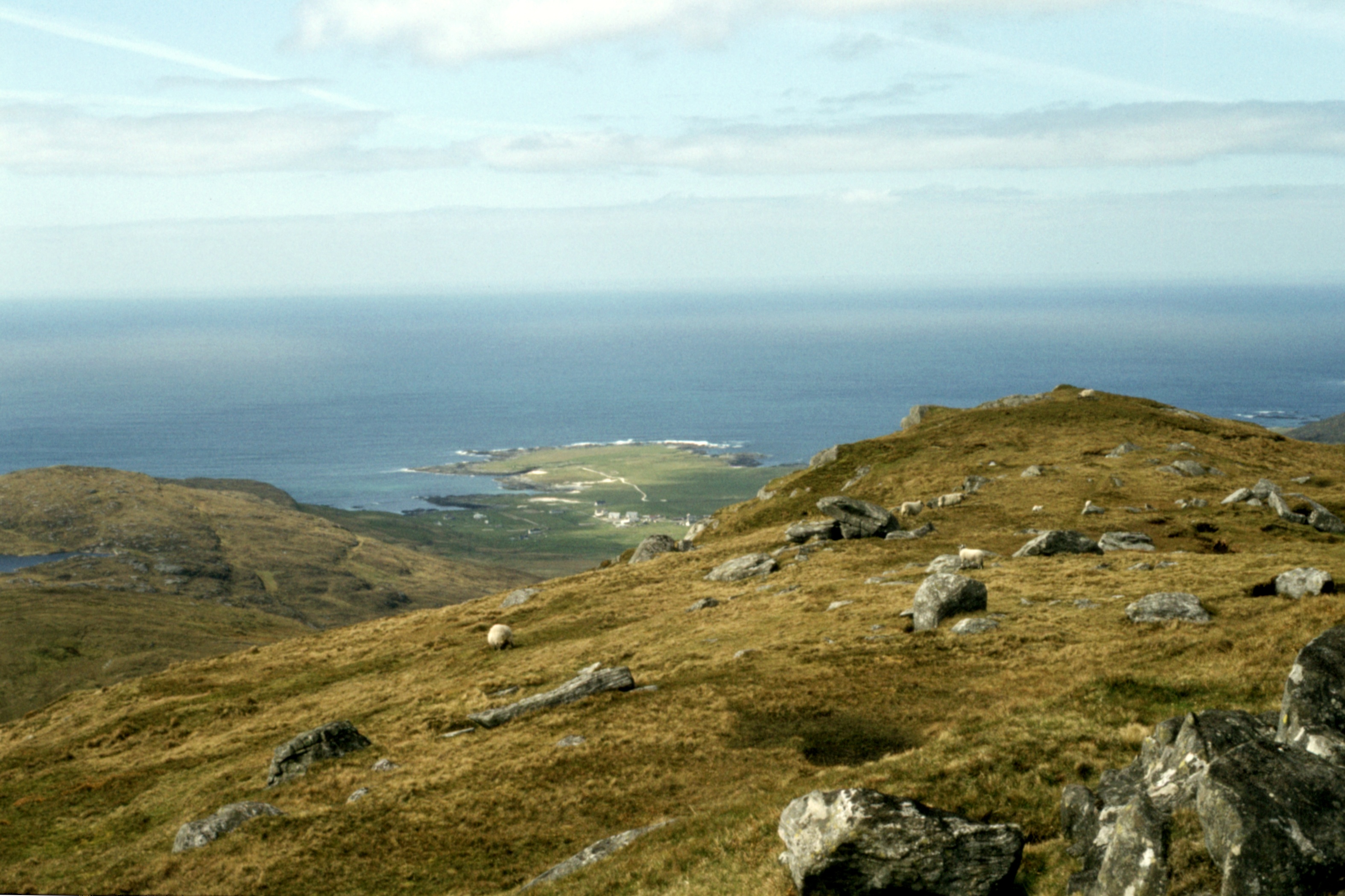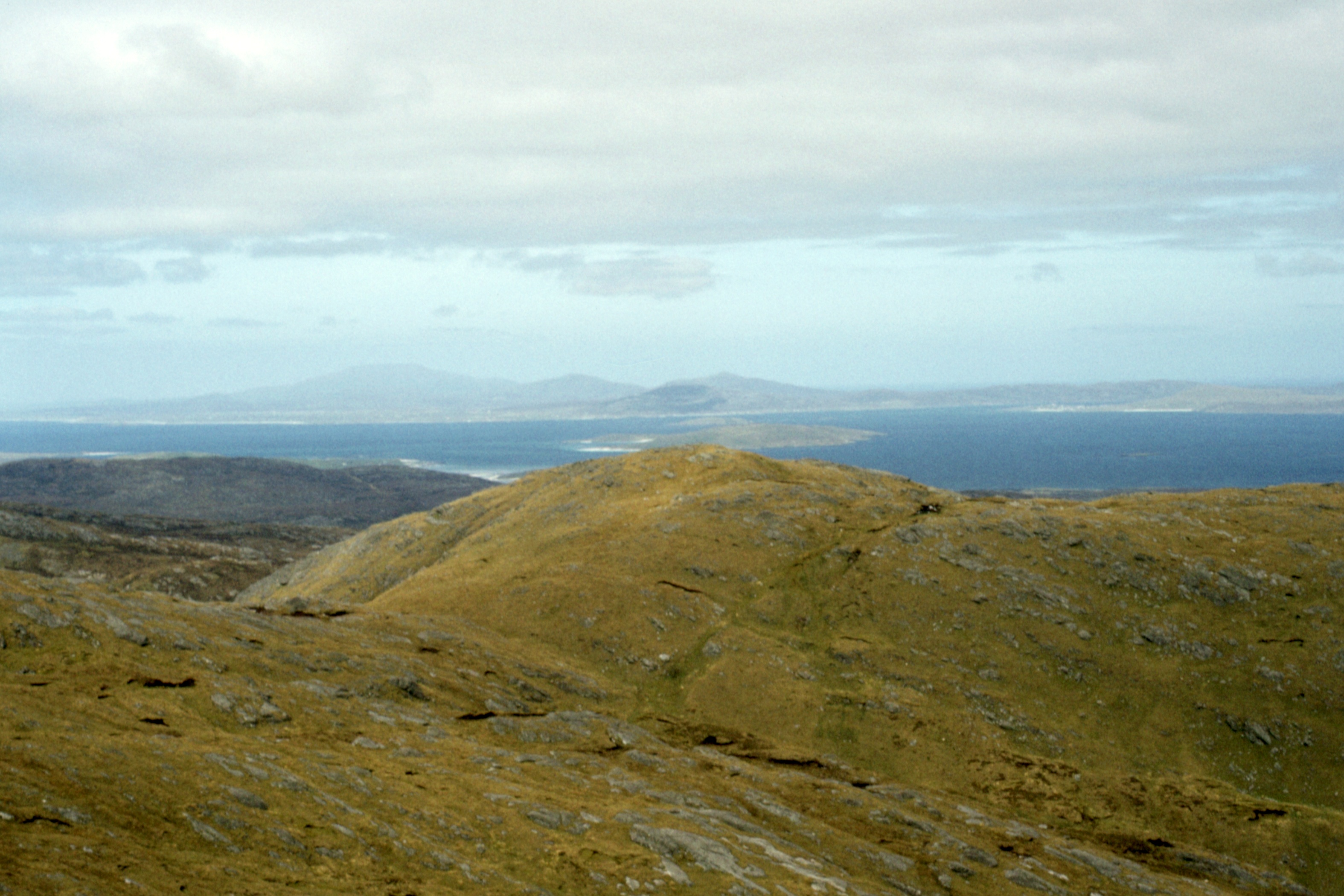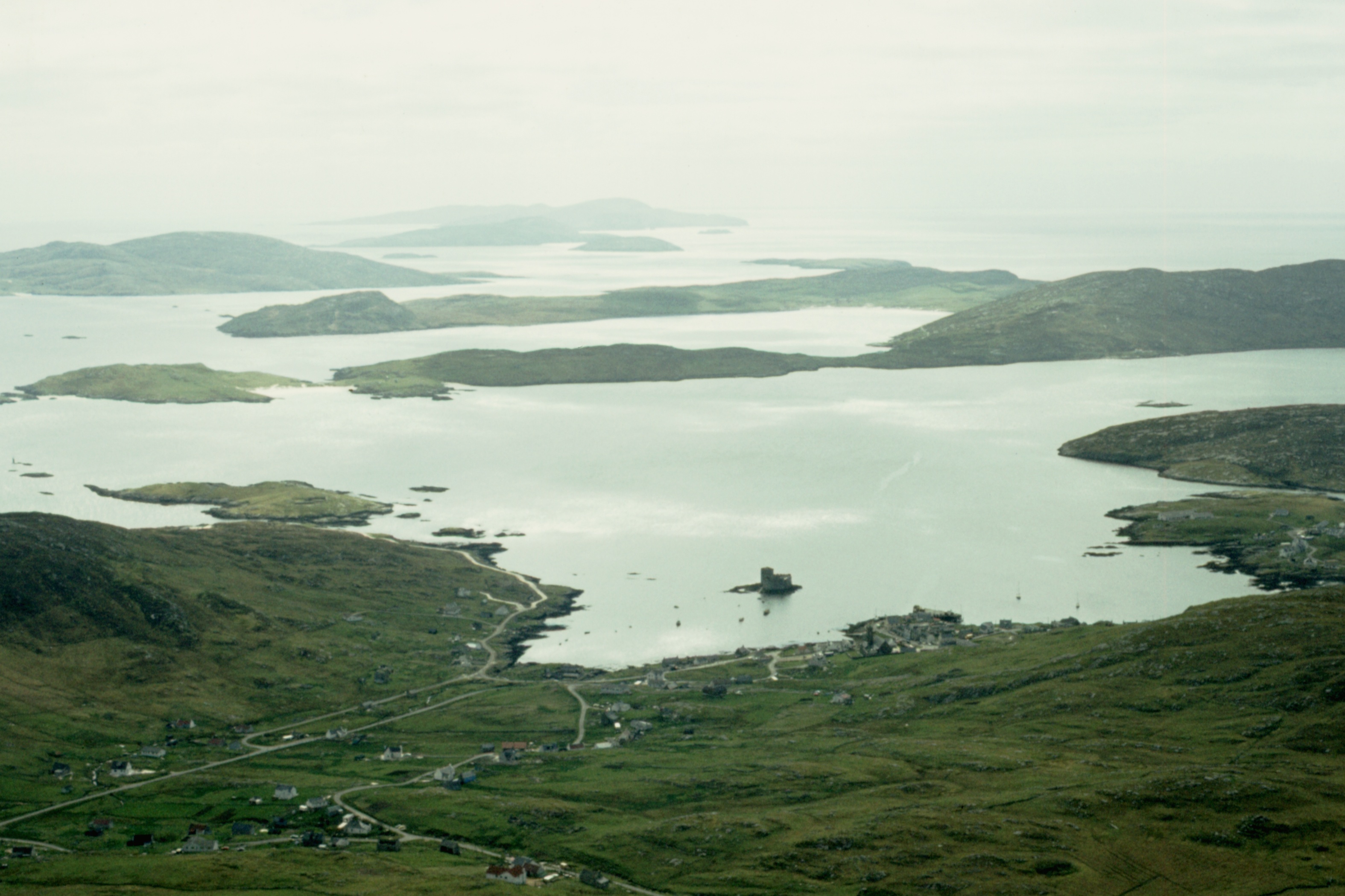 Looking west from Heaval towards America Castlebay and the islands to the south