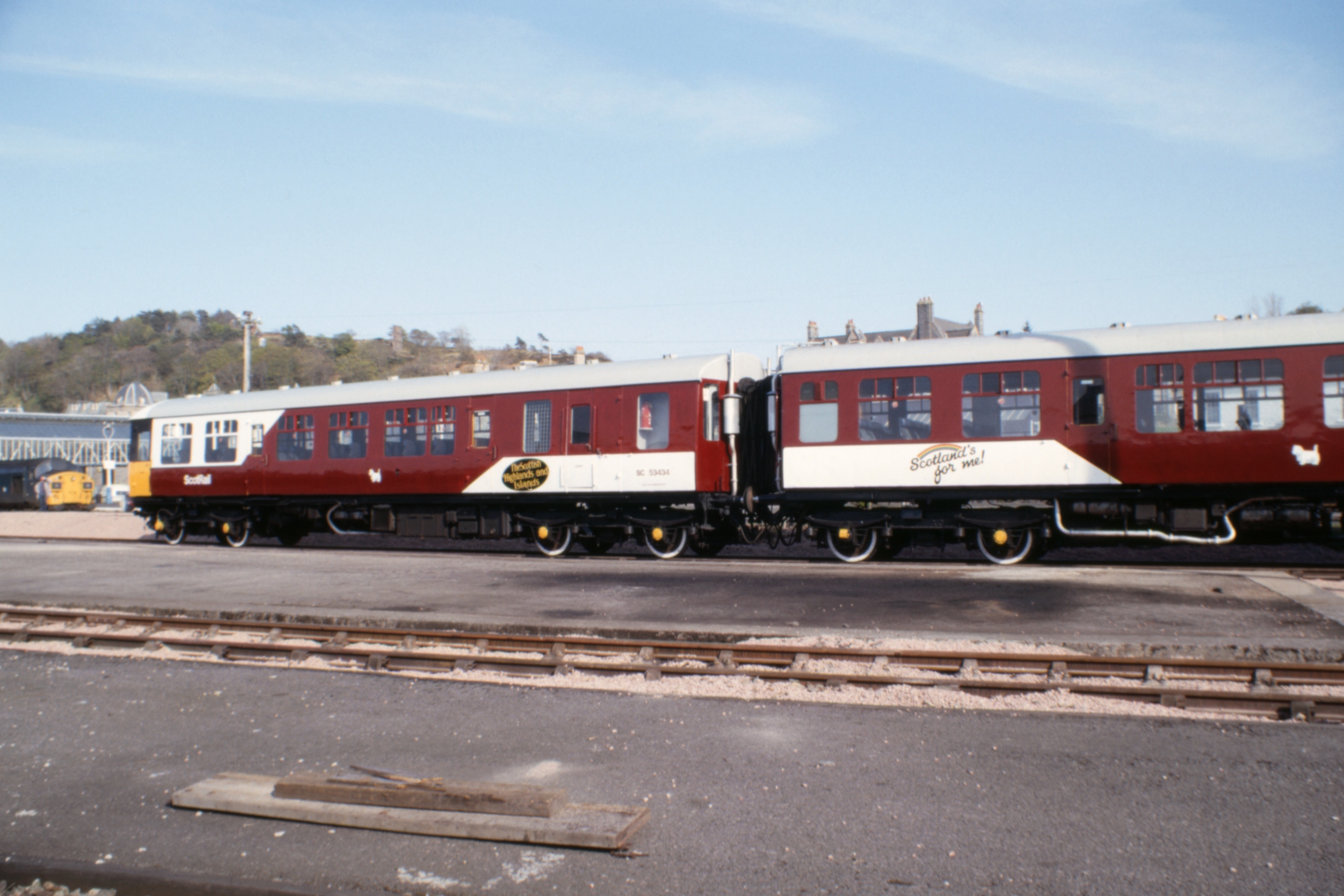 On the Wednesday, Dave & I returned to Edinburgh by train, but not before taking a few snaps at Oban station. The "Mexican Bean" as it was colloquially known, was a DMU (104325) sponsored by the Tourist Board to provide additional services between Oban and Crianlarich to meet the Fort William train. I don't know how popular it was but it lasted only a few years.