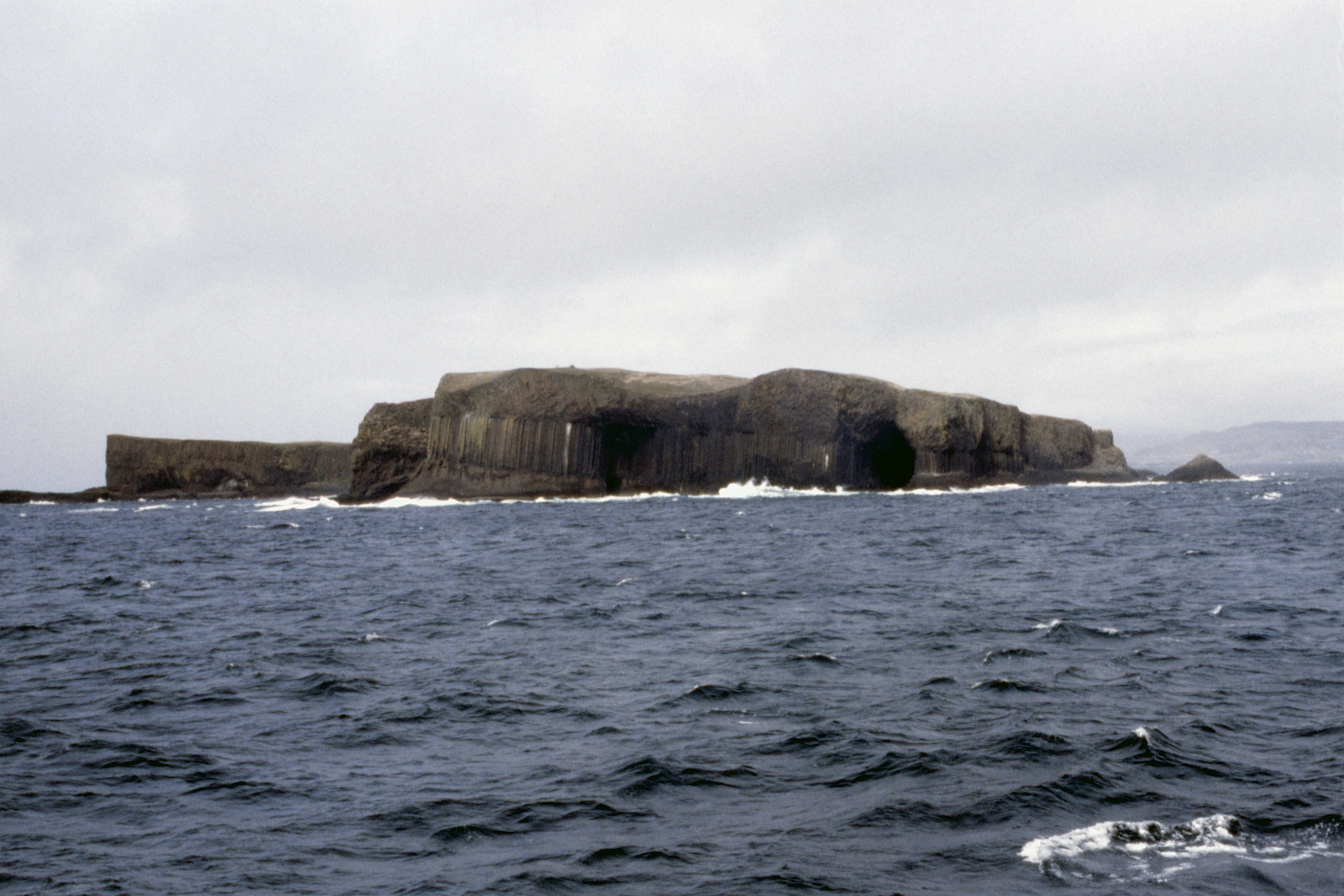 mv Isle of Mull in front of Kerrera | South end of Staffa with Fingal's Cave (centre) |