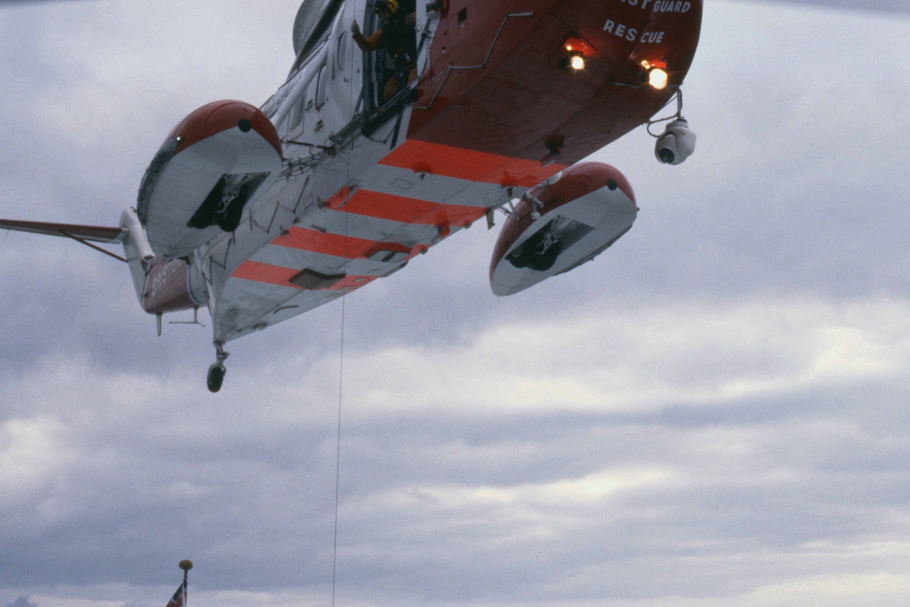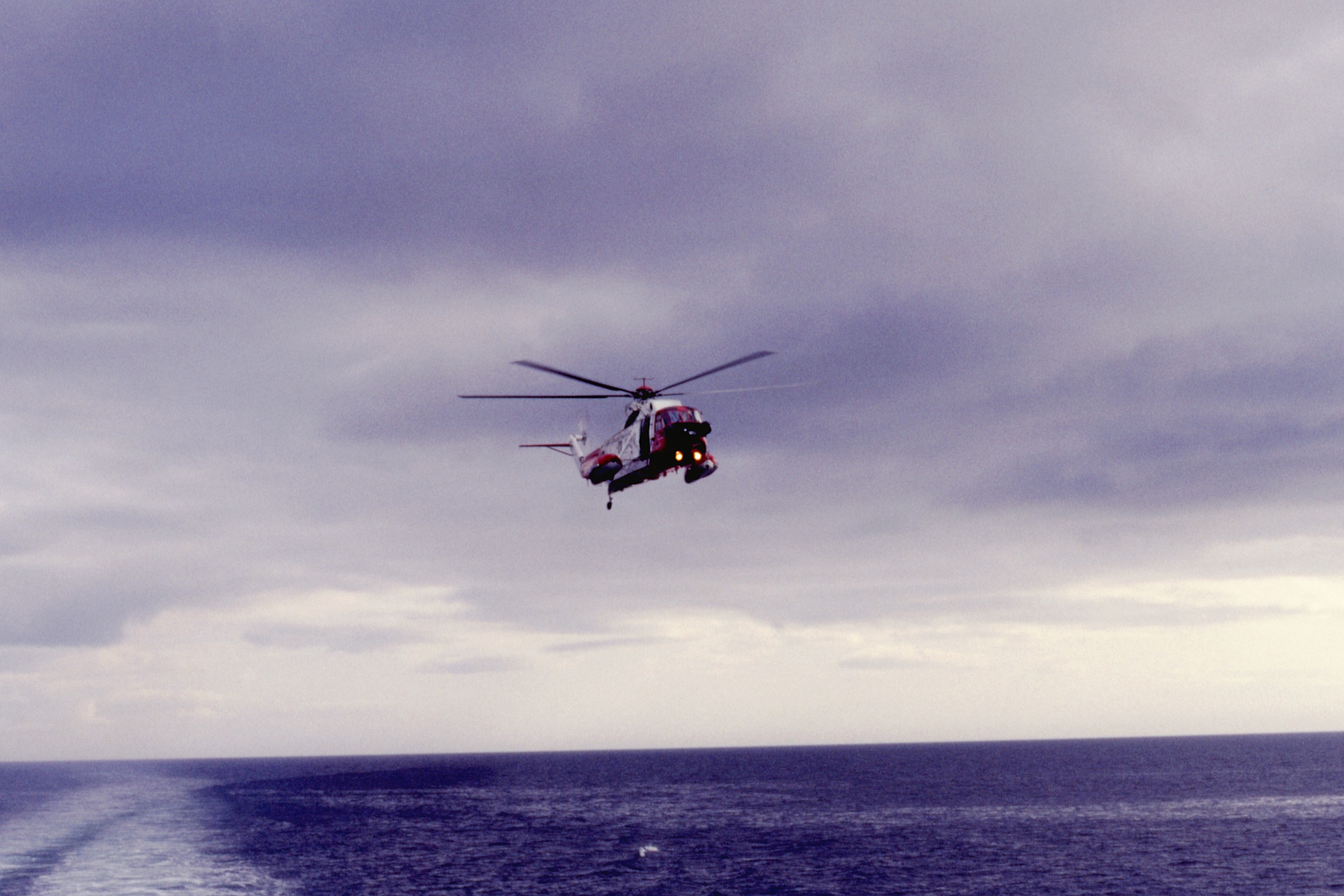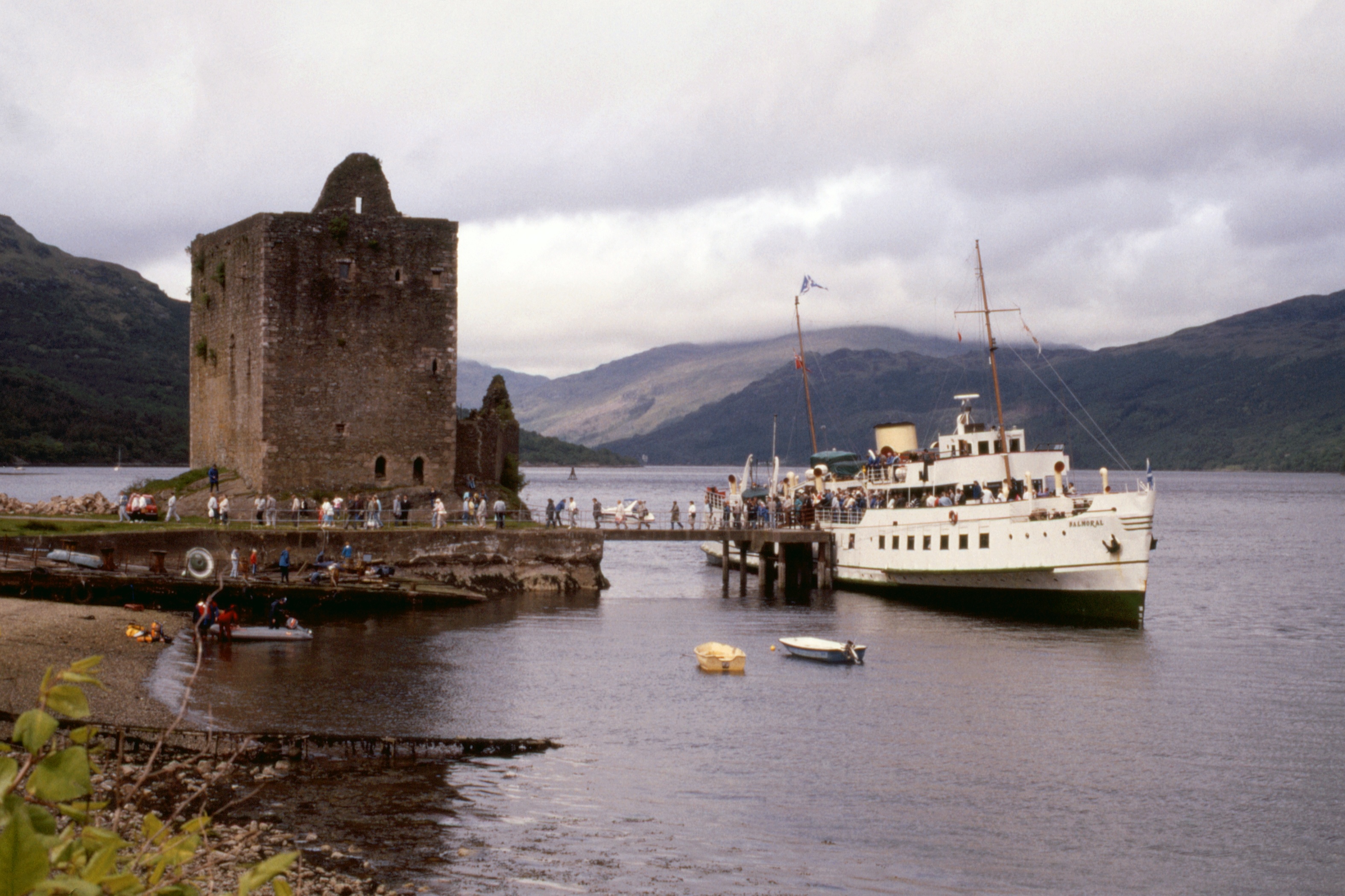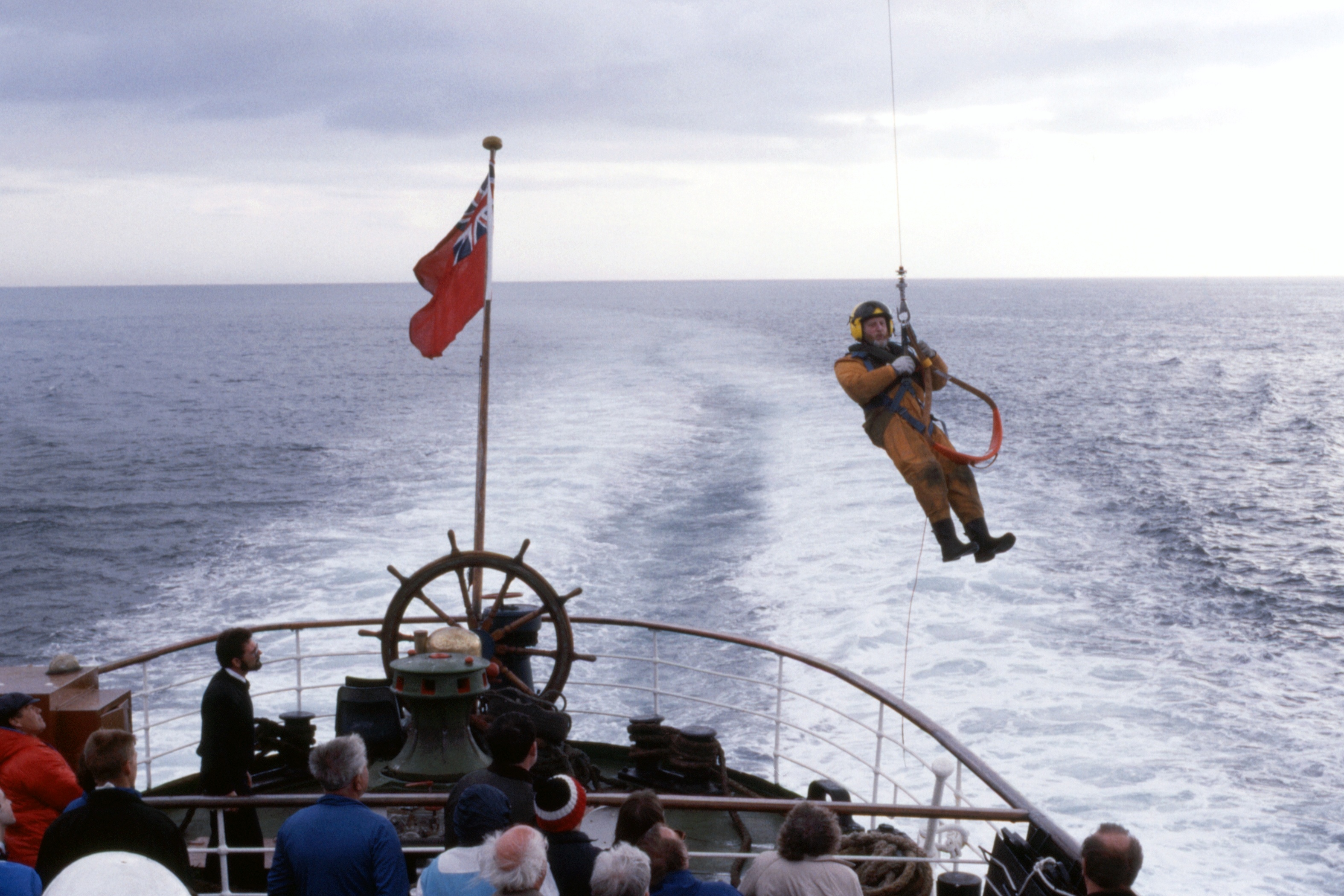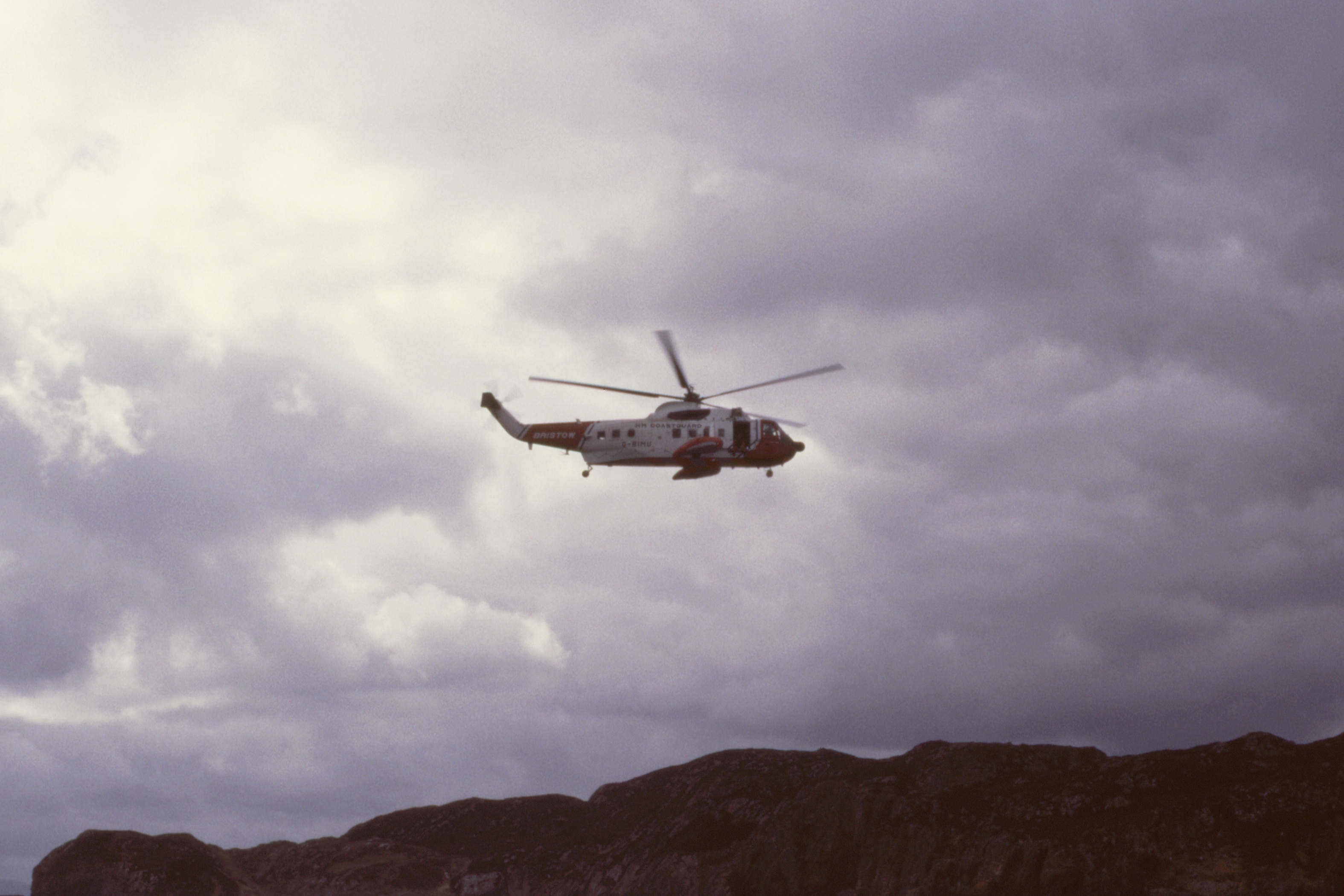 Day 9 - Saturday, May 6 - We sailed south from Stornoway along the east coast of Lewis and Harris, had a rendezvous en route with the Stornoway Coastguard helicopter which practised putting a man on the aft deck (and took off the purser temporarily) before calling at Tarbert. Then it was across the Minch and round the north of Skye to Portree. Then a cruise south past Raasay and on as far as Kylerhea before returning to Portree. Waverley then sailed light to Kyle for the night to refuel.