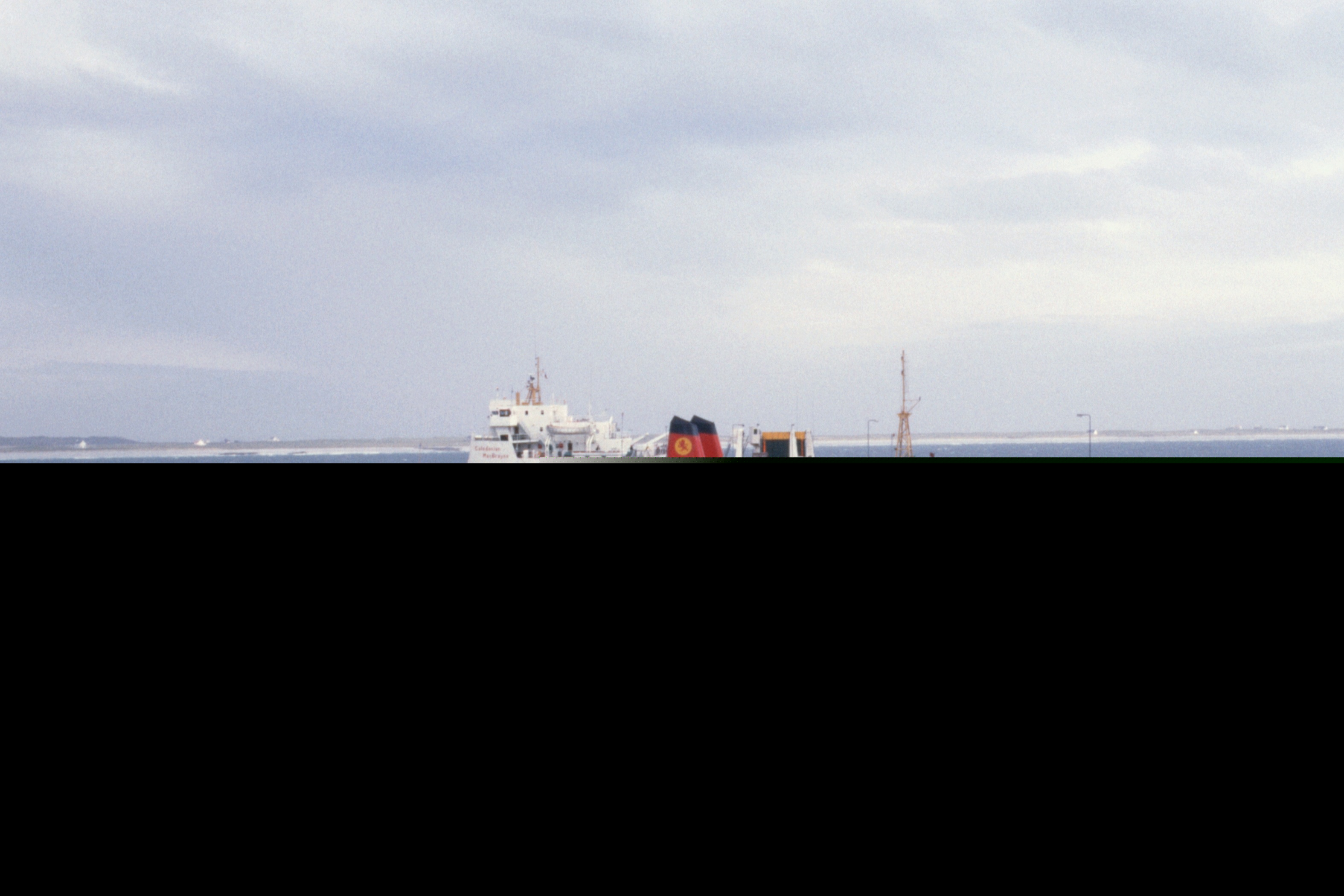 Traigh Mhor across Gott Bay, Tiree, with the Claymore at the pier |