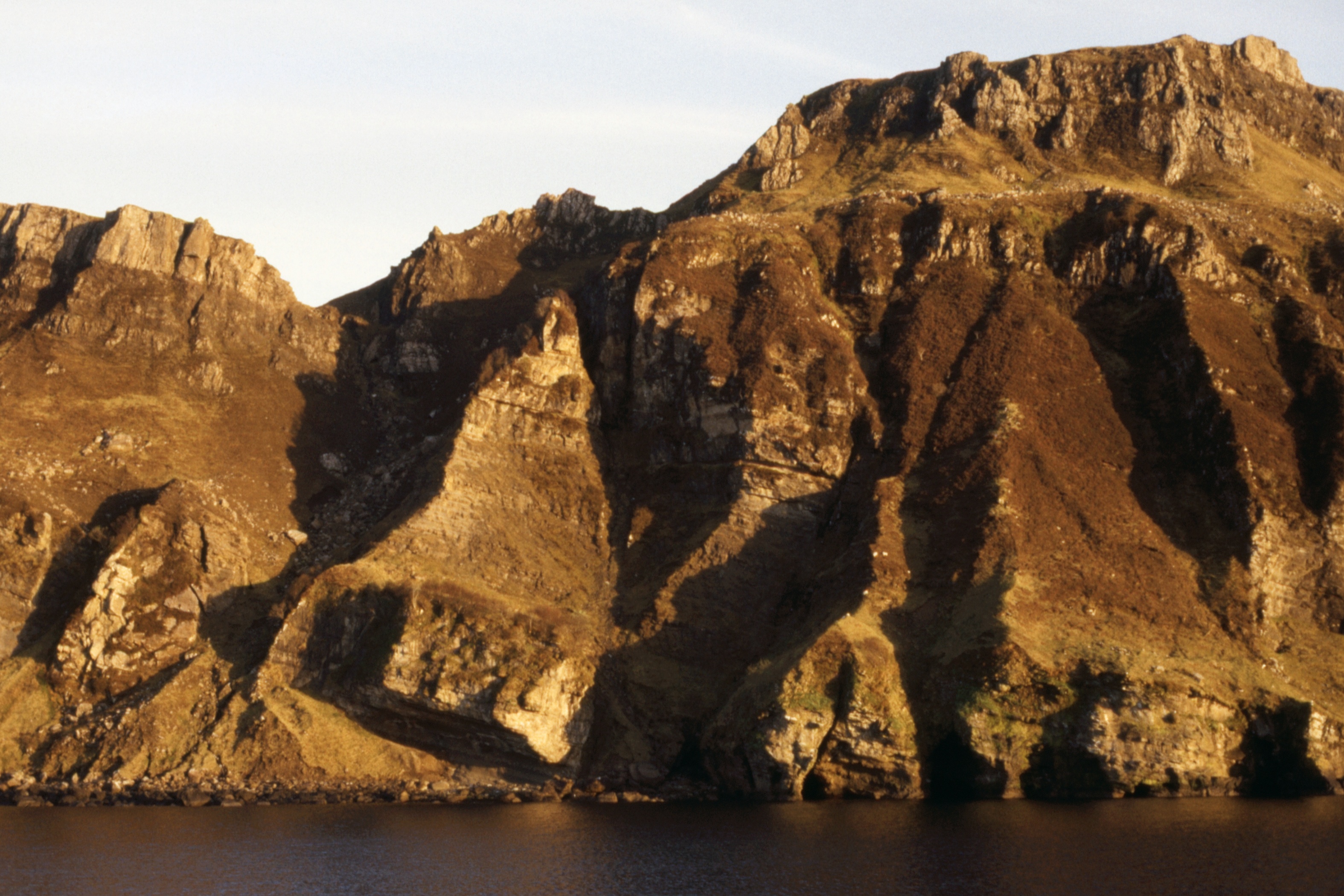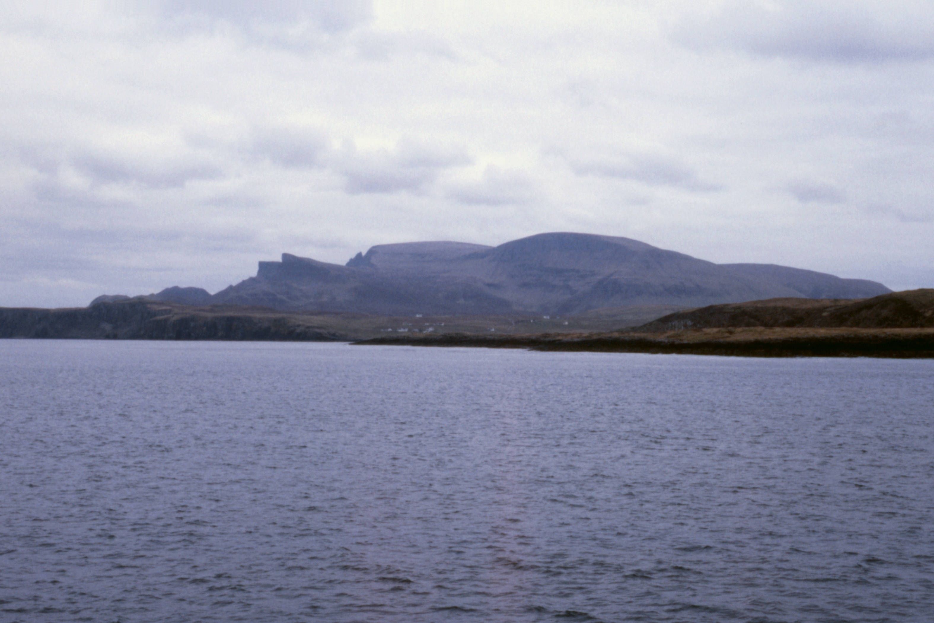 Cliffs just south of the entrance to Portree Bay | The north end of the Cuillins from Portree Bay |