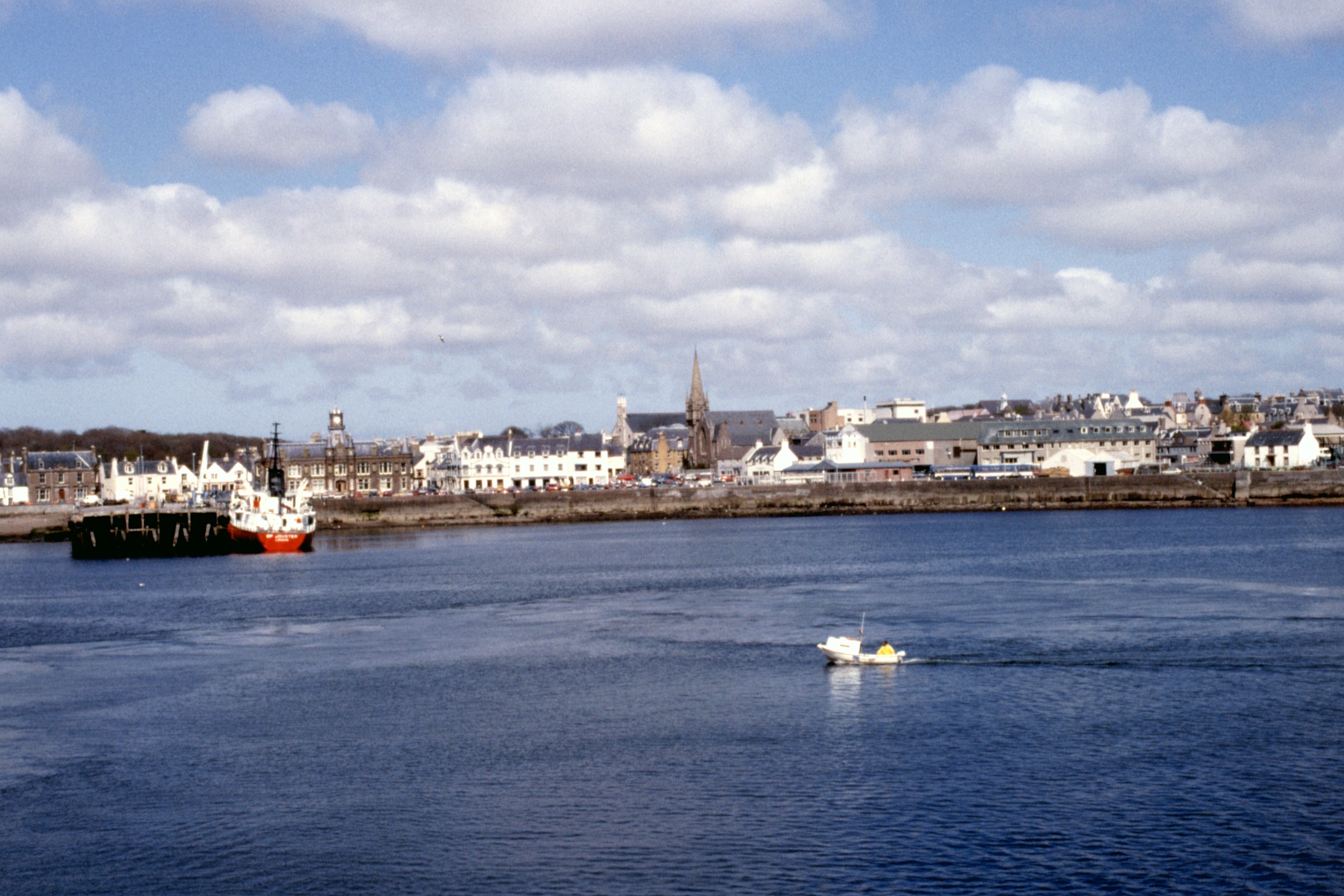 Stornoway from the Suilven, BP oil tanker Jouster (London) at the pier |
